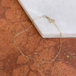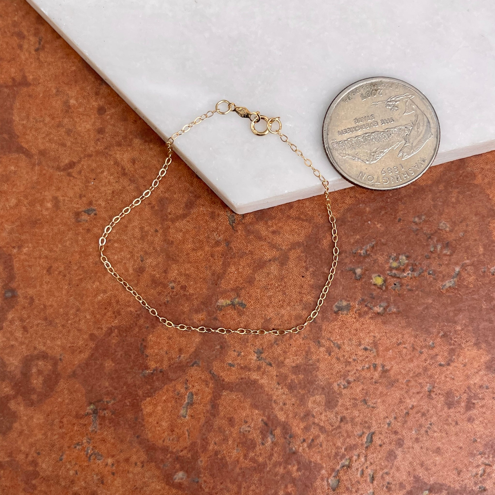 14KT Yellow Gold Flat 1.3mm Cable Link Chain Bracelet