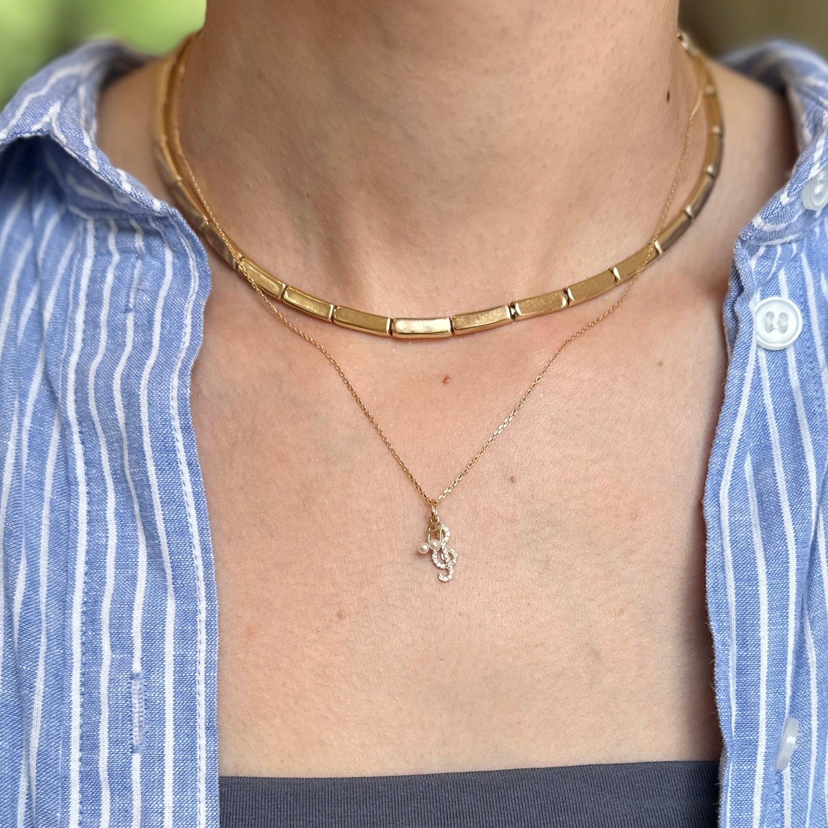 14K yellow gold pendant with CZ treble clef charm and fresh water pearl music note charm