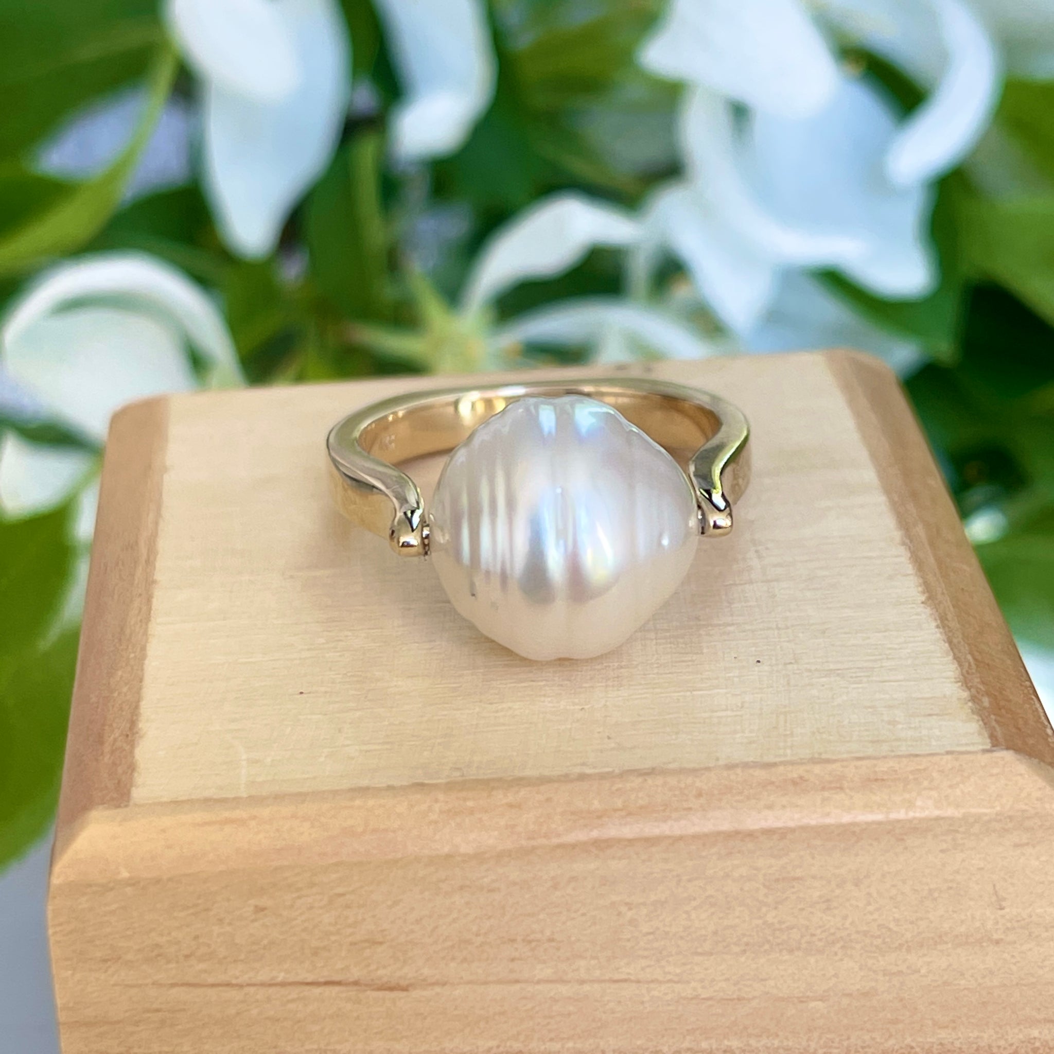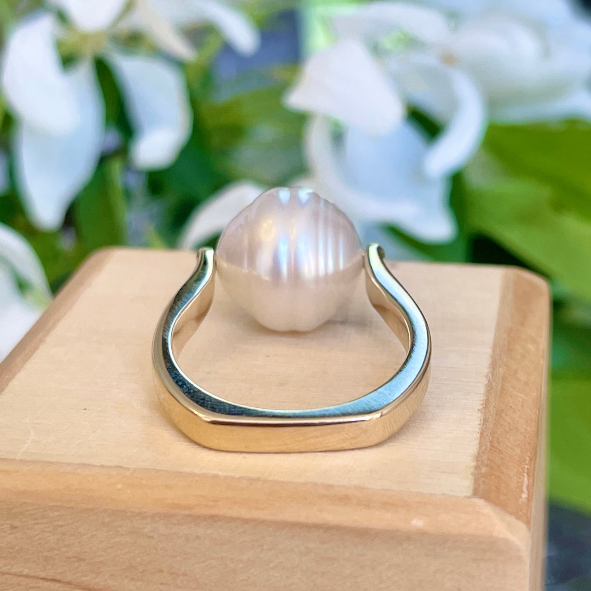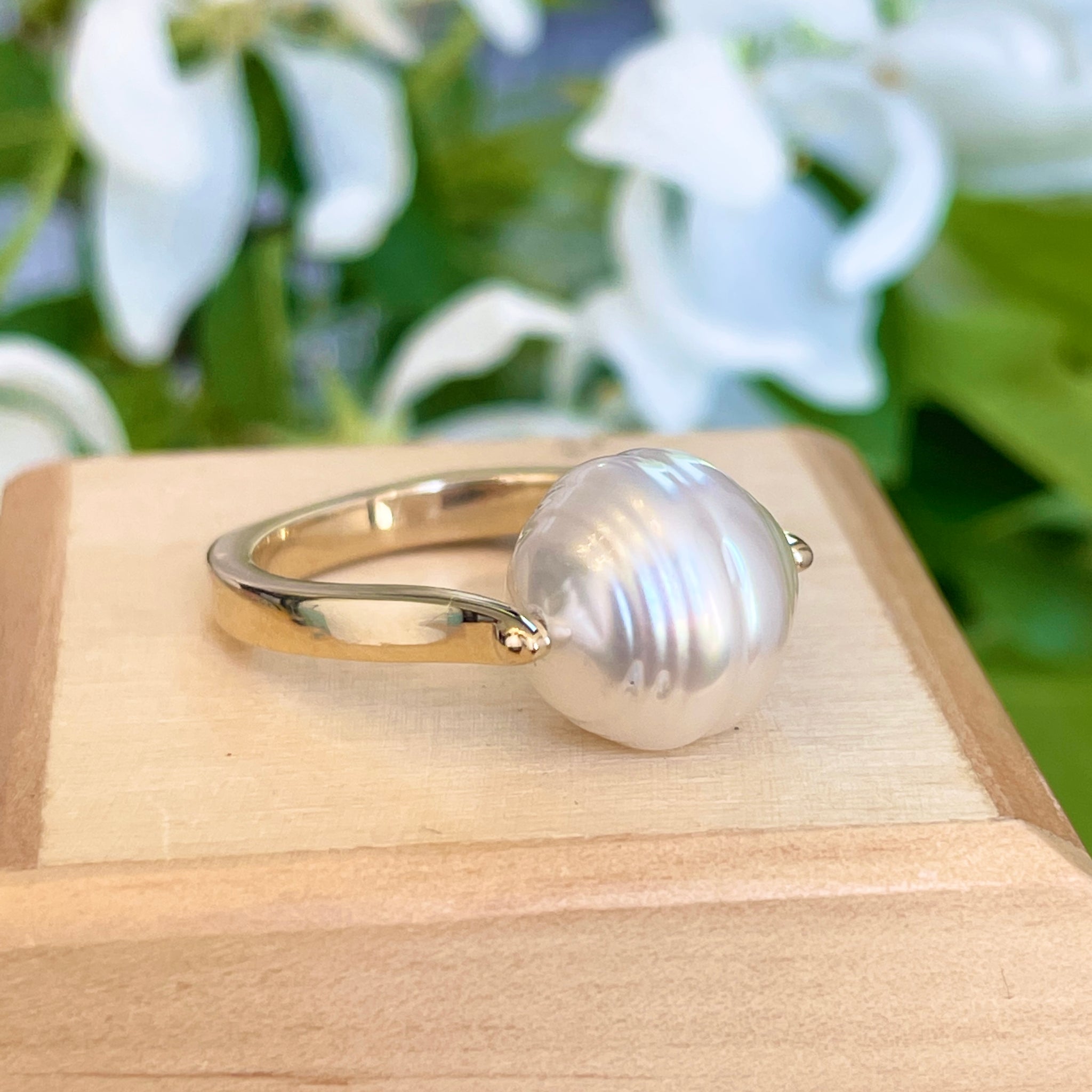 14KT Yellow Gold 12mm Genuine Paspaley South Sea Pearl Unique Design Ring