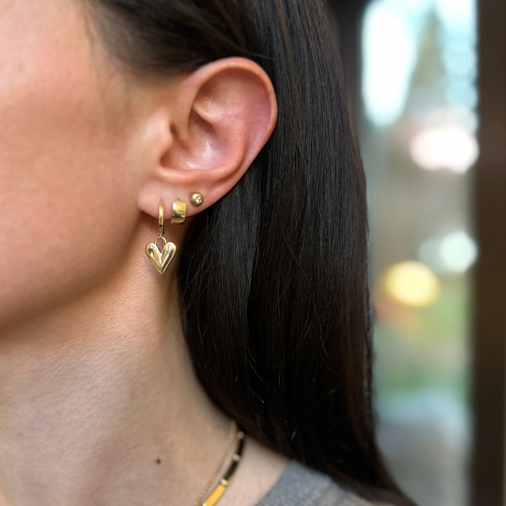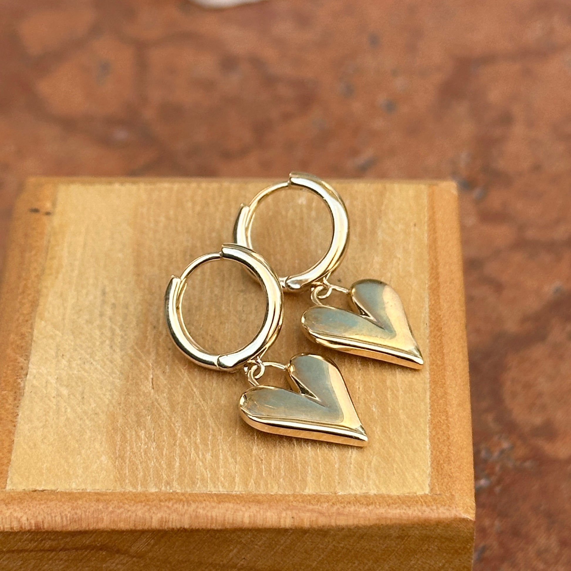 14KT Yellow Gold Huggie Hoop Earrings with 2D Heart Charms