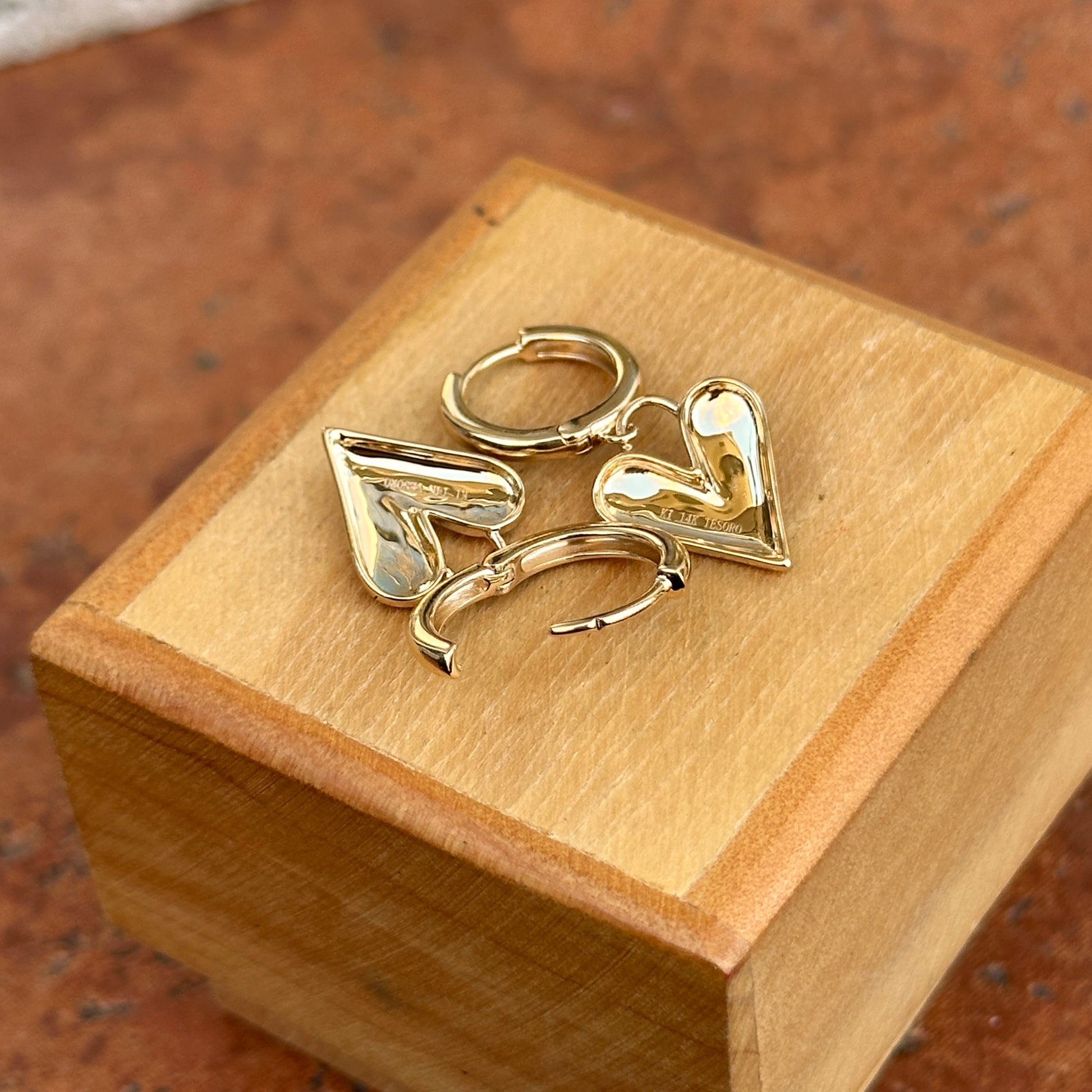 14KT Yellow Gold Heart Charm Huggie Hoop Earrings 25mm
