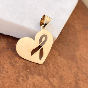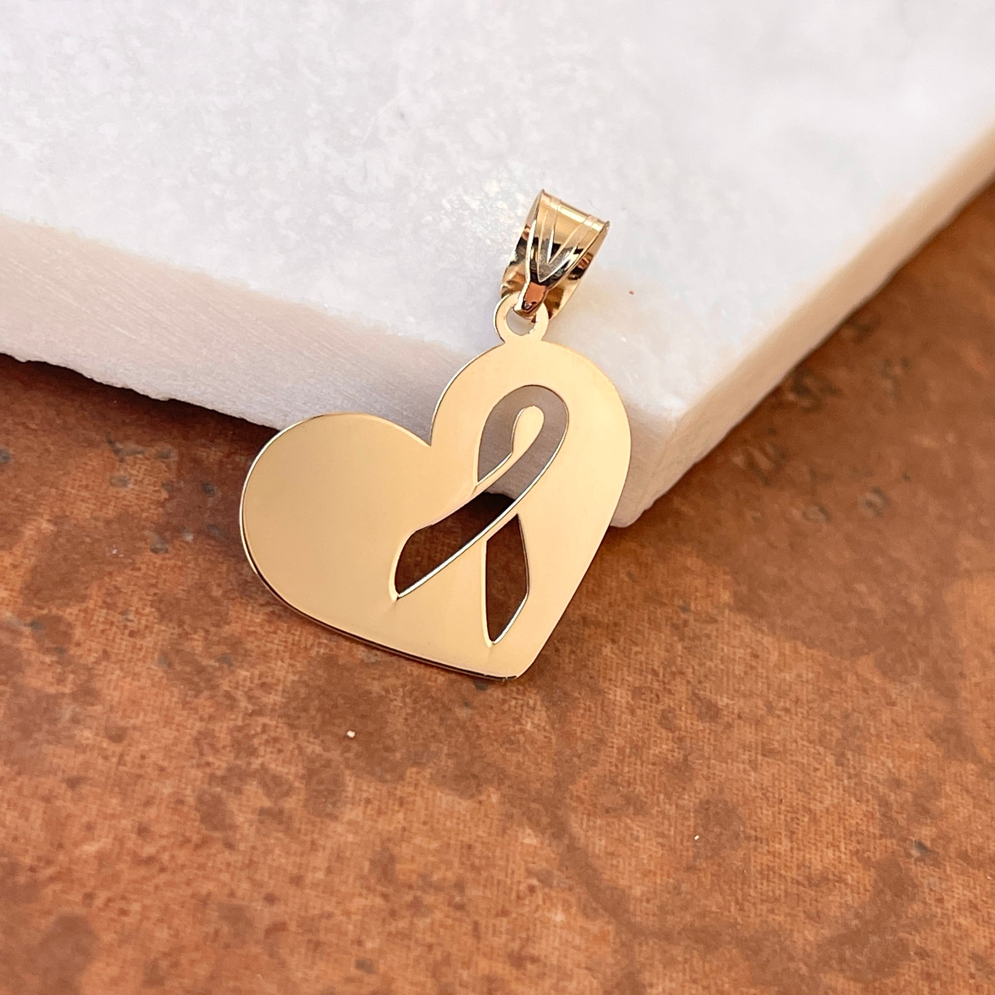 14KT Yellow Gold Heart Cut-Out Awareness Ribbon Pendant Charm