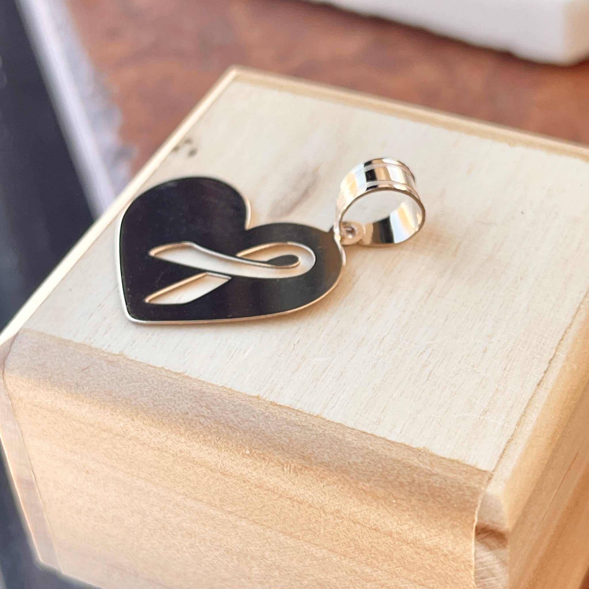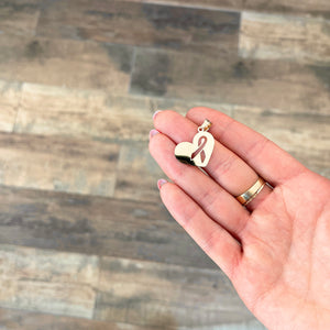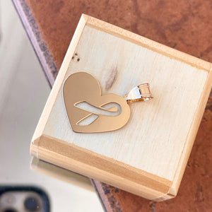 Show your support with this beautiful 14KT yellow gold Breast Cancer Awareness heart pendant charm with cut-out ribbon. Wear alone on a chain or add it onto a charm bracelet!