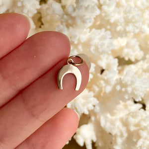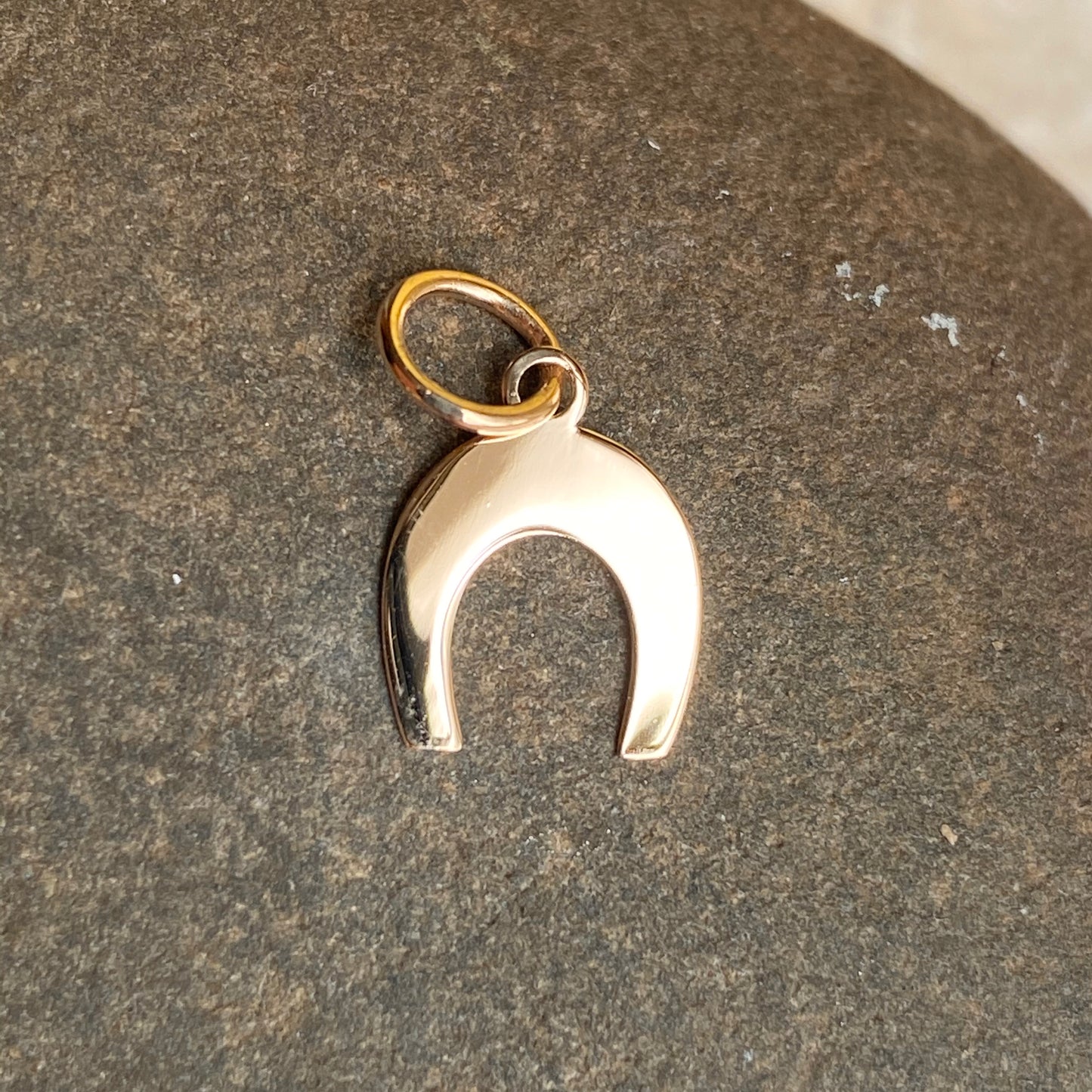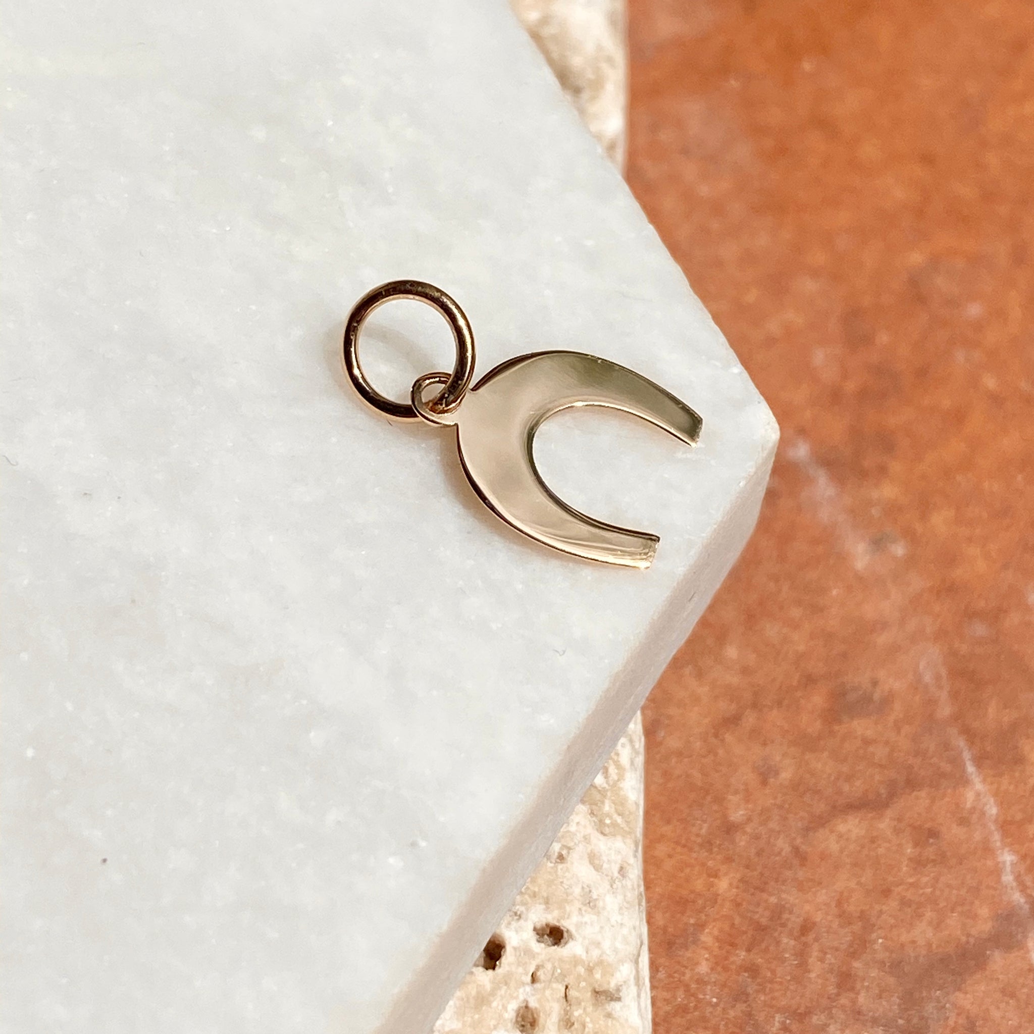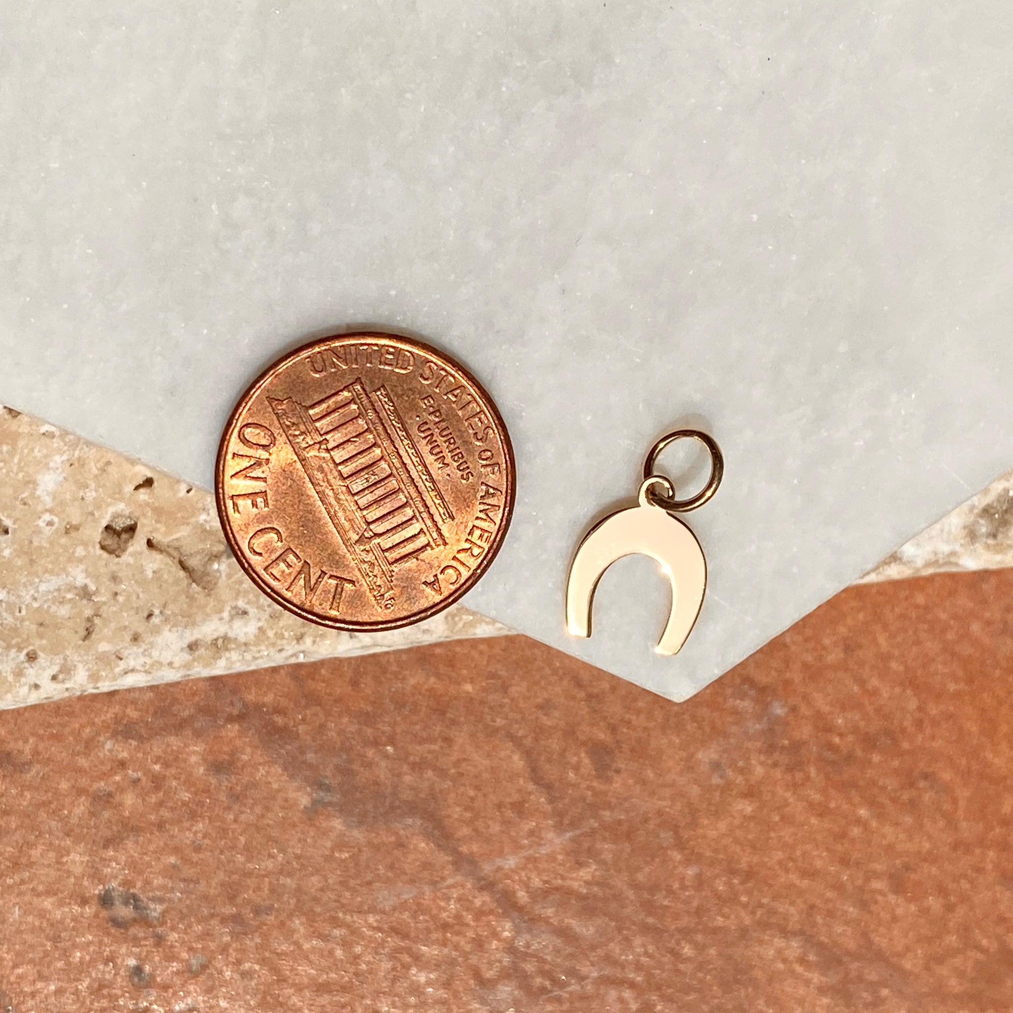 14KT yellow gold horseshoe pendant lucky charm. This charm looks great on a thin chain by itself, or wear combined with special charms to create an interesting conversation piece necklace!