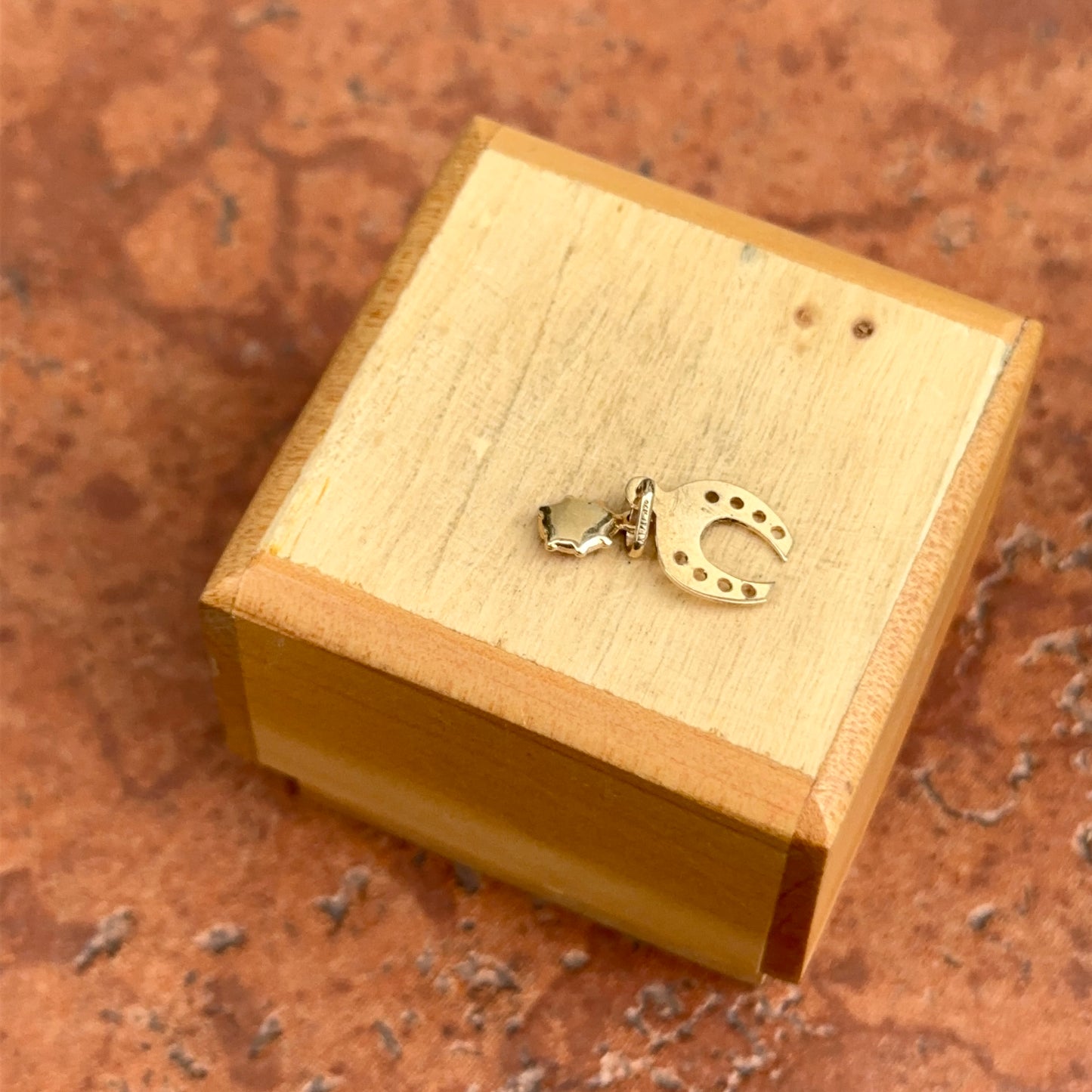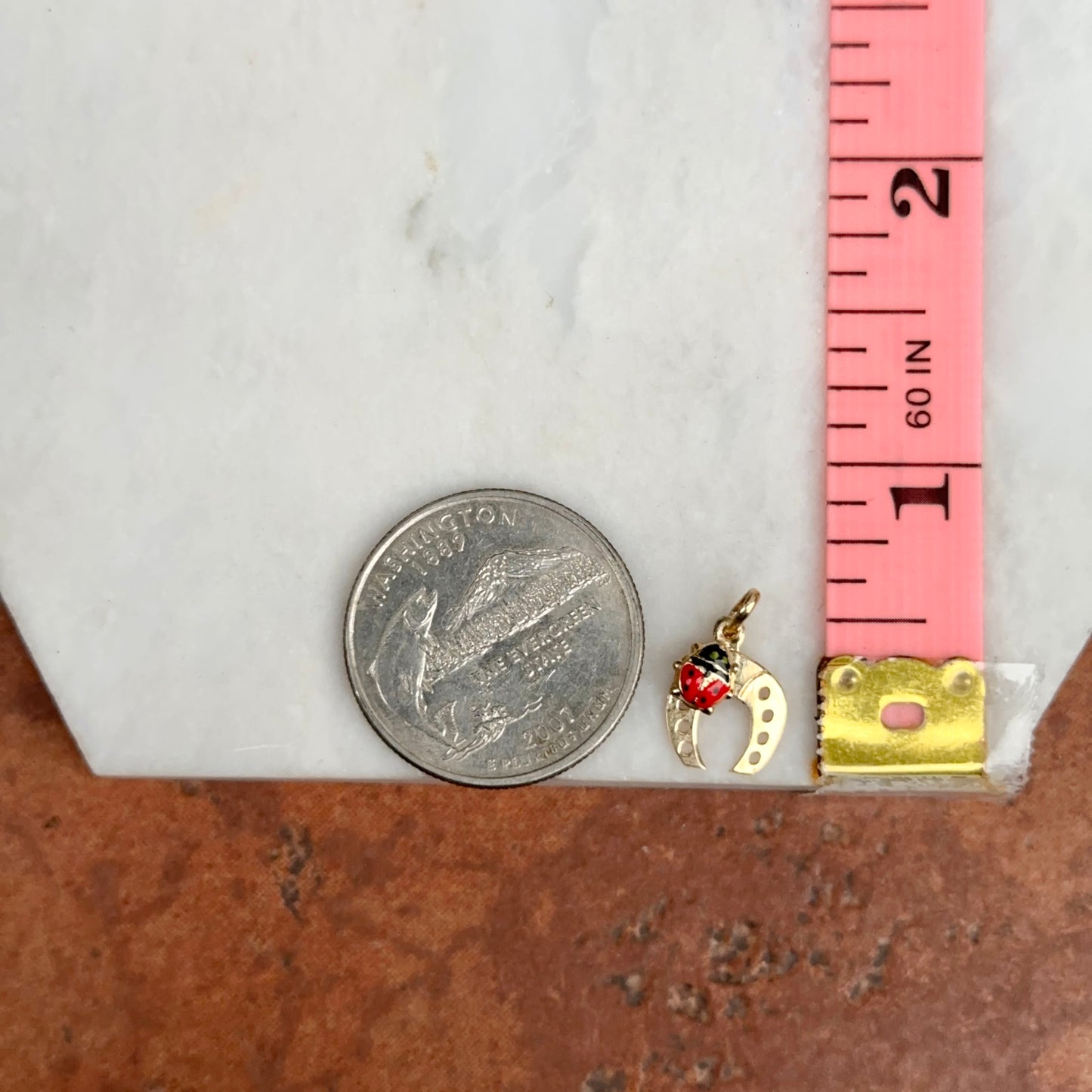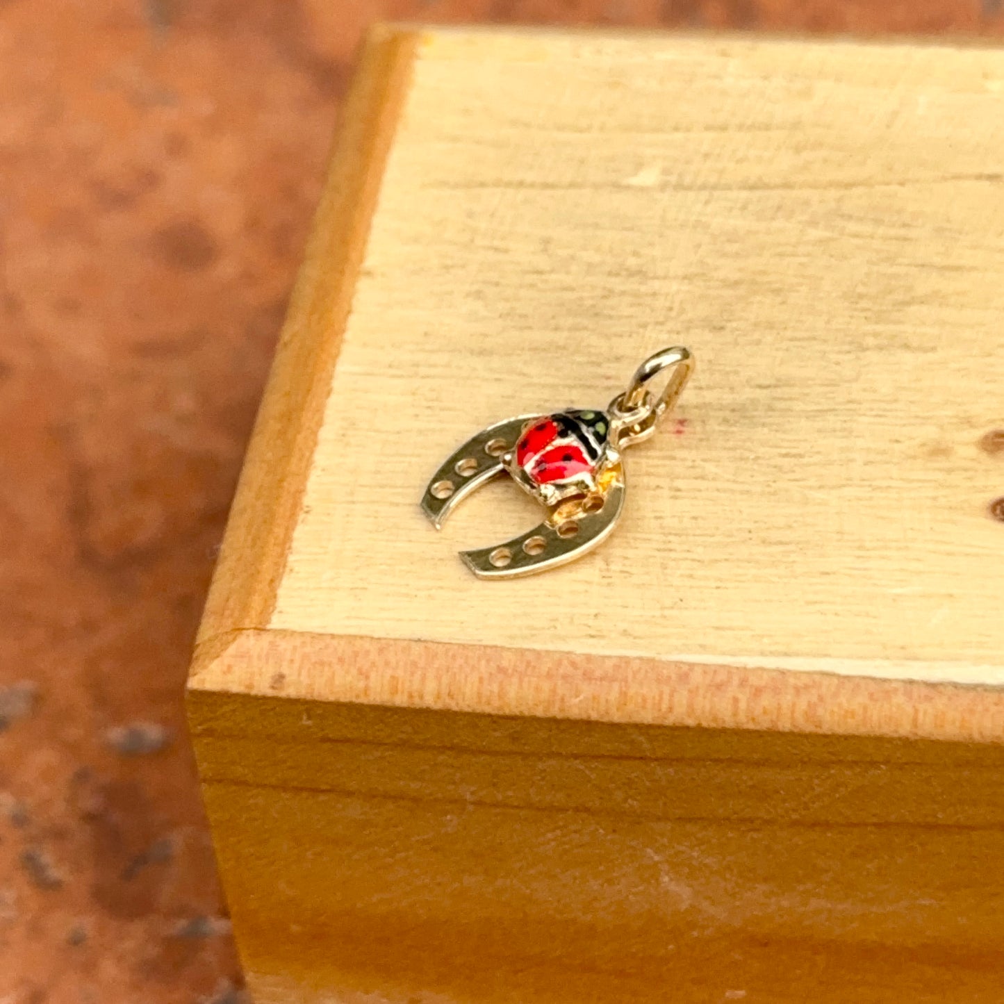 14KT Yellow Gold Horseshoe + Red Ladybug Pendant Charm