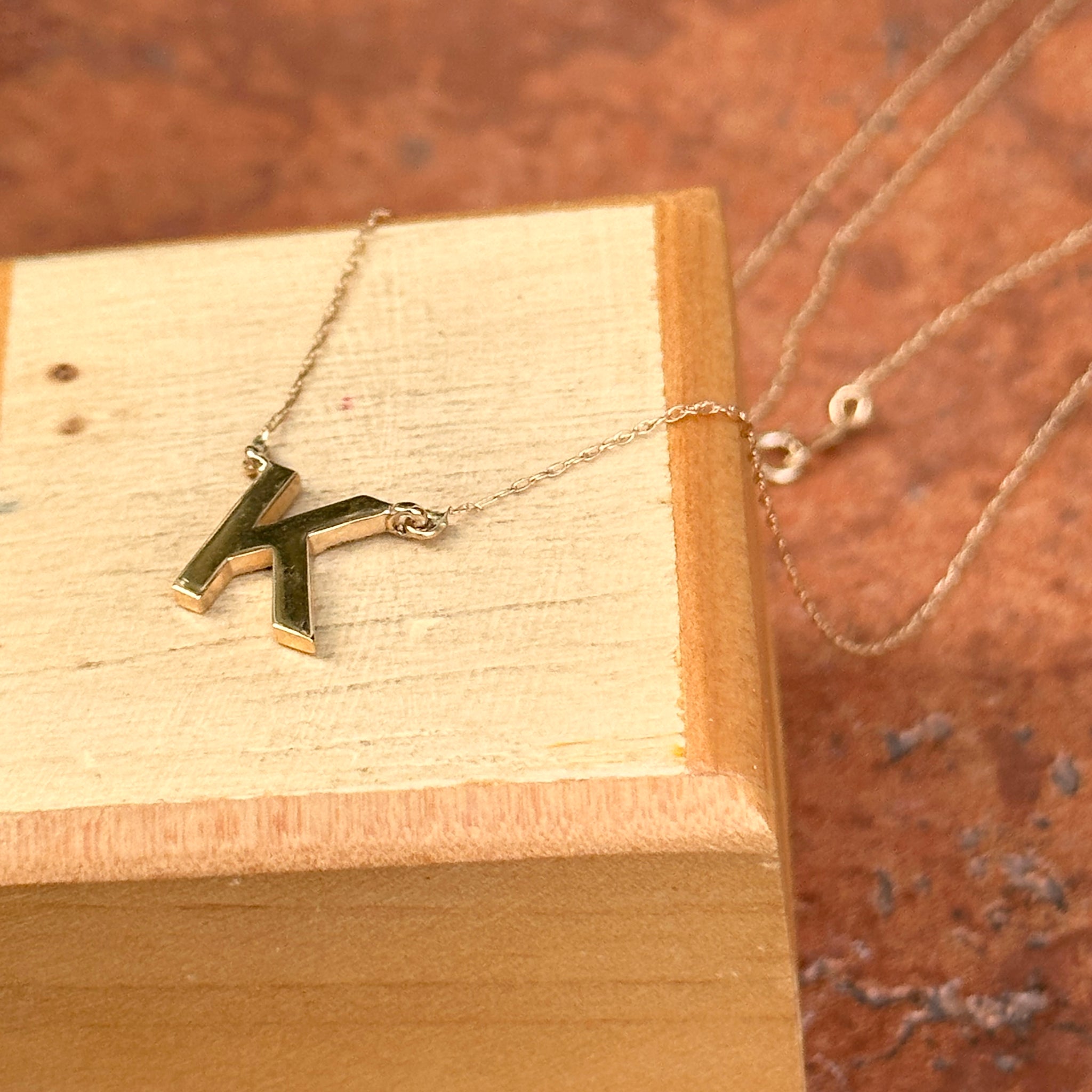 14KT Yellow Gold Initial K Station Pendant Necklace