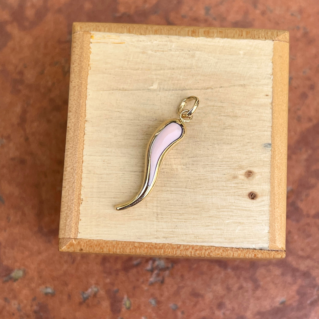 14KT Yellow Gold Light Pink Enamel Cornicello Italian Horn Pendant