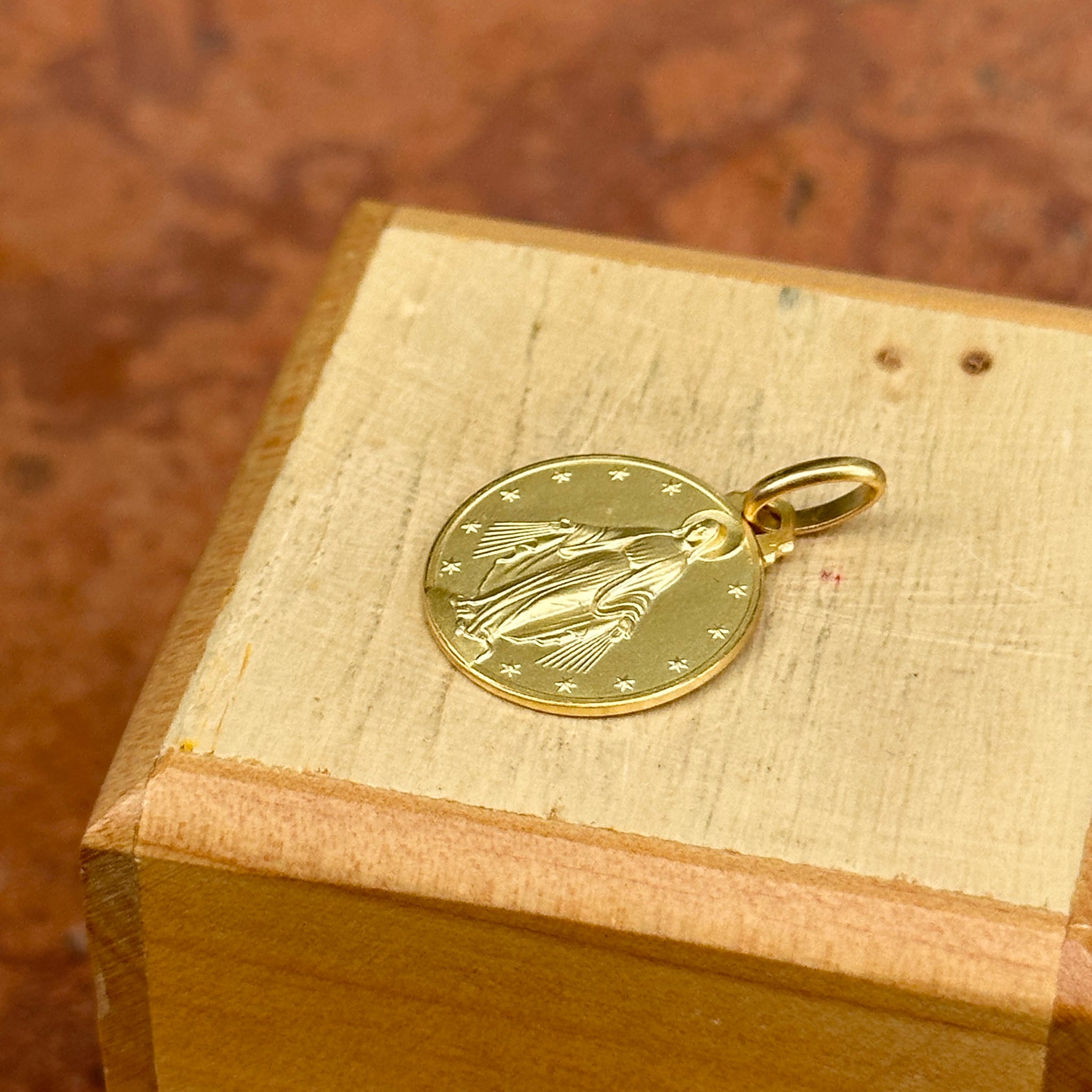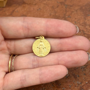 14KT Yellow Gold Matte Miraculous Mary Medal Round Medal Pendant 16mm