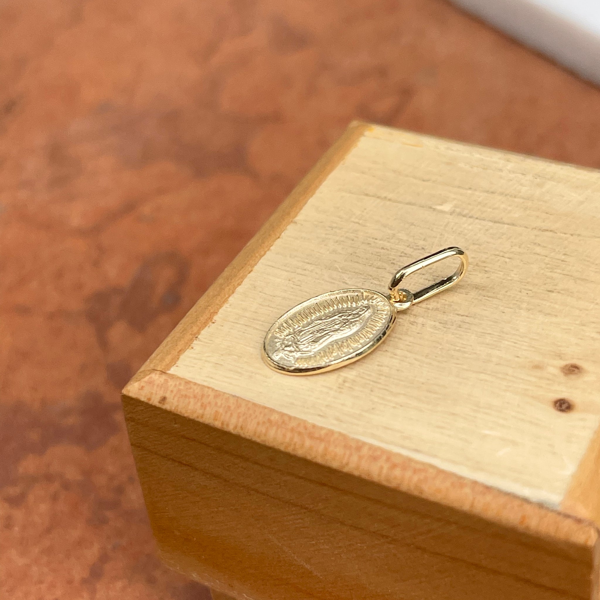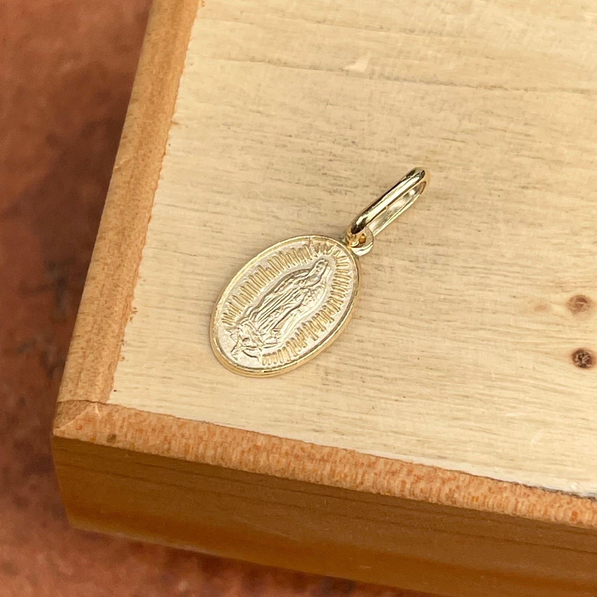 14KT Yellow Gold Matte Our Lady of Guadalupe Oval Medal Pendant Charm