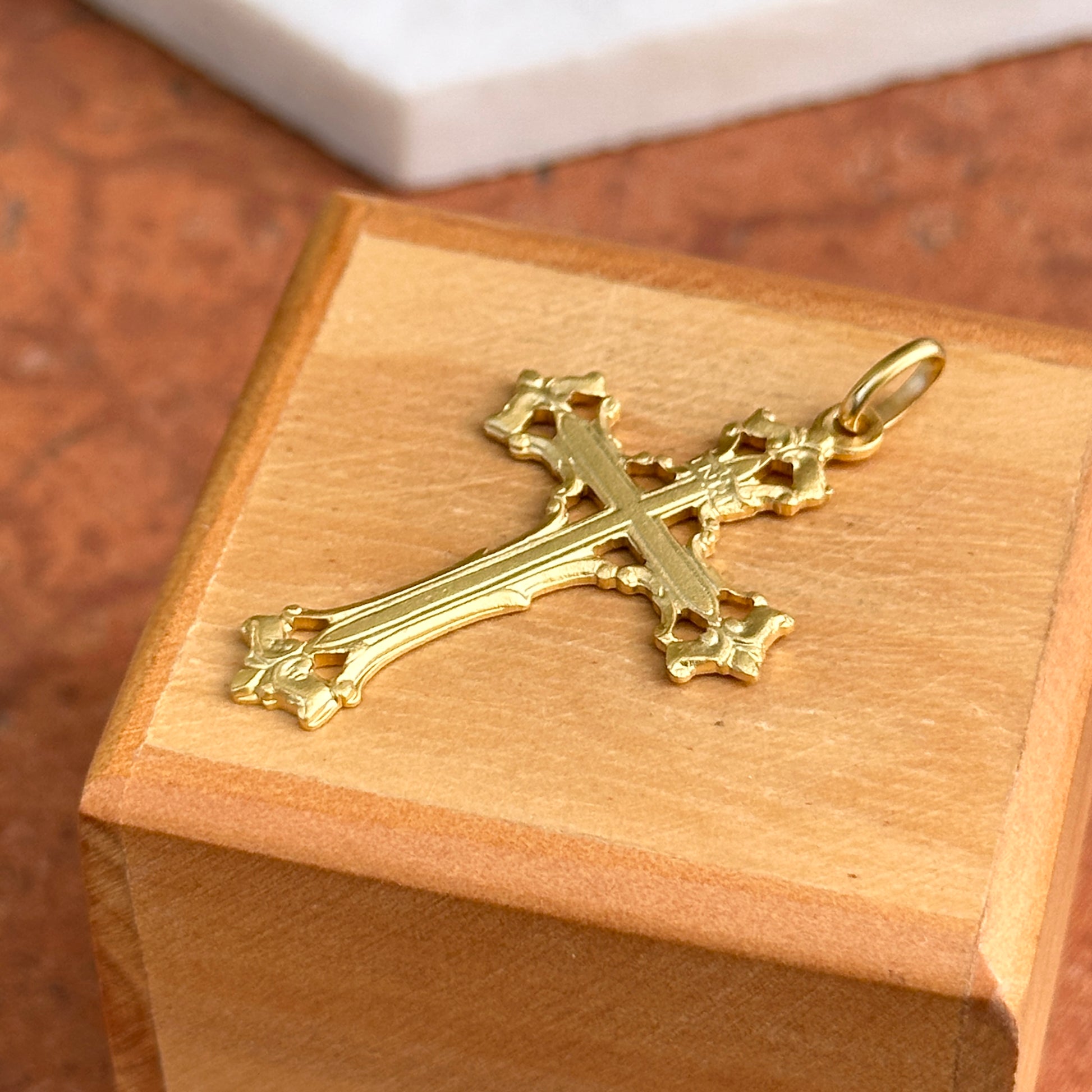 14KT Yellow Gold Matte Solid Filigree Cross Pendant 40mm