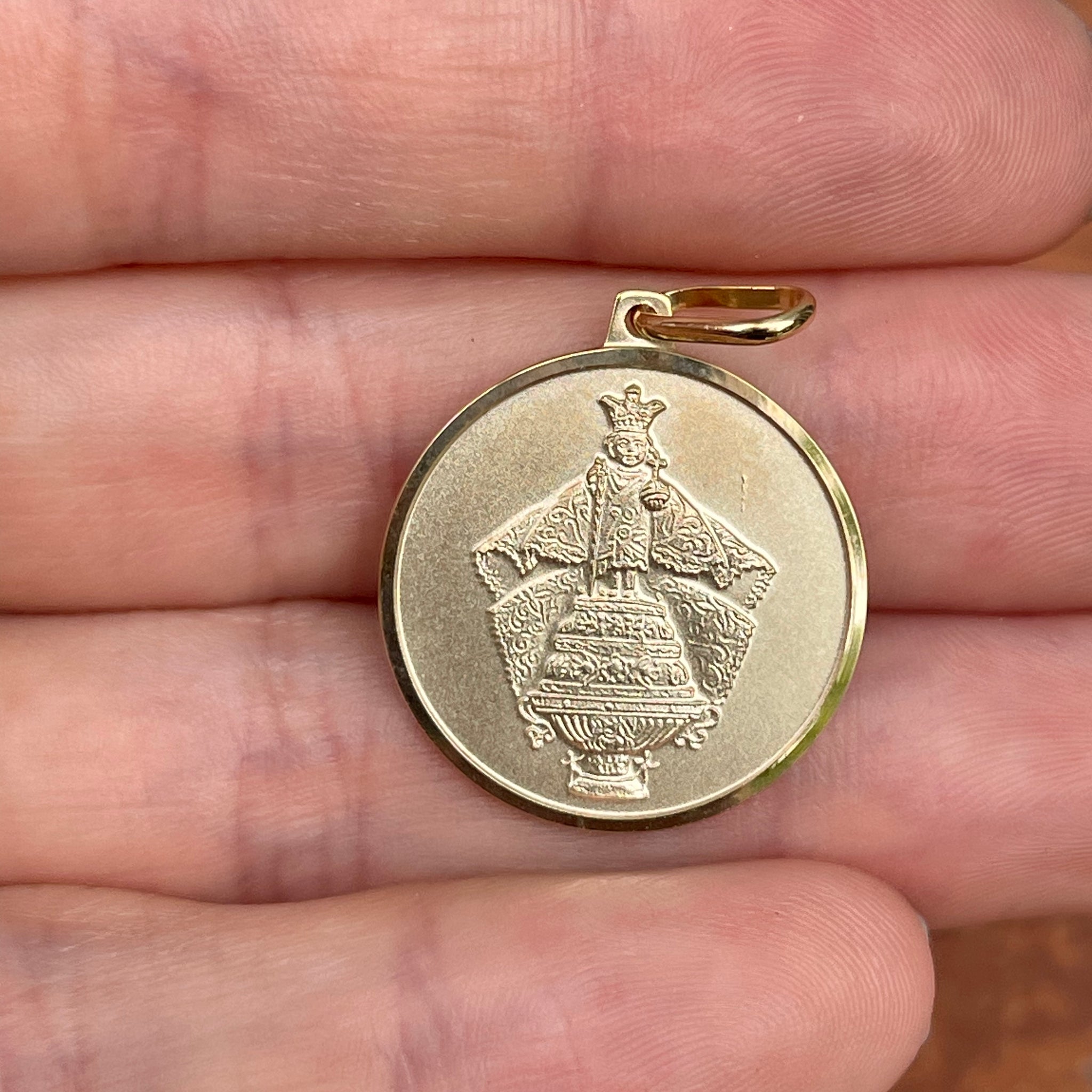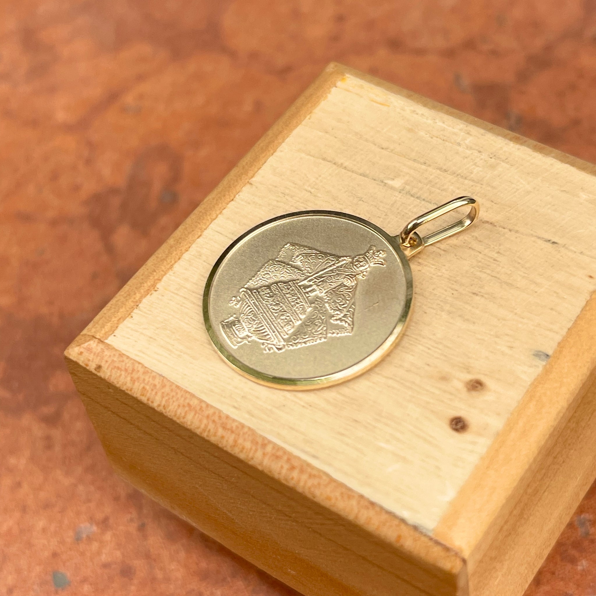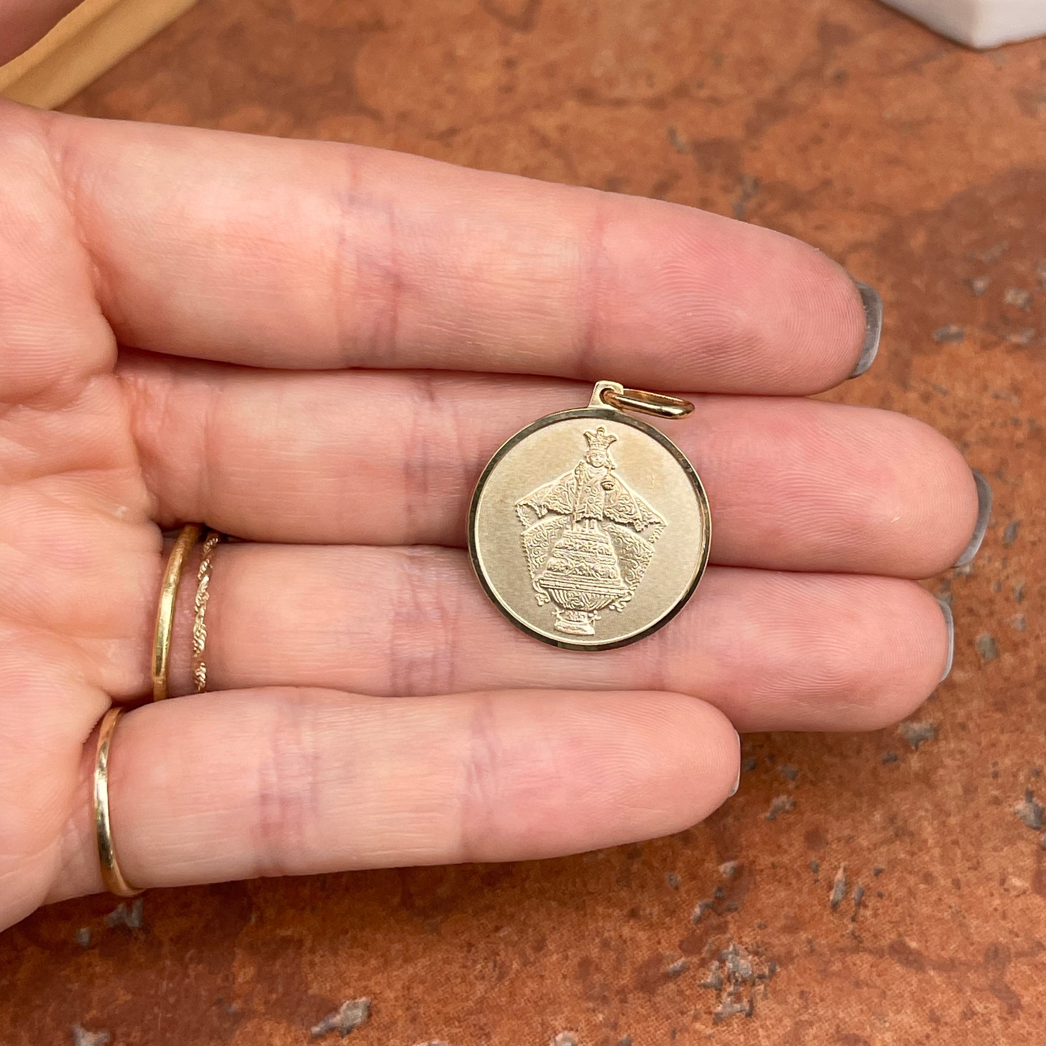 14KT Yellow Gold Matte St Nino Round Medal Pendant