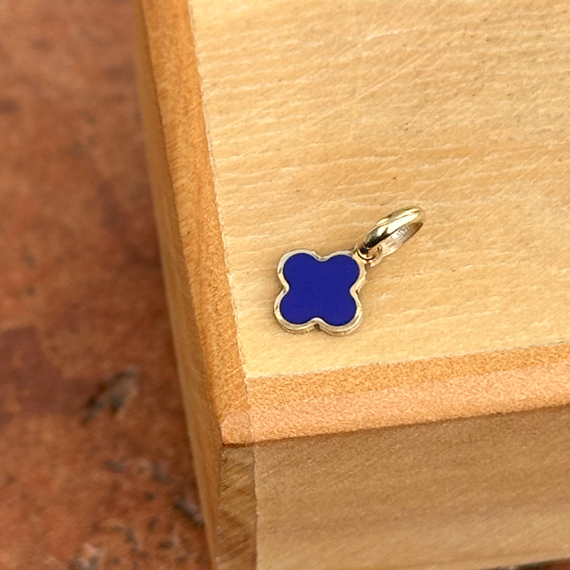 14KT Yellow Gold Mini 4-Leaf Blue Lapis Inlay Clover Pendant Charm 7mm