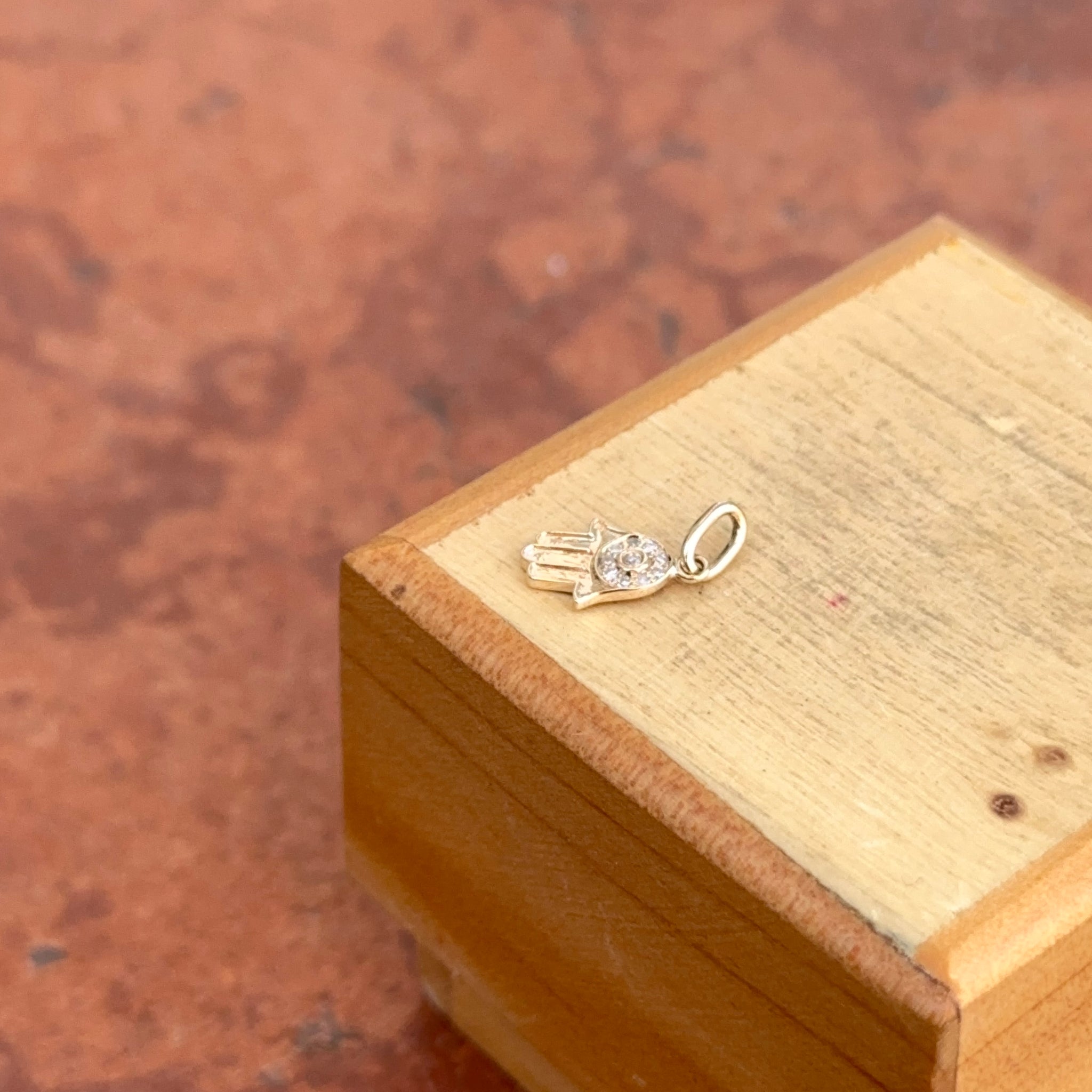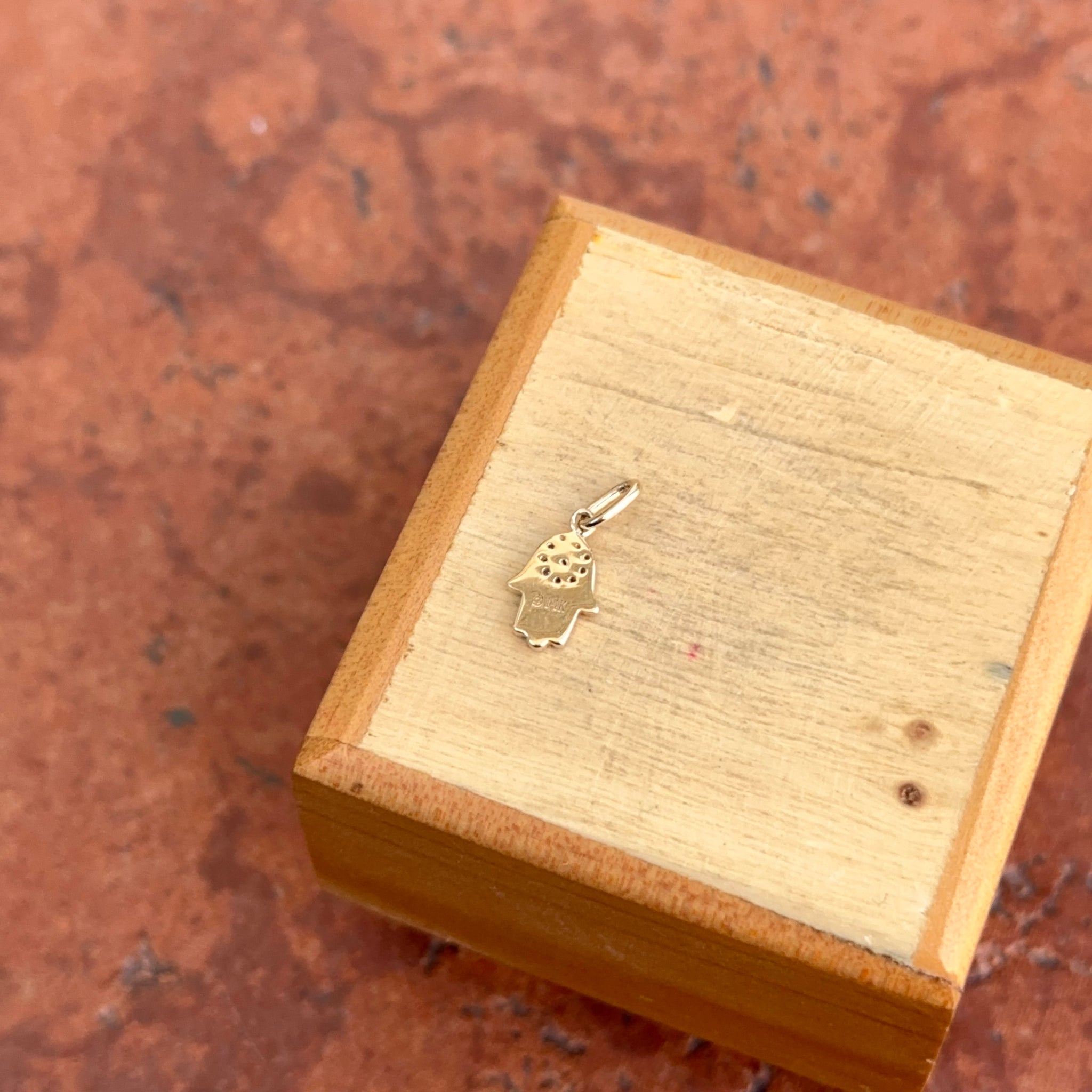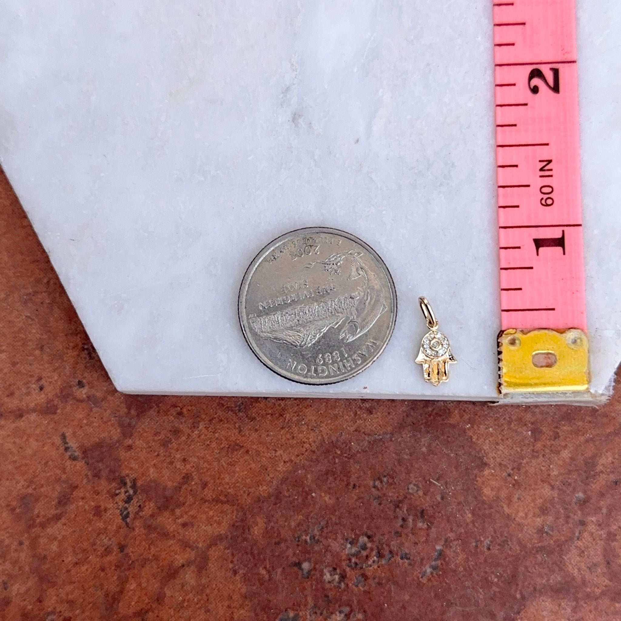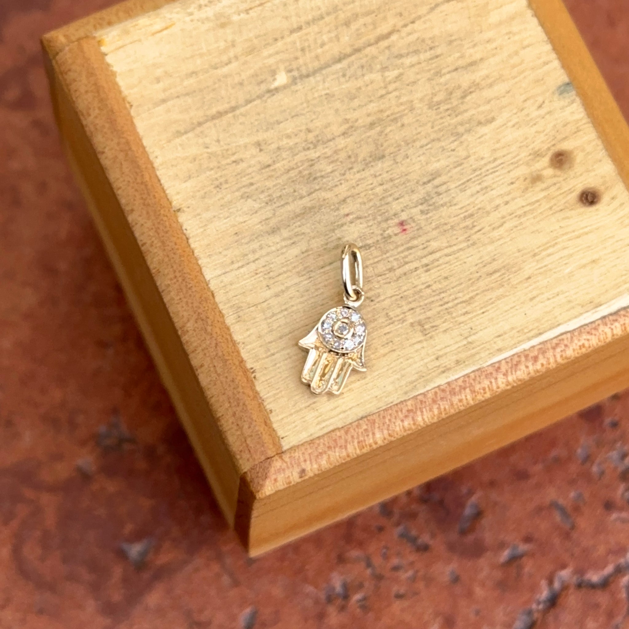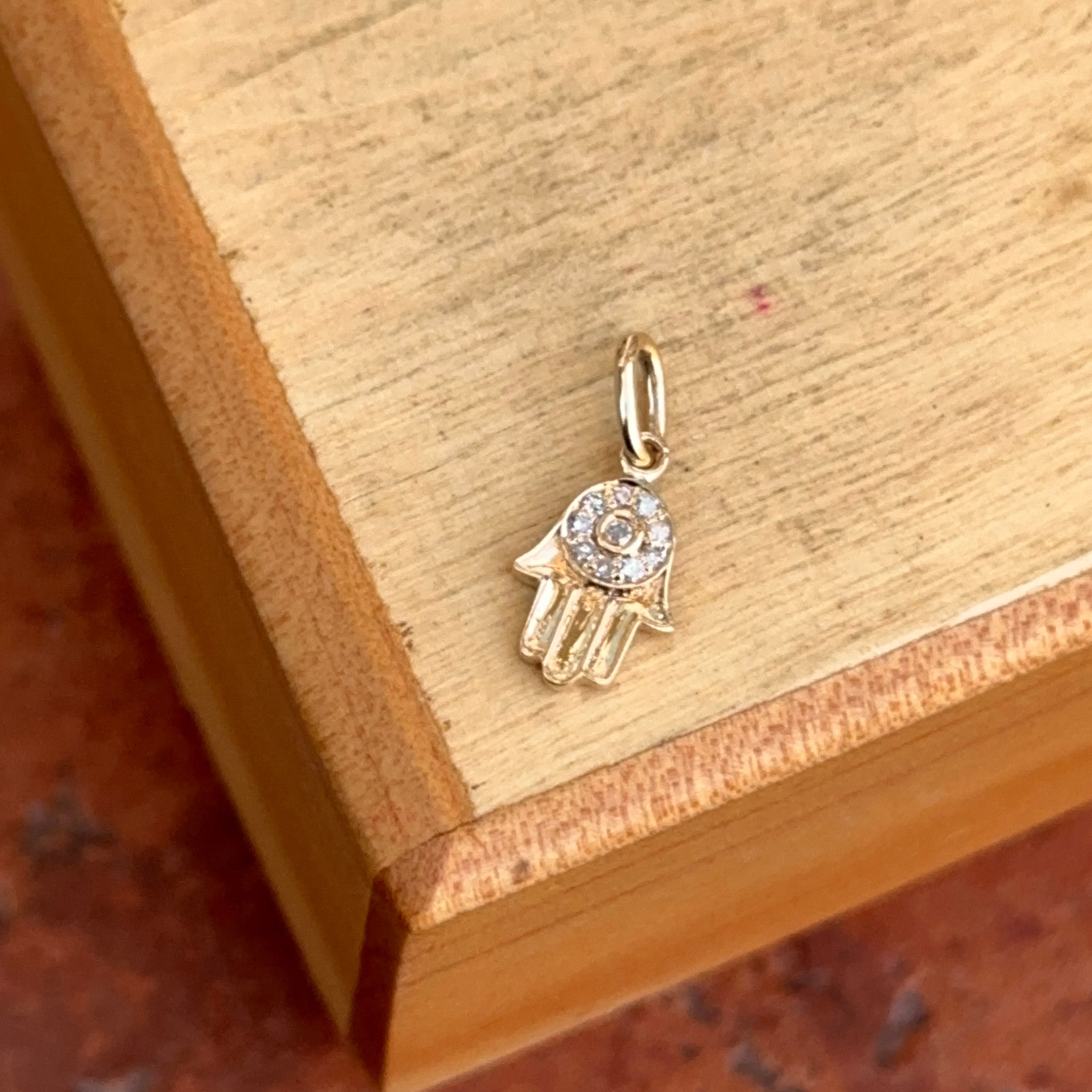14KT Yellow Gold Mini Diamond Hamsa Pendant Charm