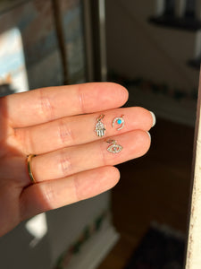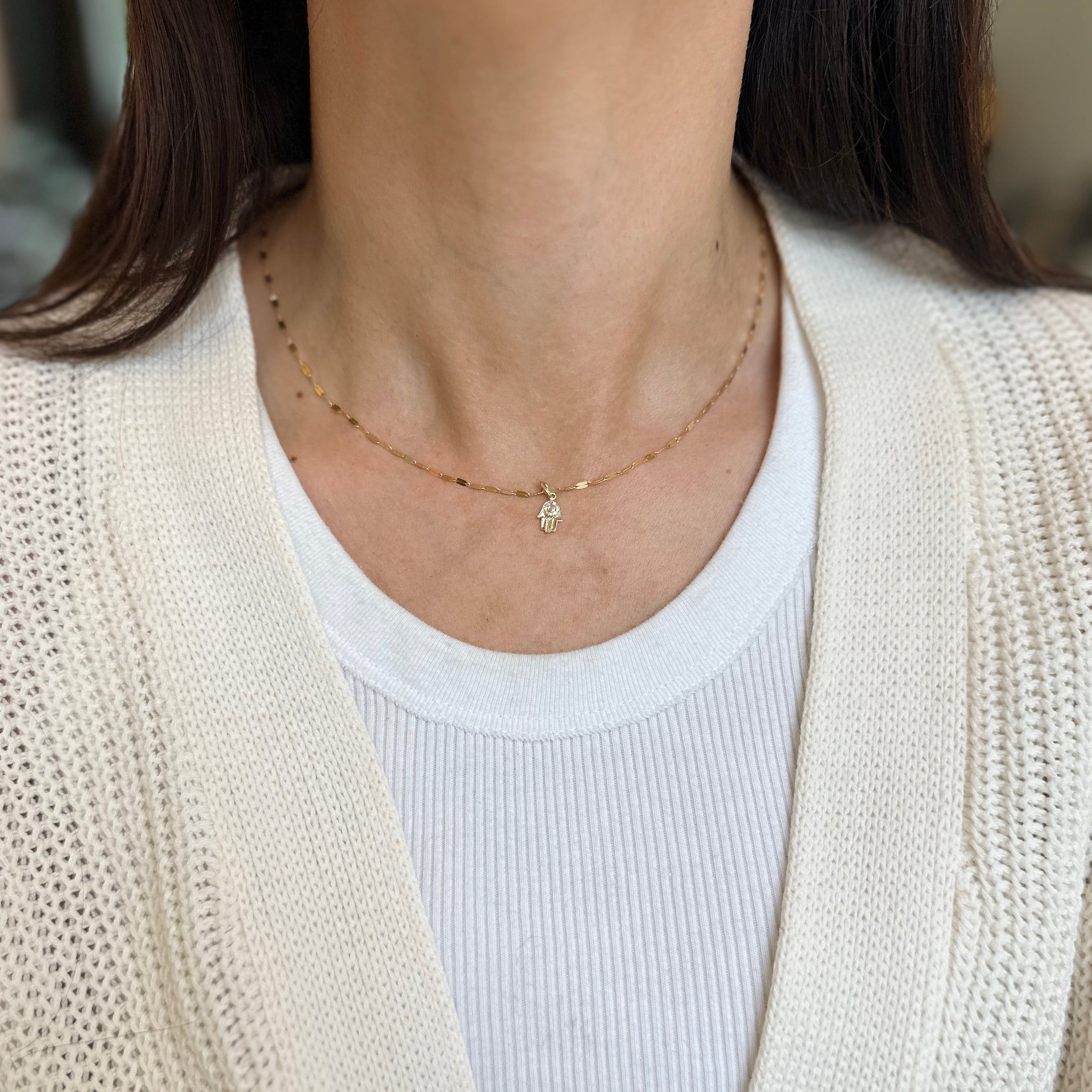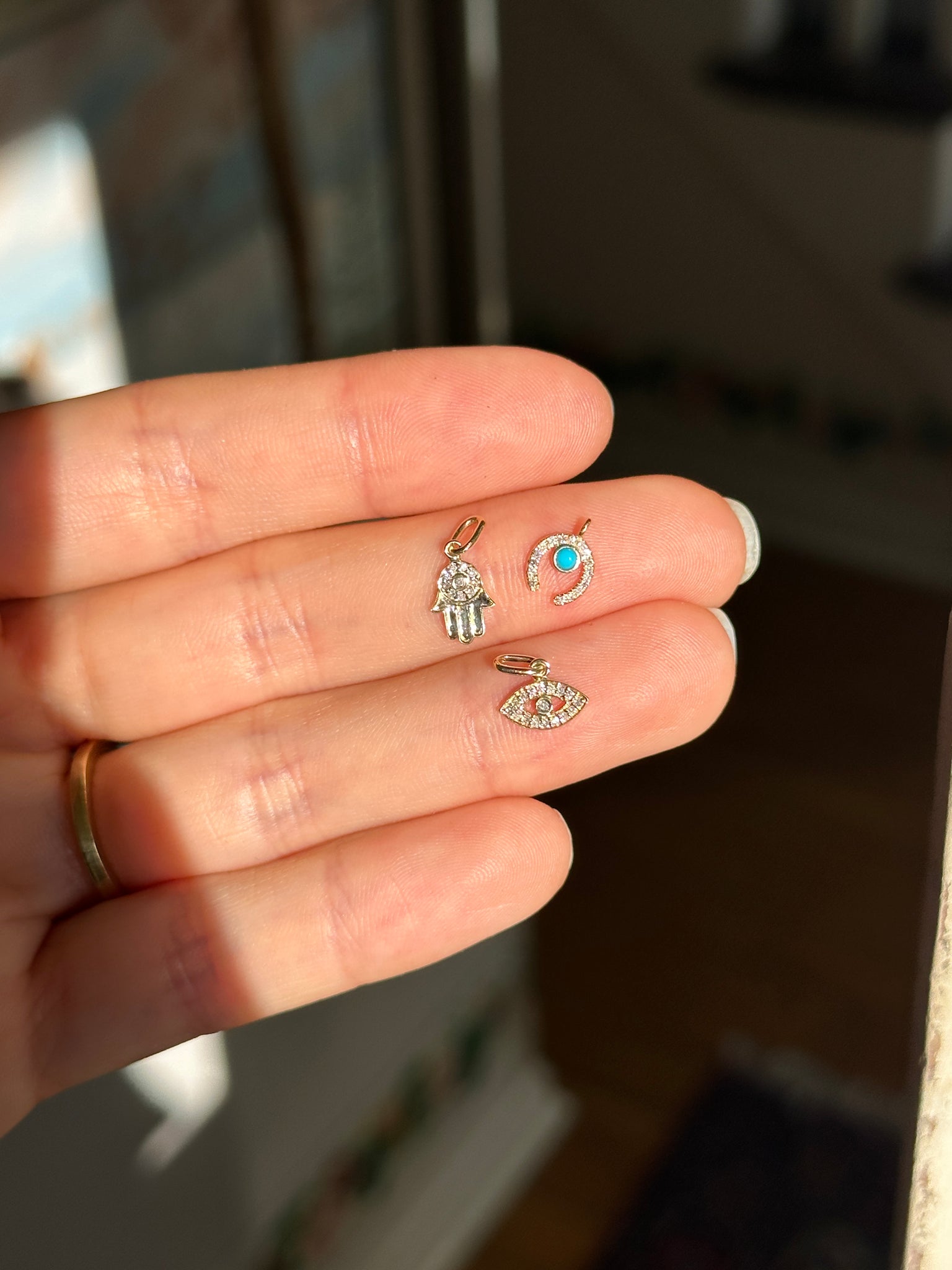 14KT yellow gold pave diamond hamsa Chamseh mini pendant charm.