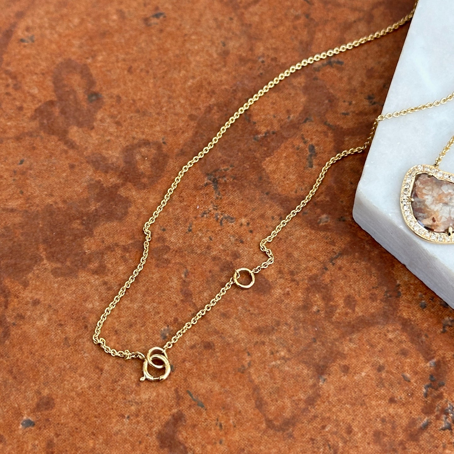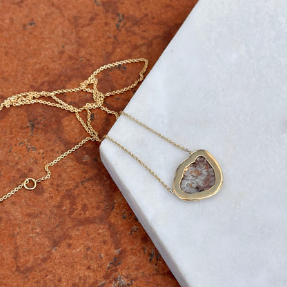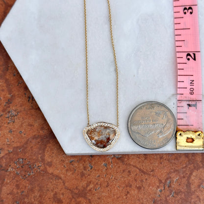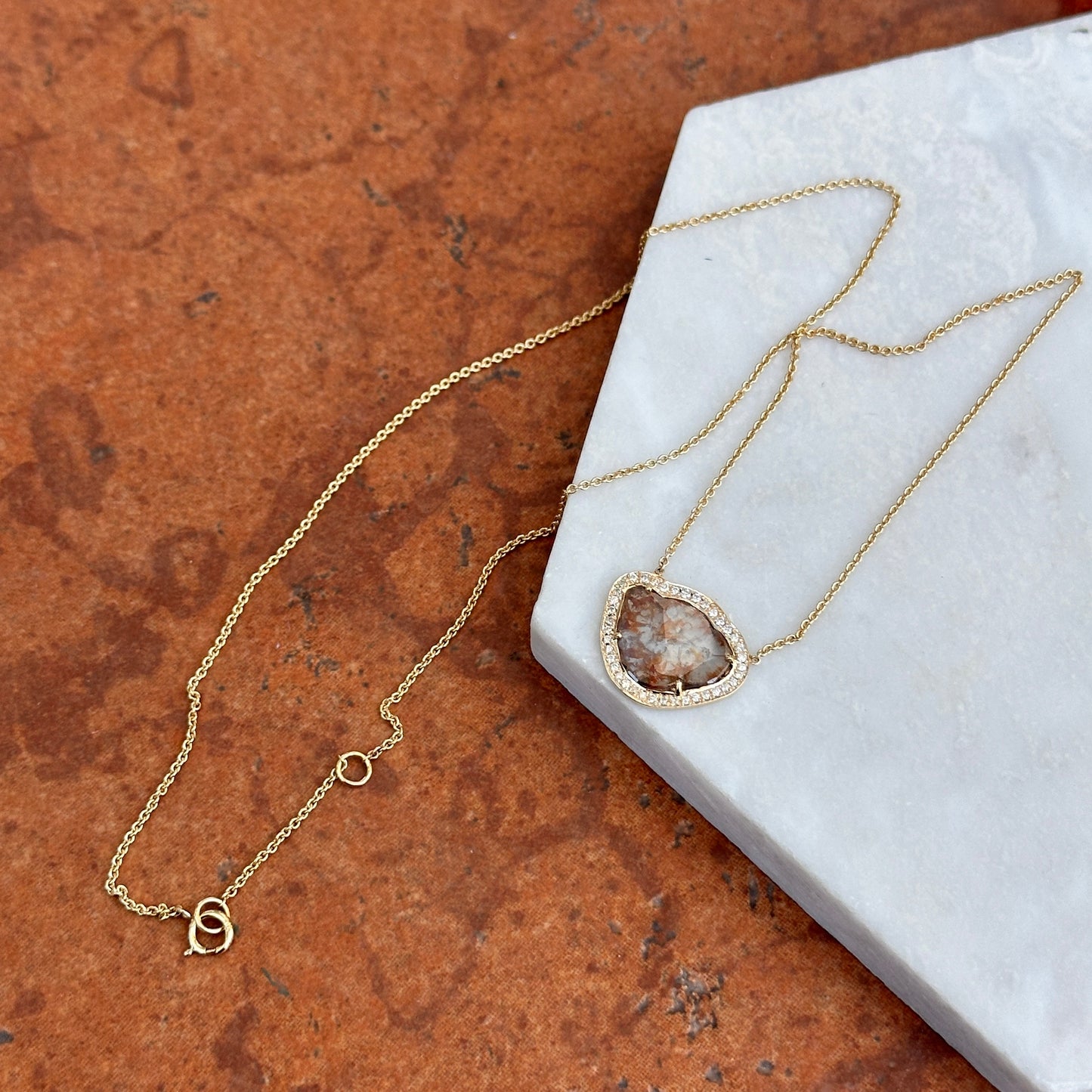 14KT Yellow Gold Multi Color Diamond Slice Center + Diamond halo Necklace