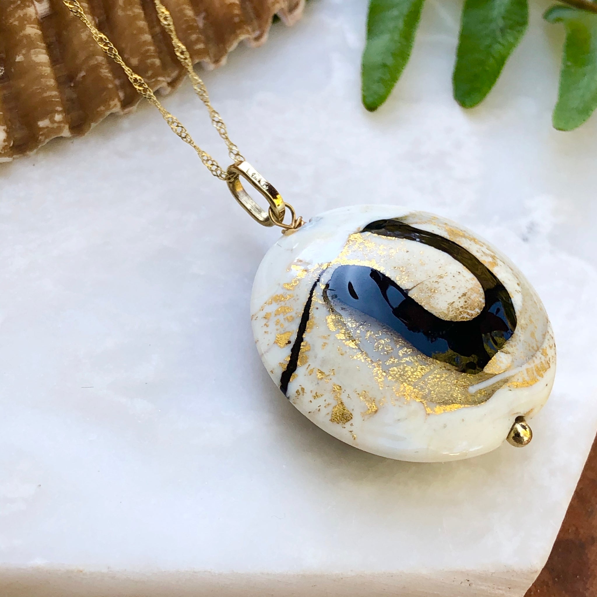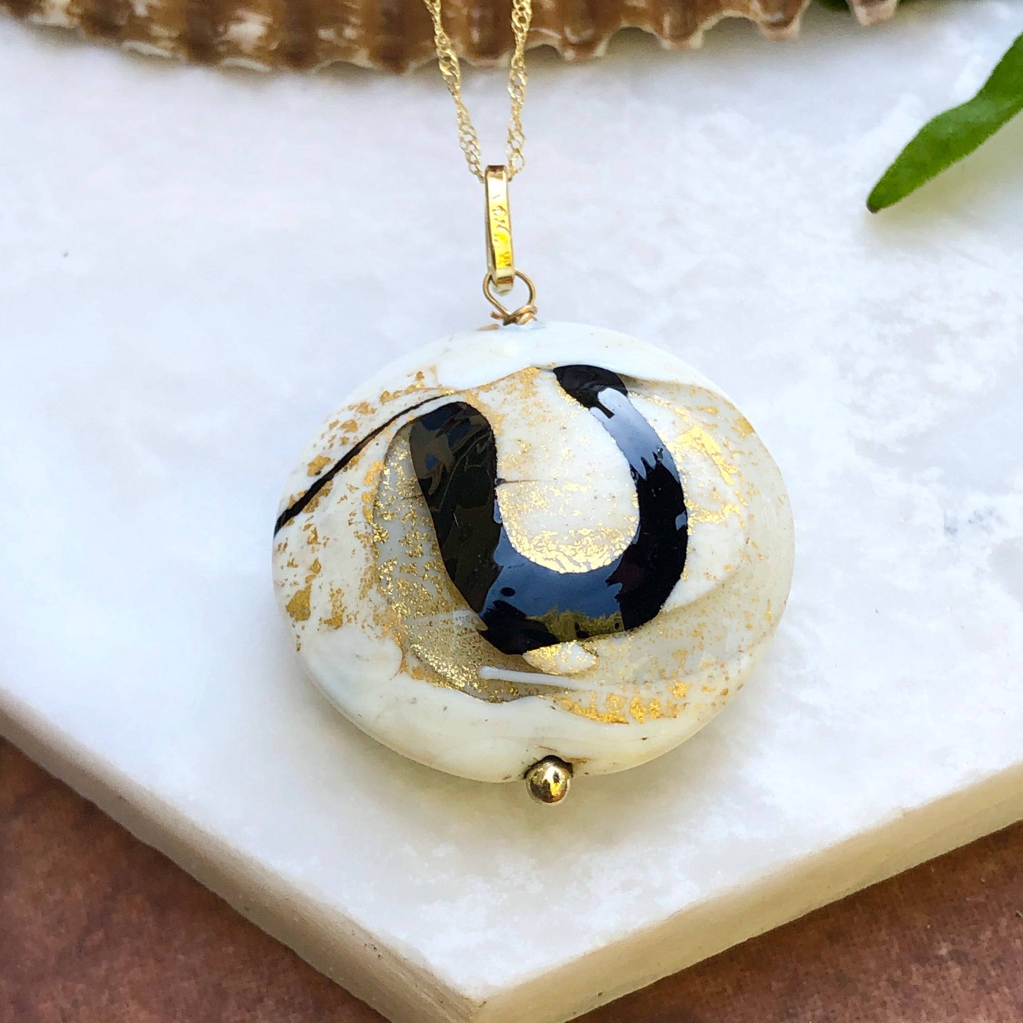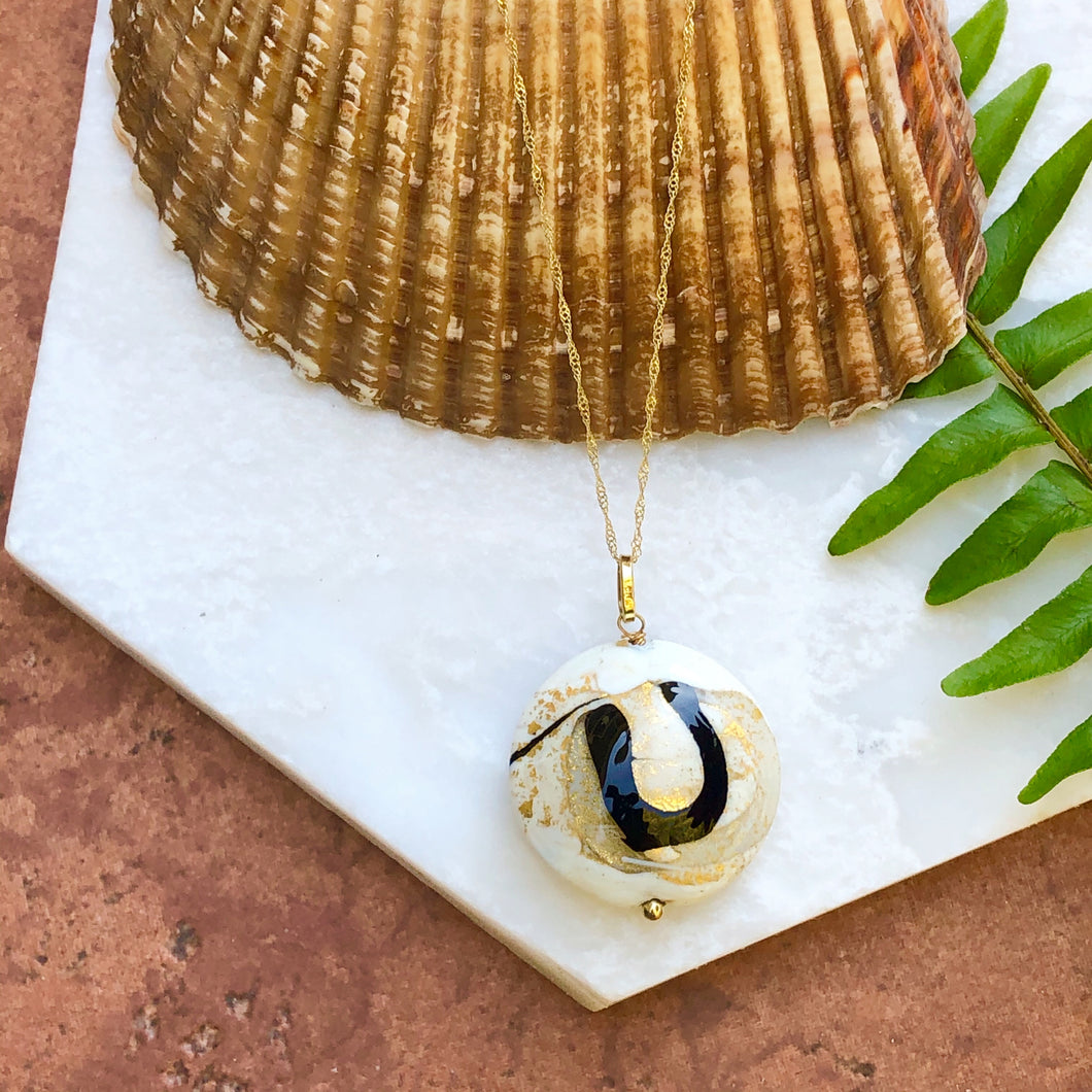 14KT Yellow Gold Murano Art Bead Pendant Necklace