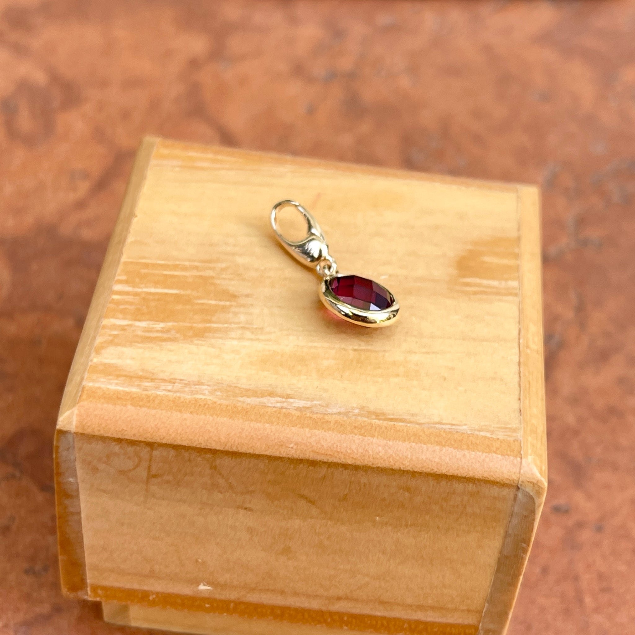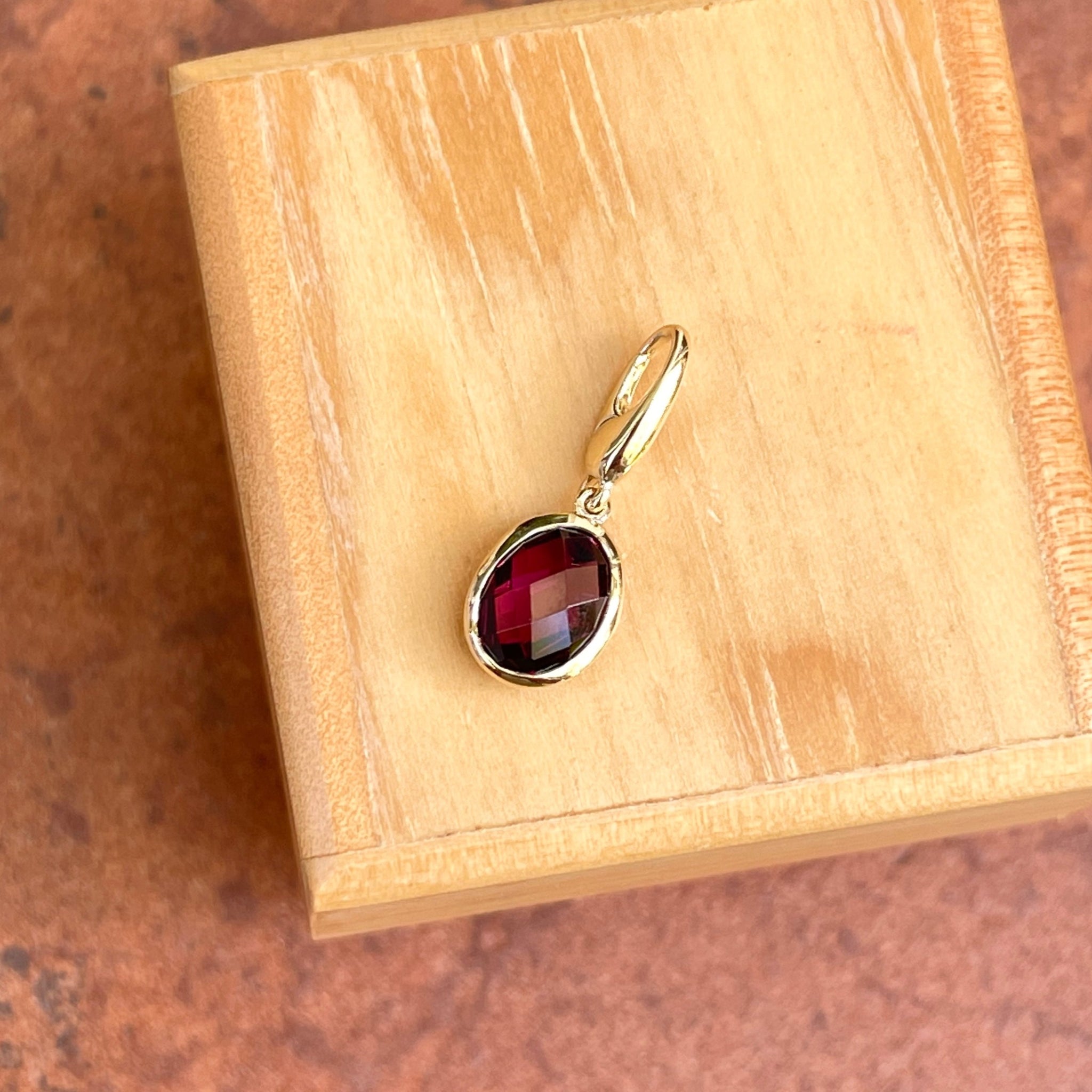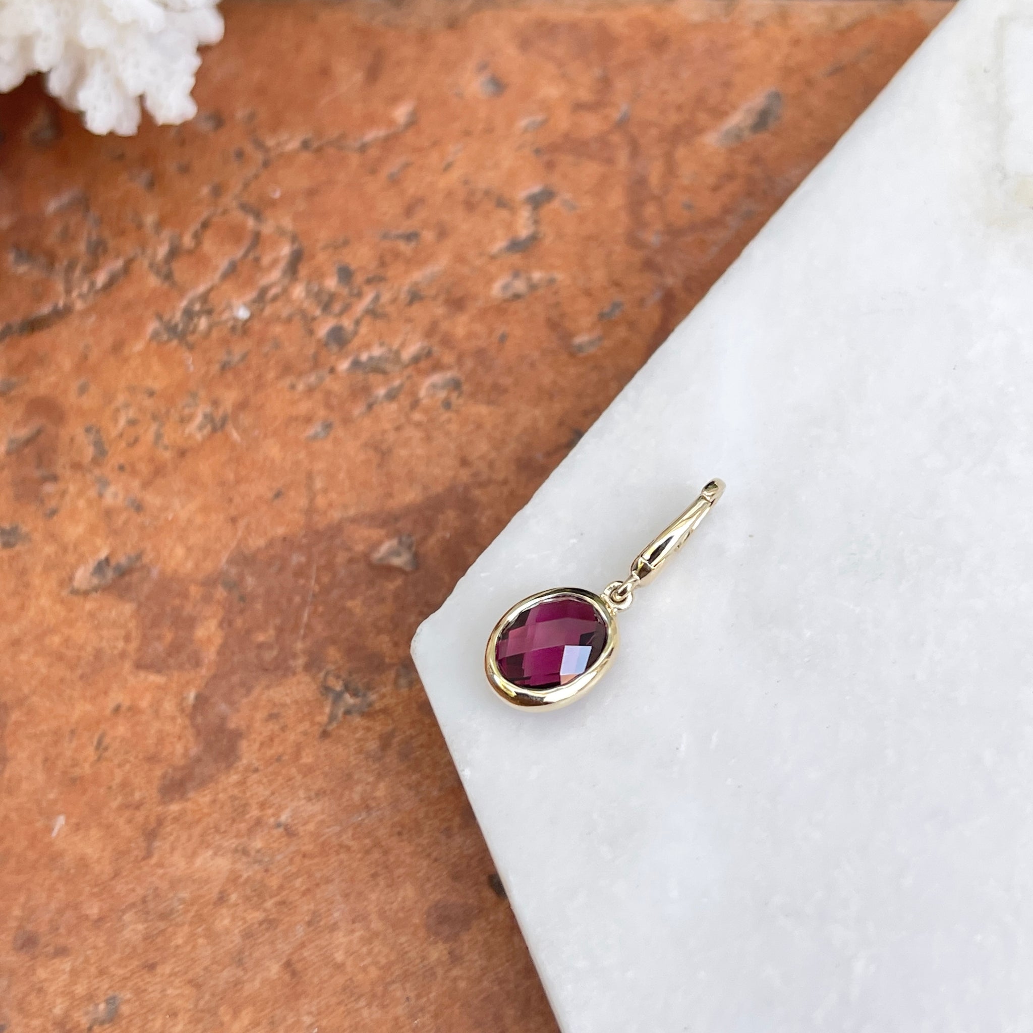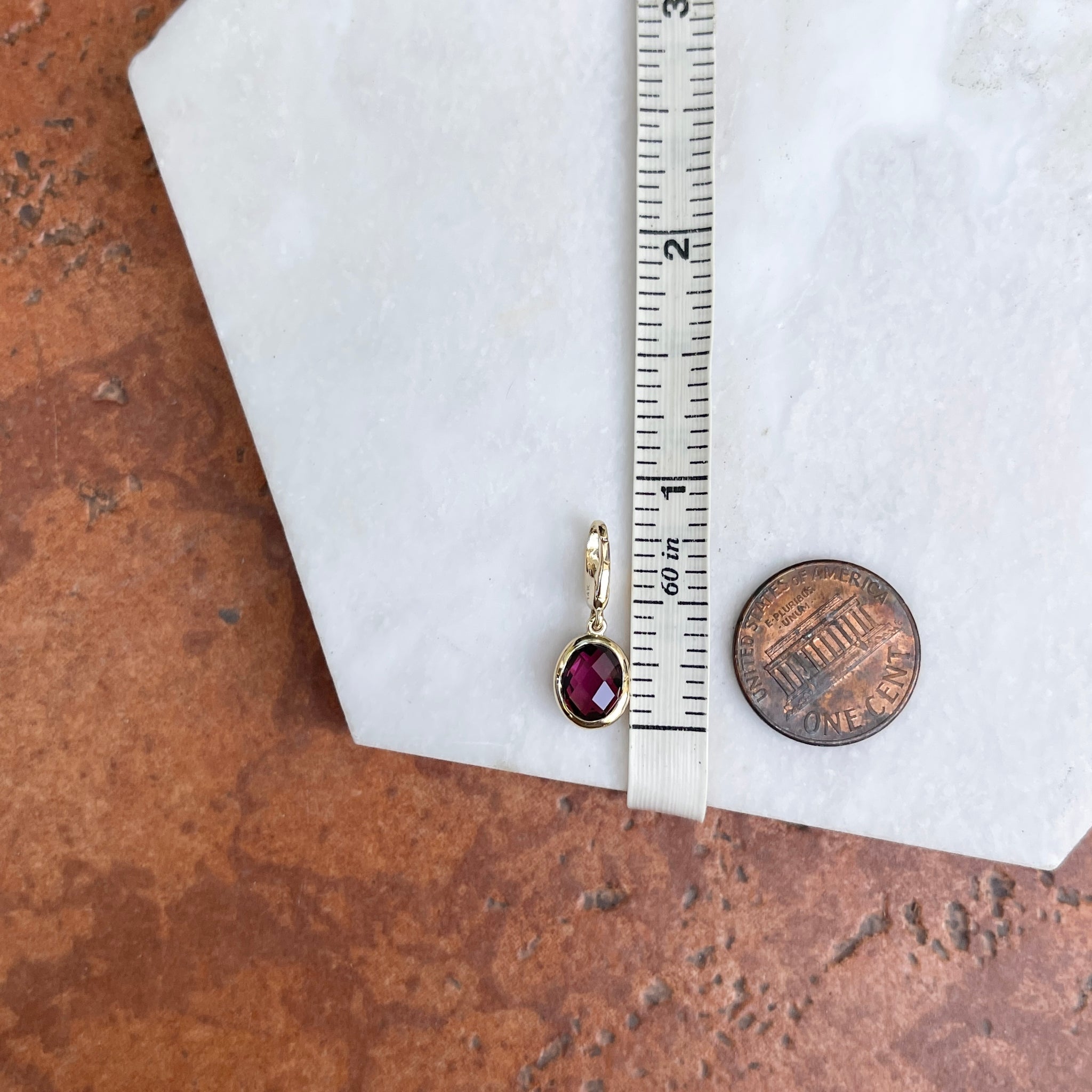 14KT Yellow Gold Oval Bezel Rhodolite Garnet Omega Clip Pendant Charm