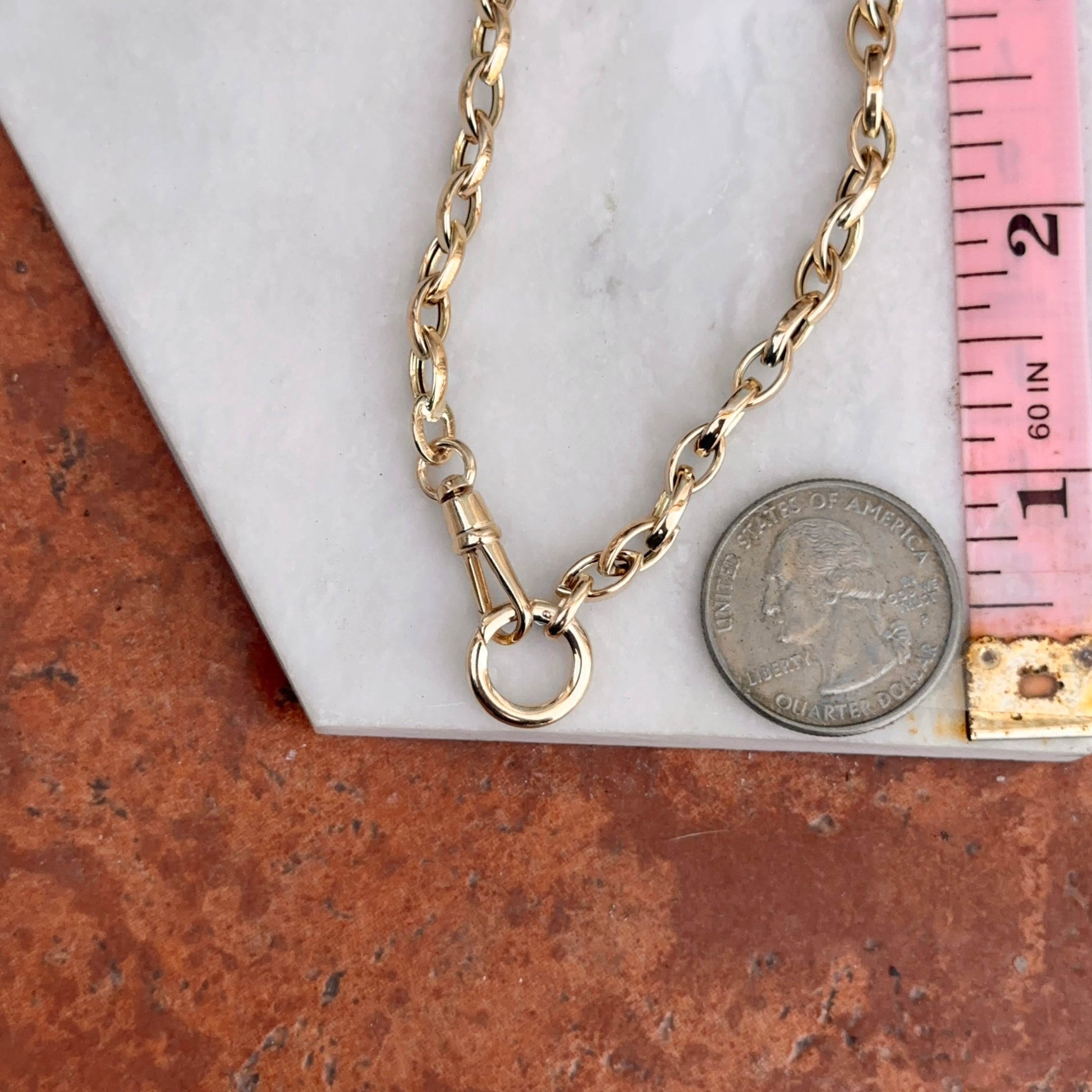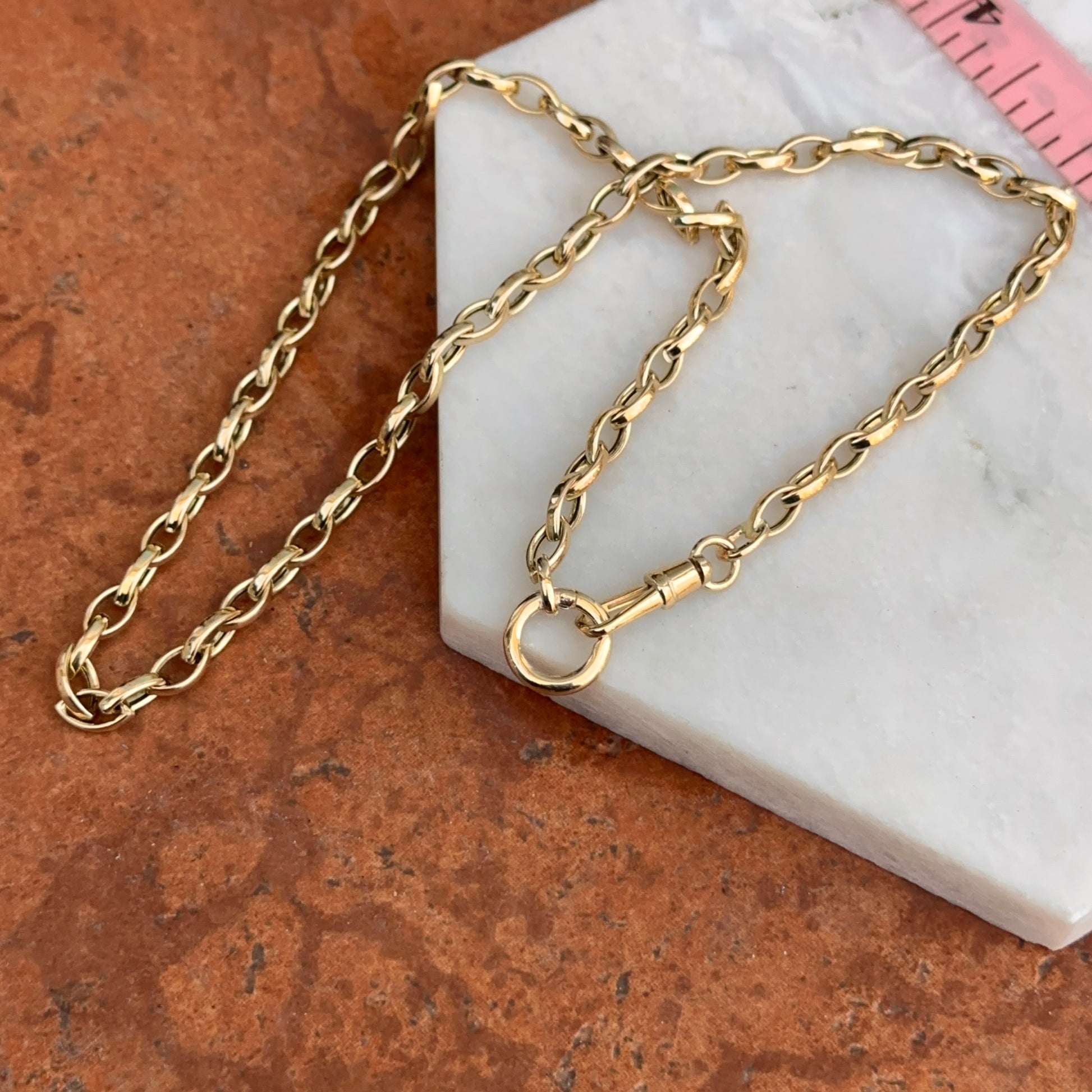 14KT Yellow Gold Oval Chain Swivel Hinged Clasp Charm Hanger Necklace 18"