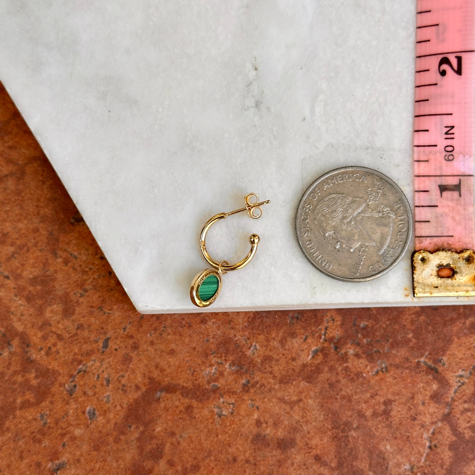 14KT Yellow Gold Oval Green Malachite C-Shape Round Hoop Earrings