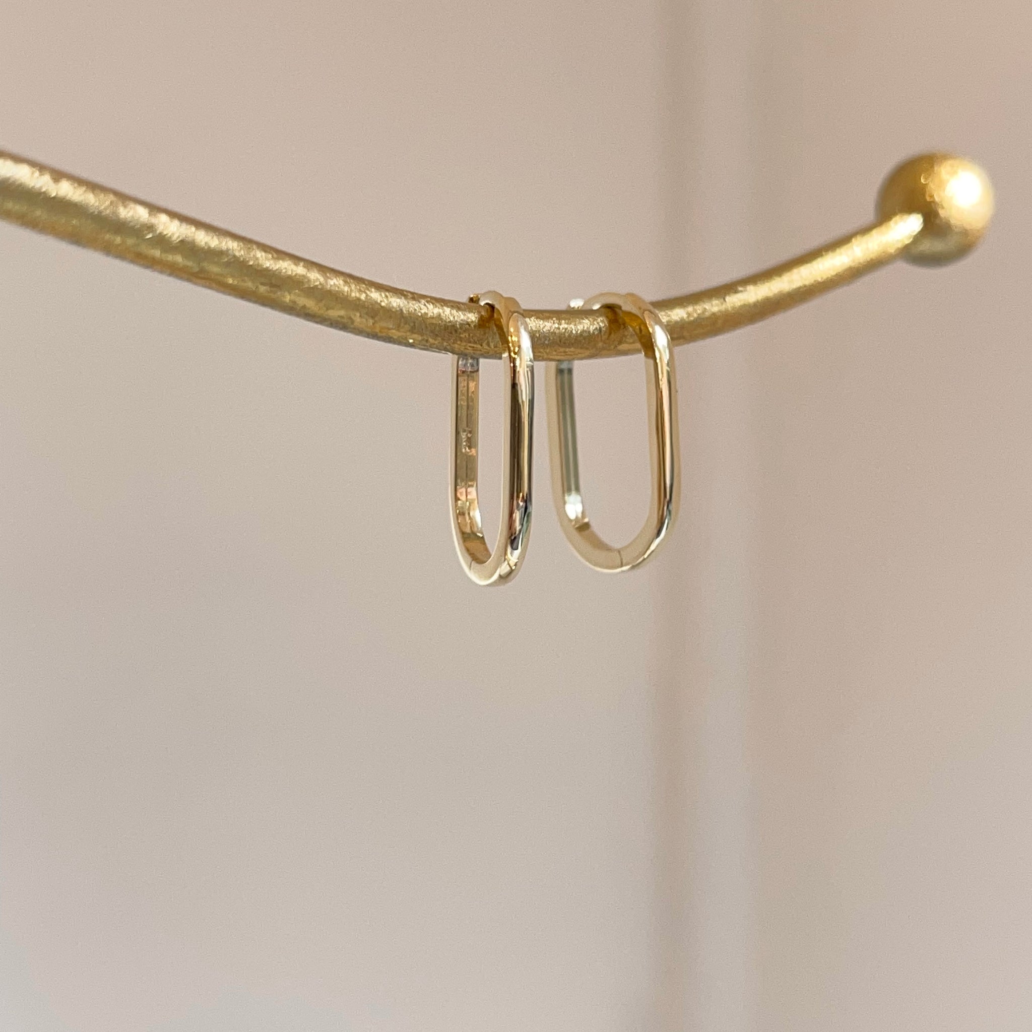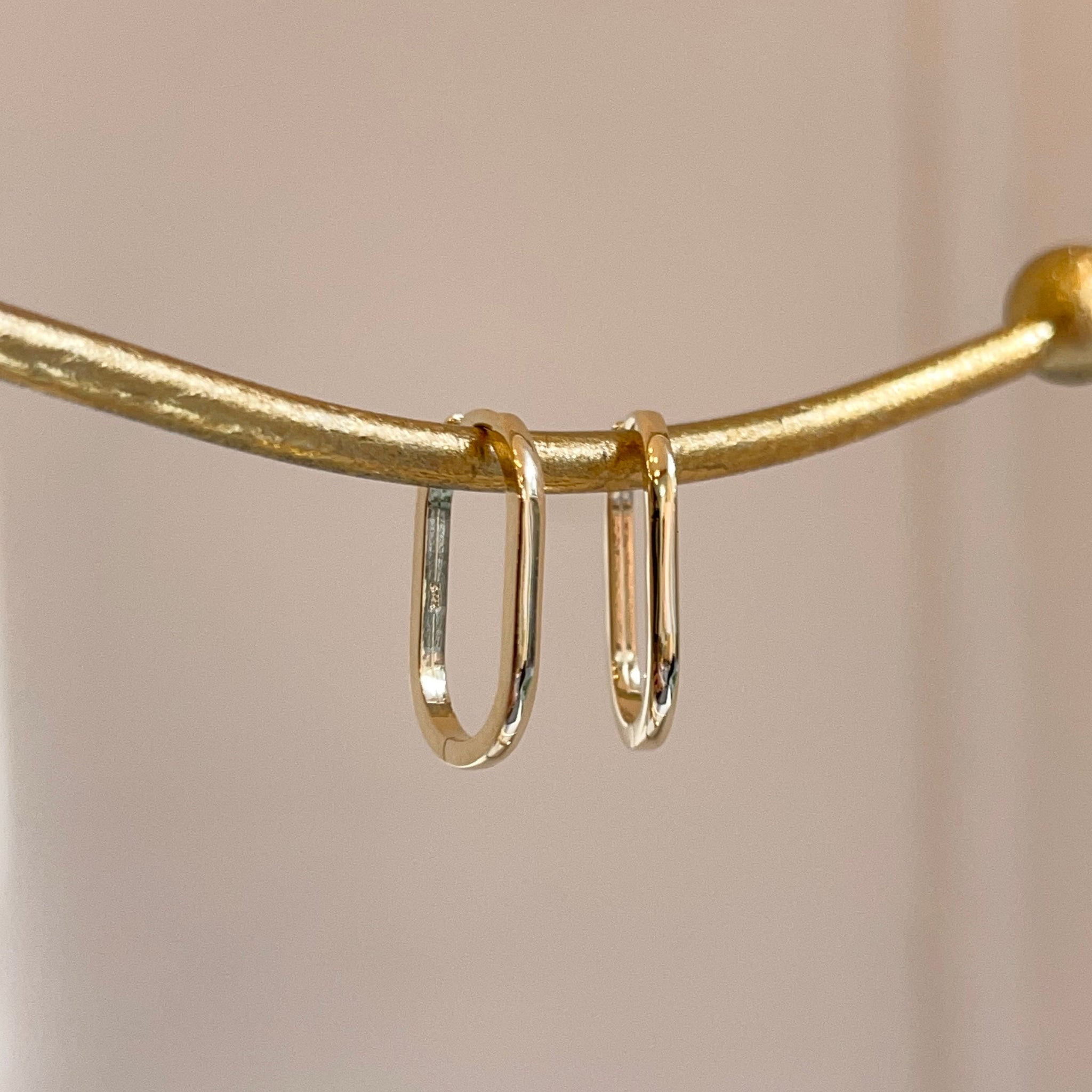 14KT yellow gold oval-shaped huggie hoop earrings. Great, solid hoops for everyday wear!