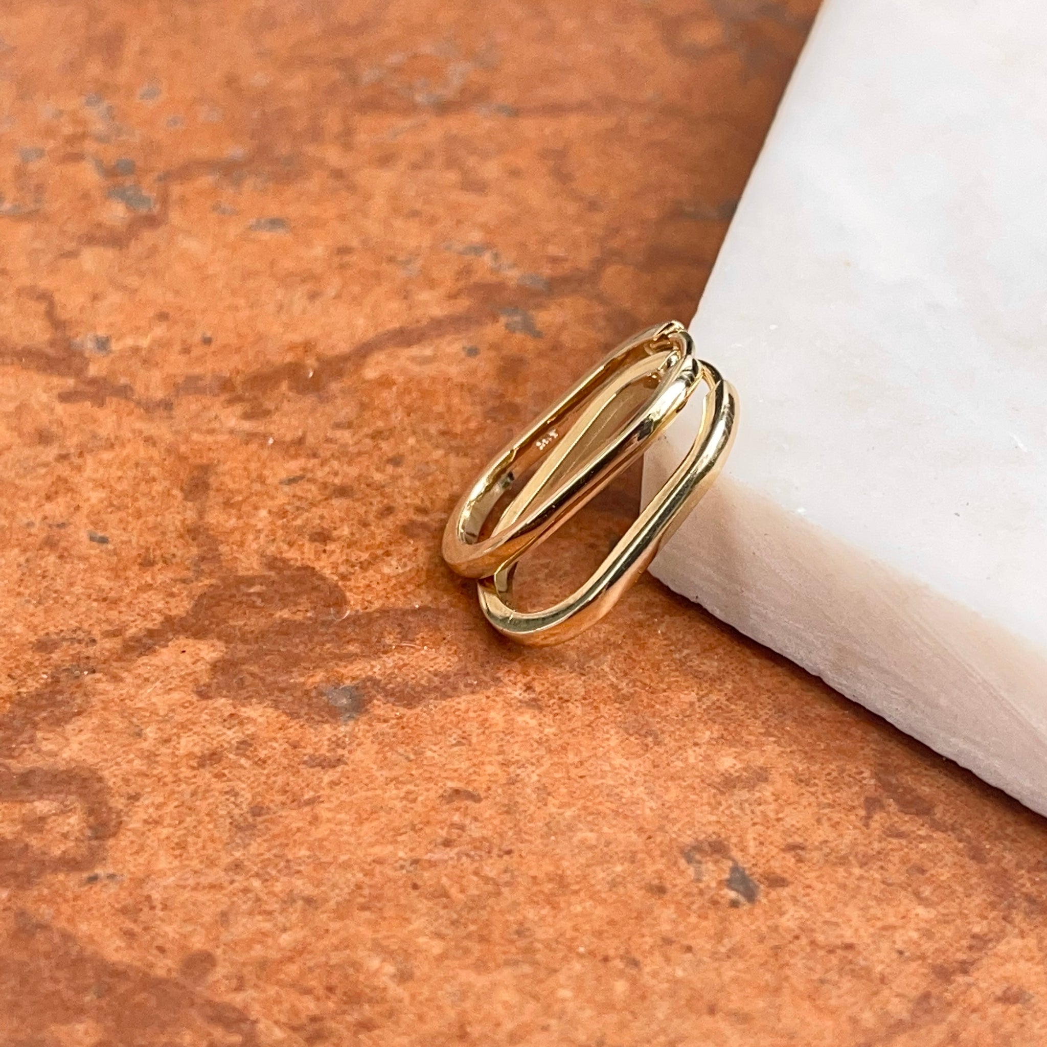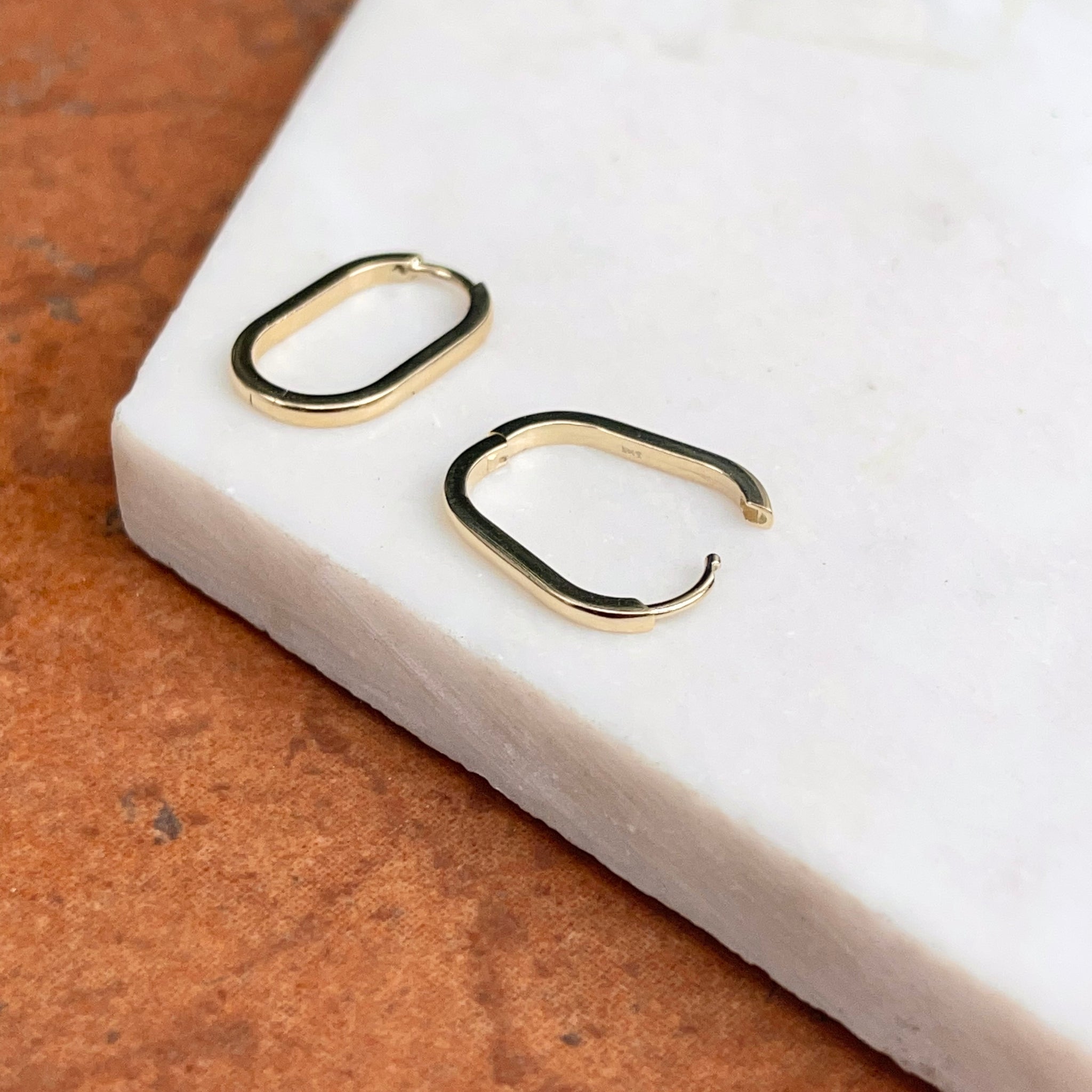 14KT Yellow Gold Oval Solid Huggie Hoop Earrings 20mm