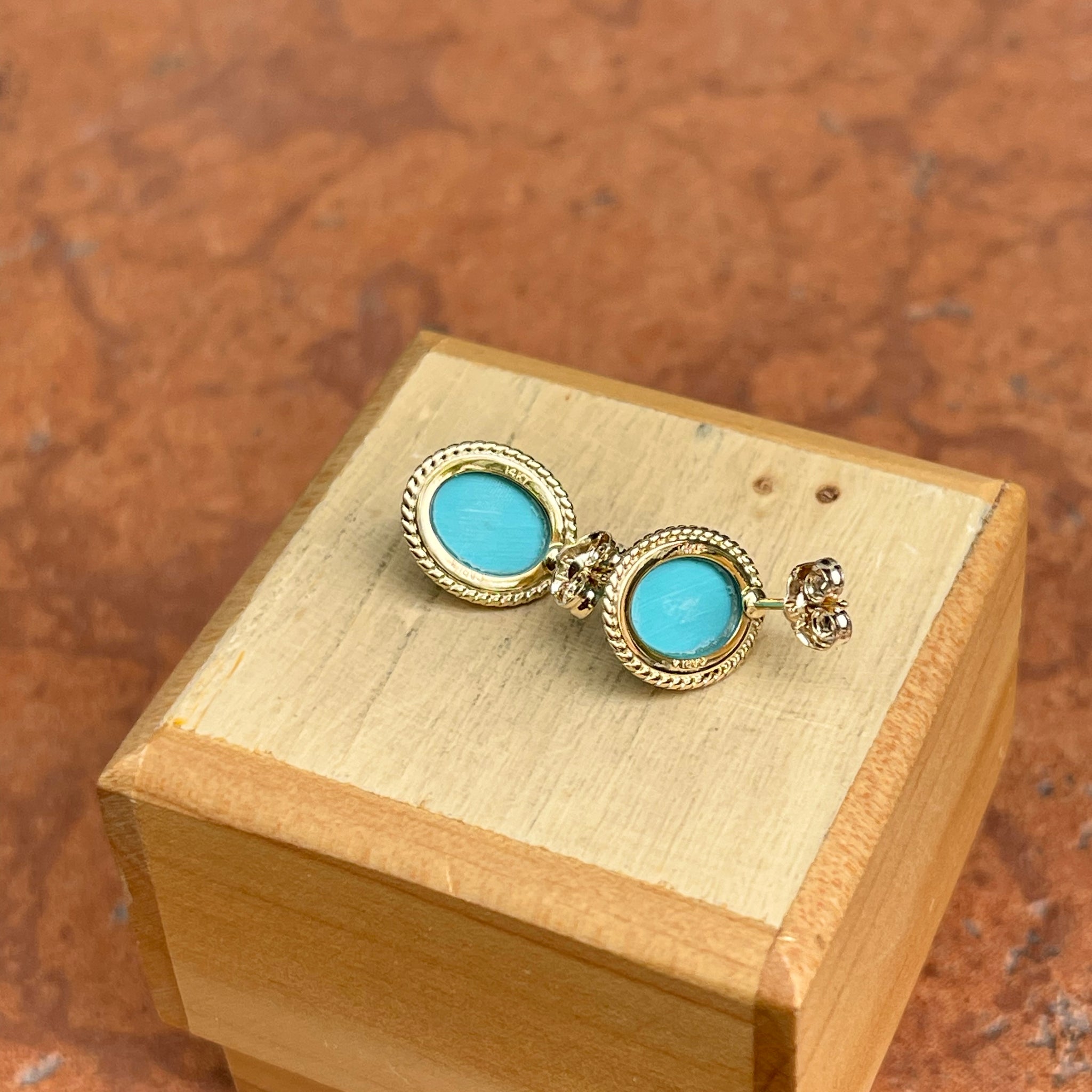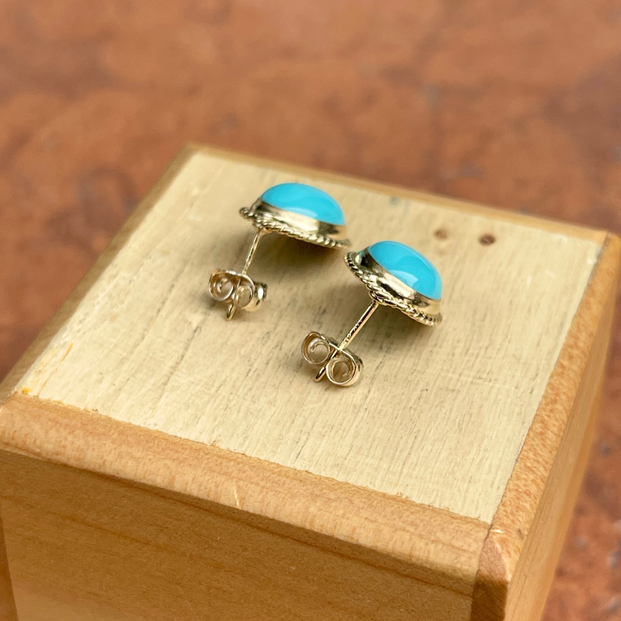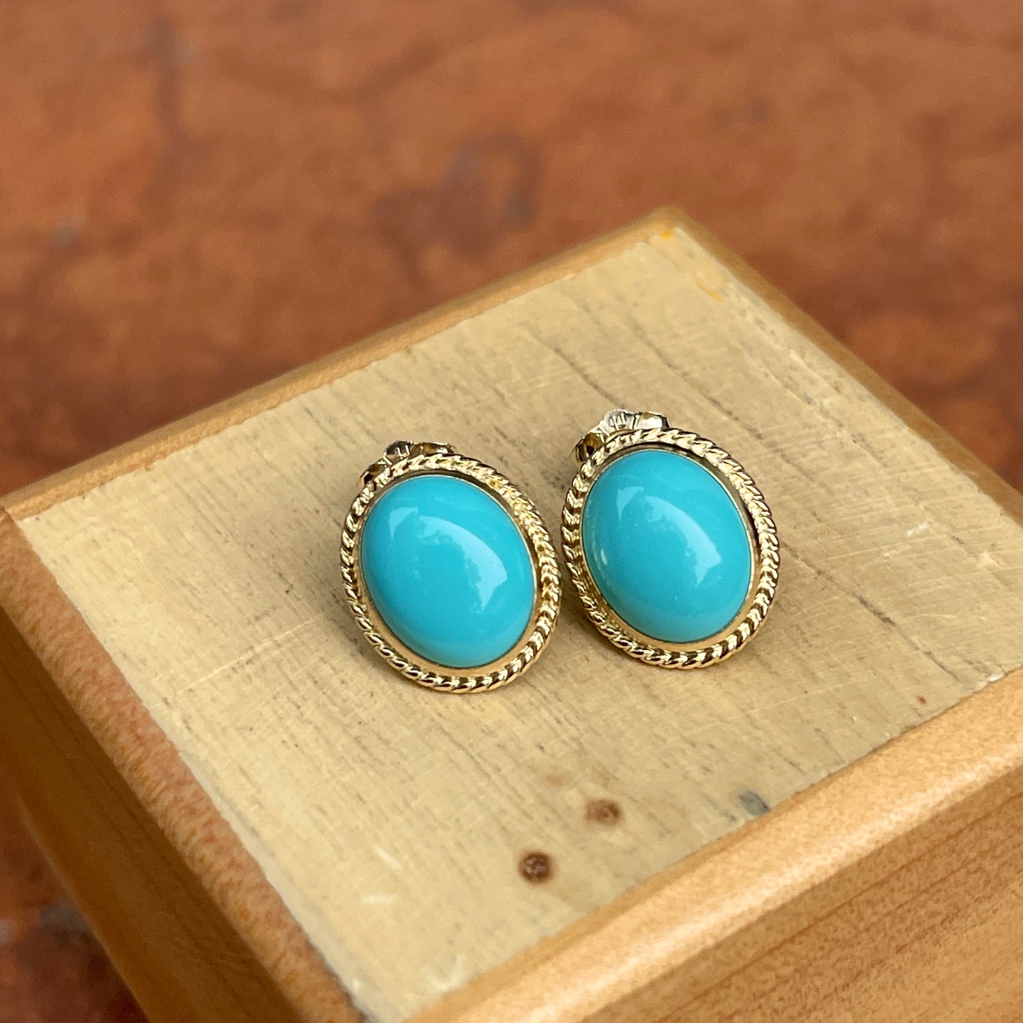 14KT Yellow Gold Oval Turquoise Milgrain Bezel Stud Earrings