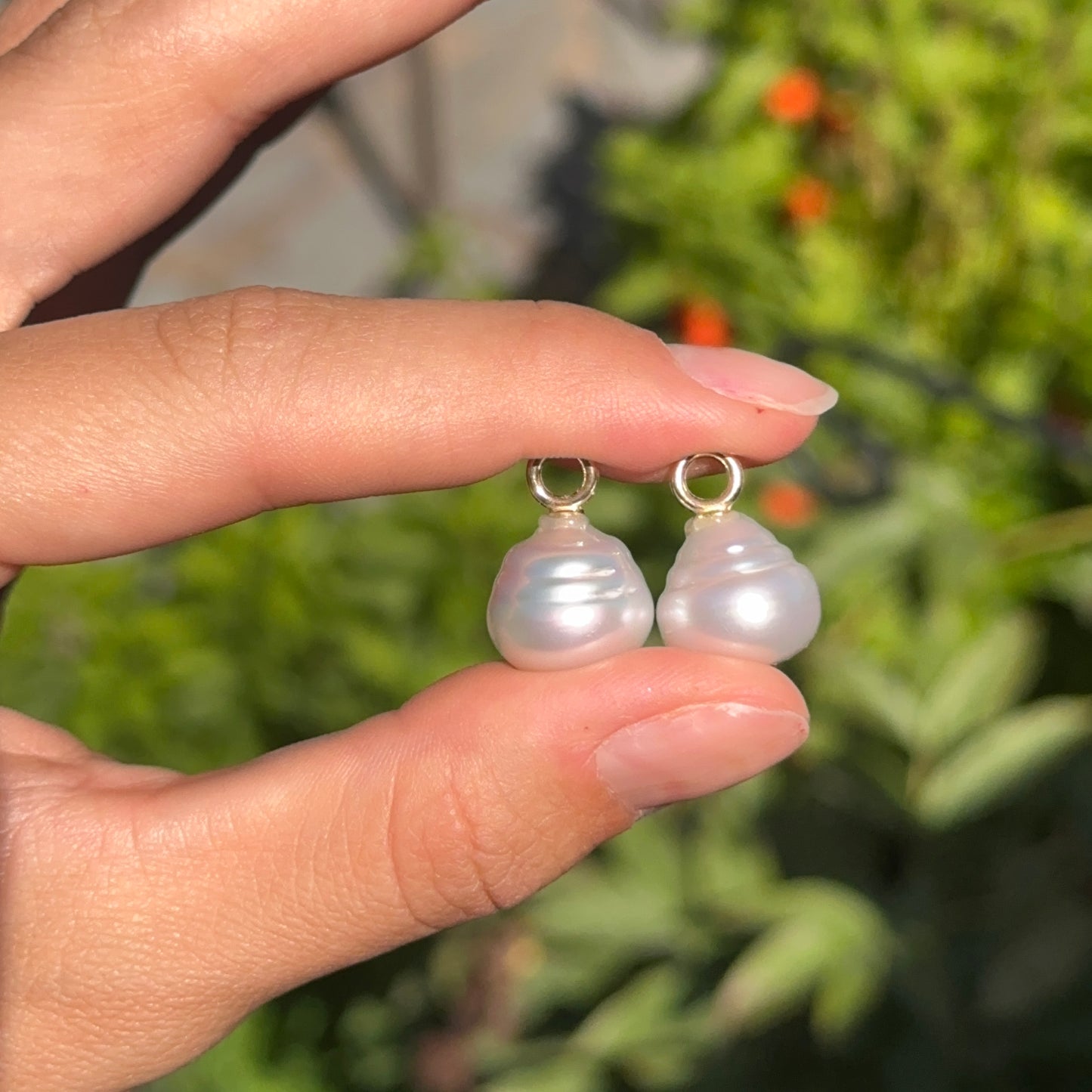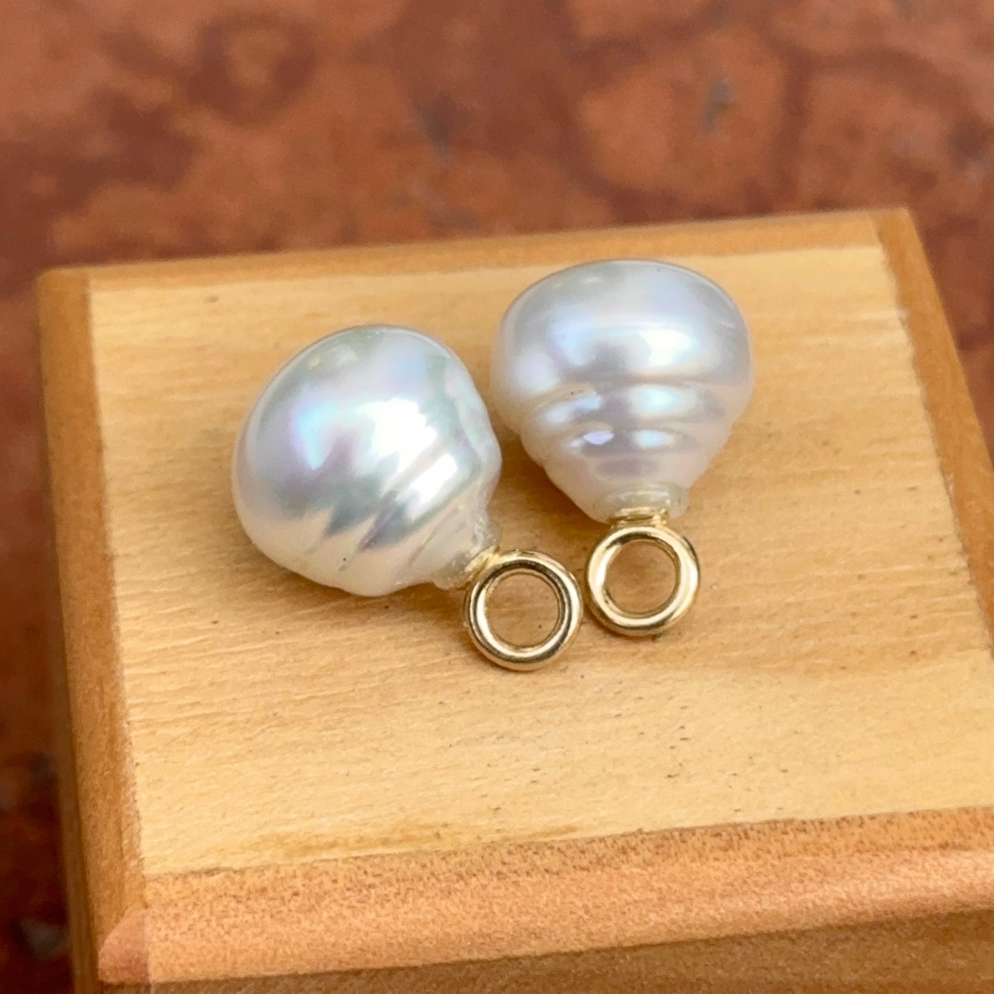 14KT Yellow Gold Paspaley Pearl 13mm Circle Fine Quality Earring Charms