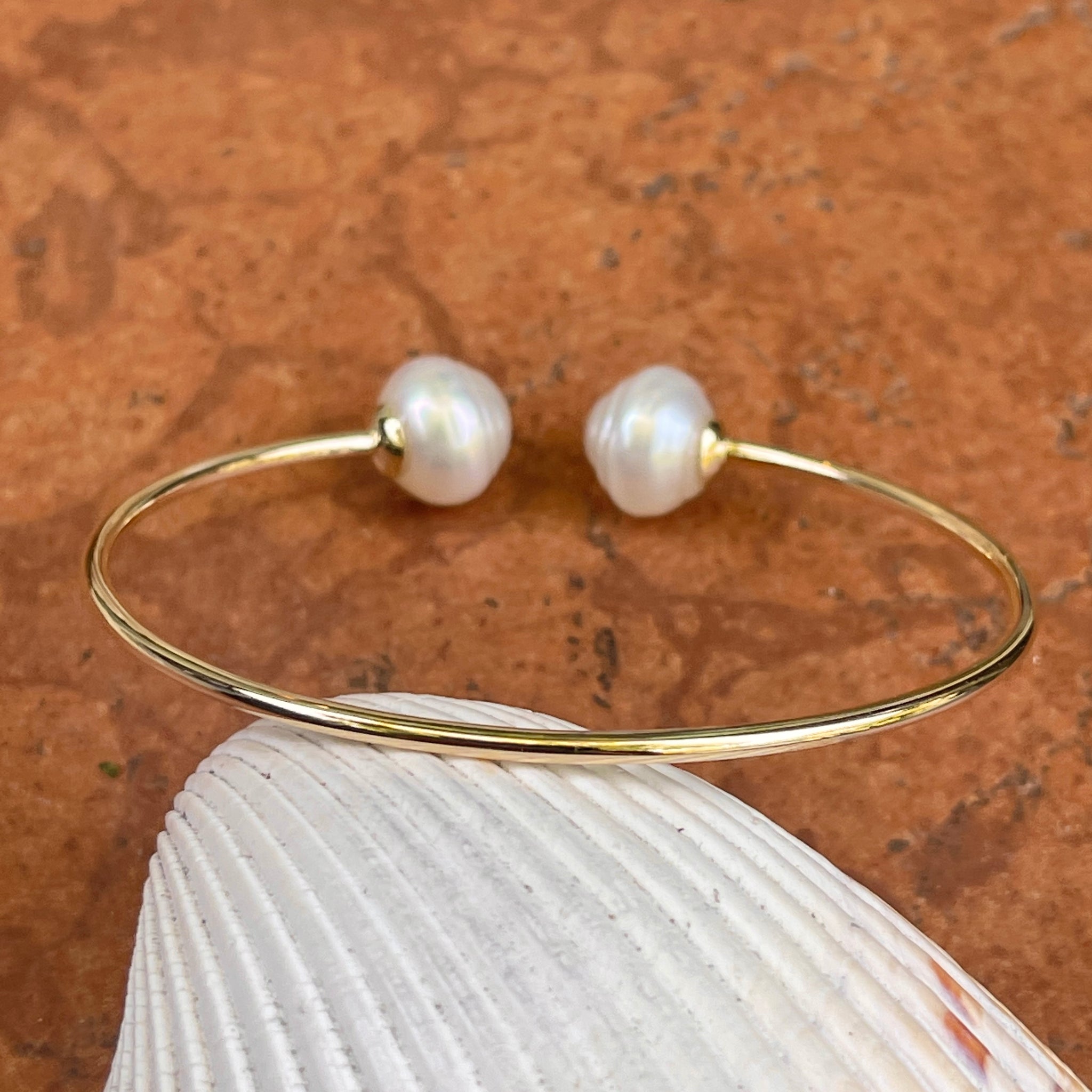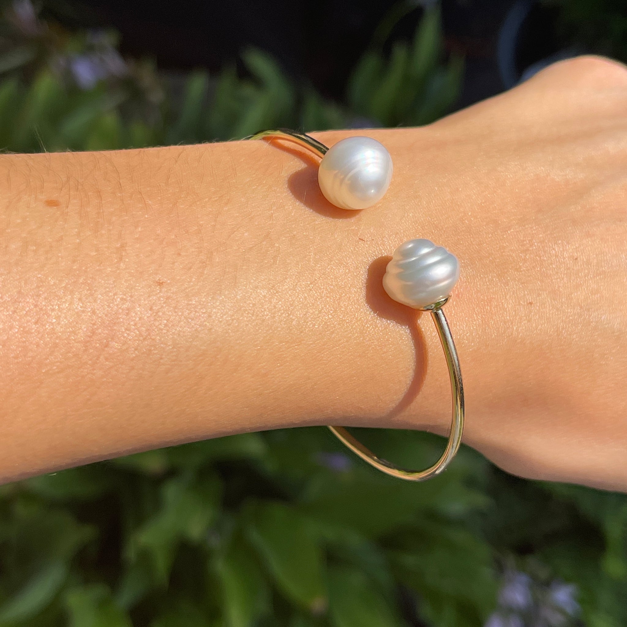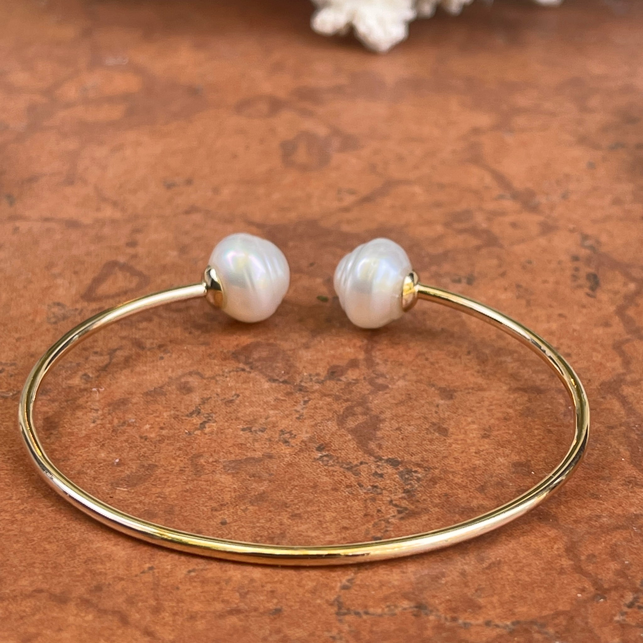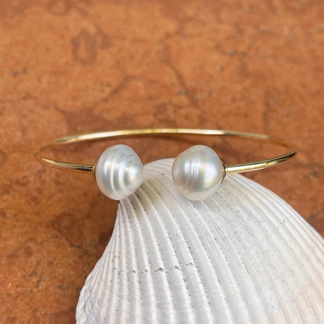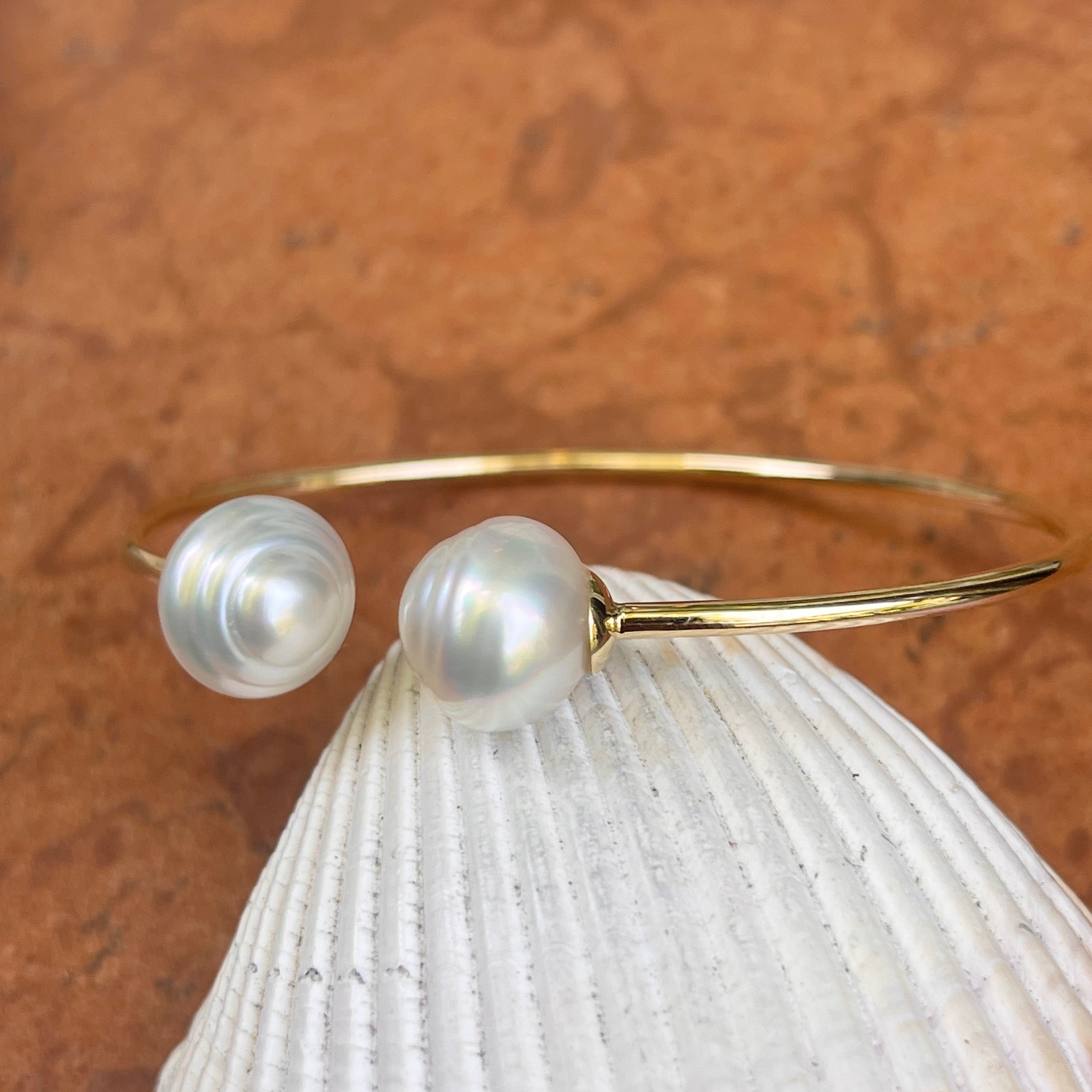 14KT Yellow Gold Paspaley South Sea Pearl Open Bangle Bracelet