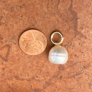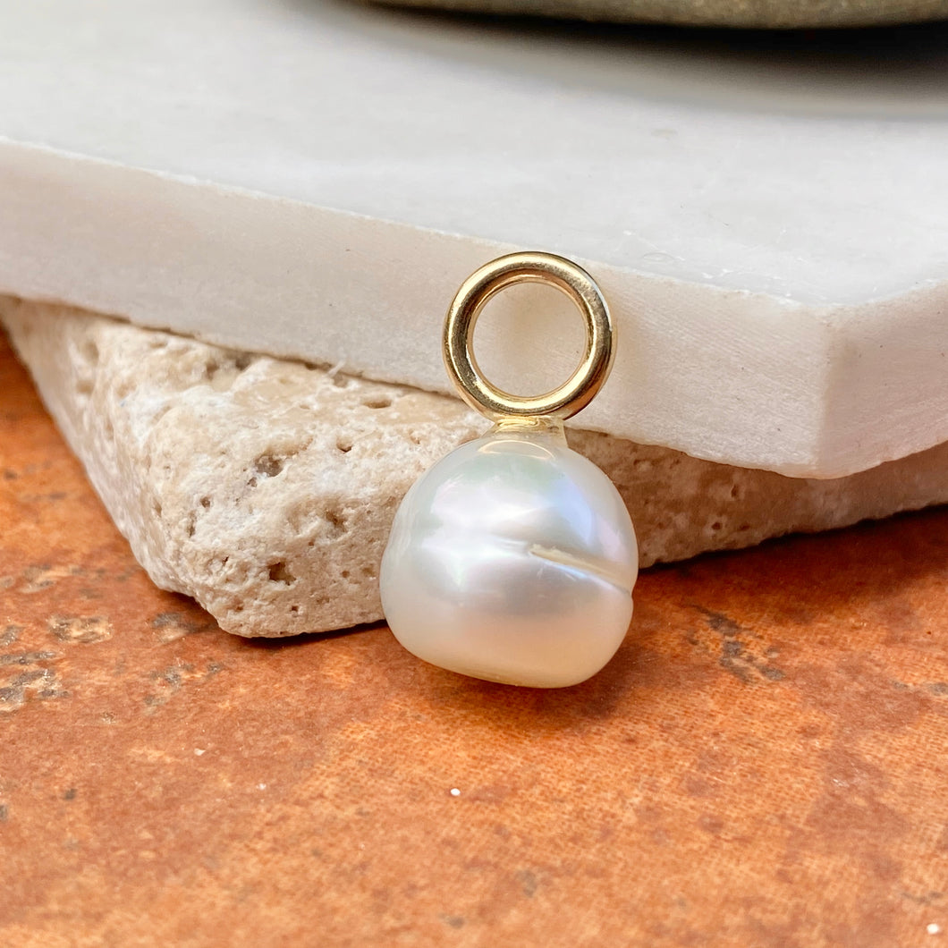 Polished 14KT yellow gold Paspaley South Sea Pearl simple design pendant slide. Simple, clean, modern design that never goes out of style! Bail is perfect size for adding to hoop earrings, for earring charms (2 would need to be purchased). Neck wire shown is sold separately.