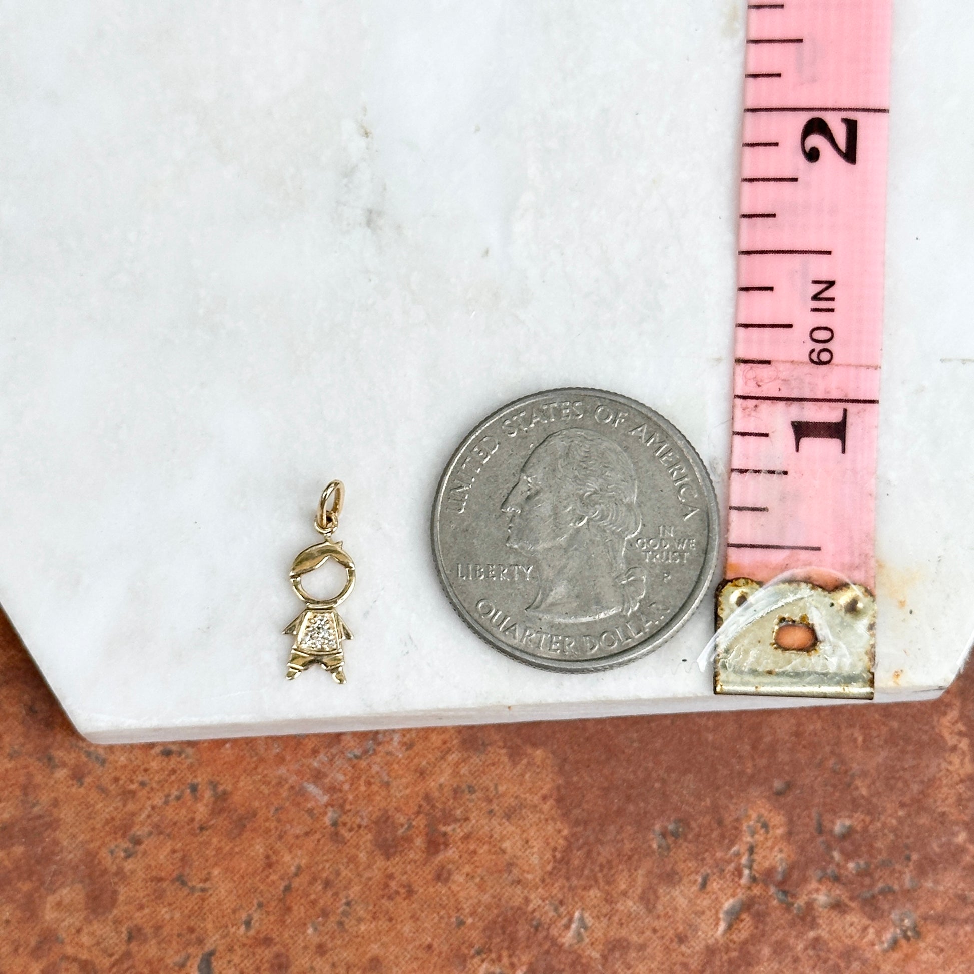 14KT Yellow Gold Pave Diamond Little Boy Pendant Charm 12mm