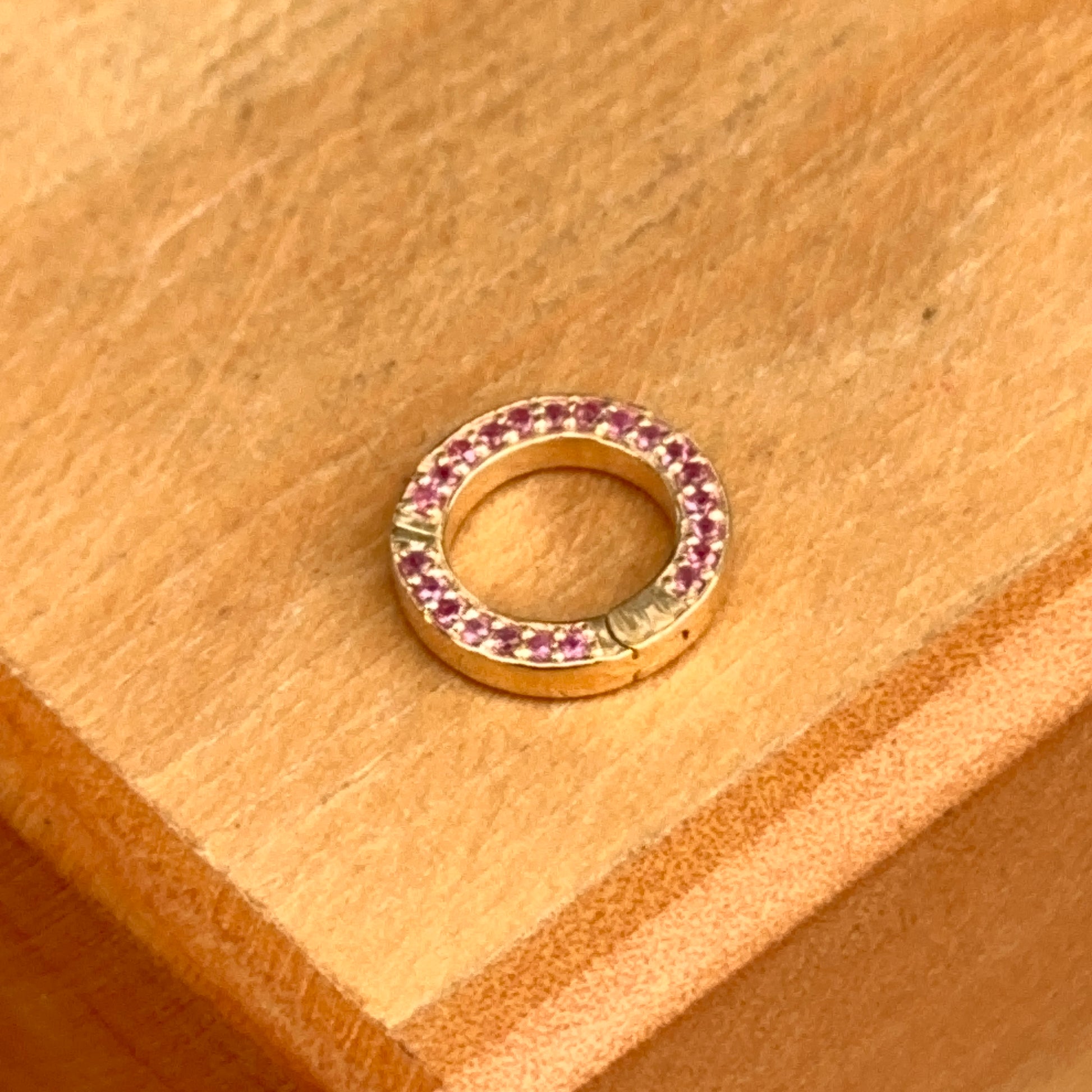14KT Yellow Gold Pave Ruby Round Pendant Hanger/ Lock / Connecter