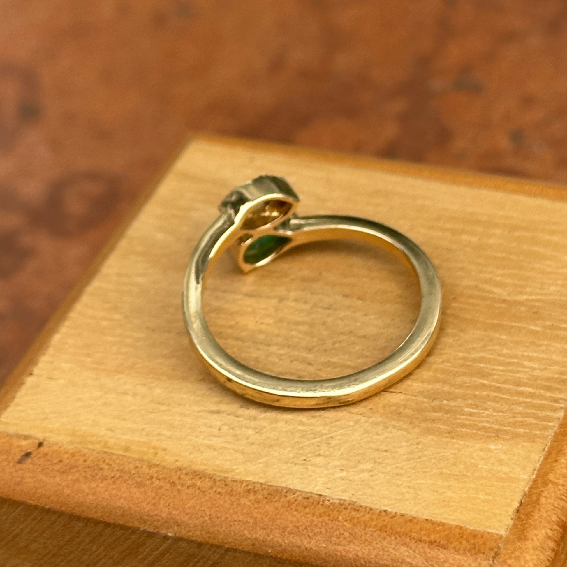 14KT Yellow Gold Pear Emerald + Baguette Diamond Bypass Ring