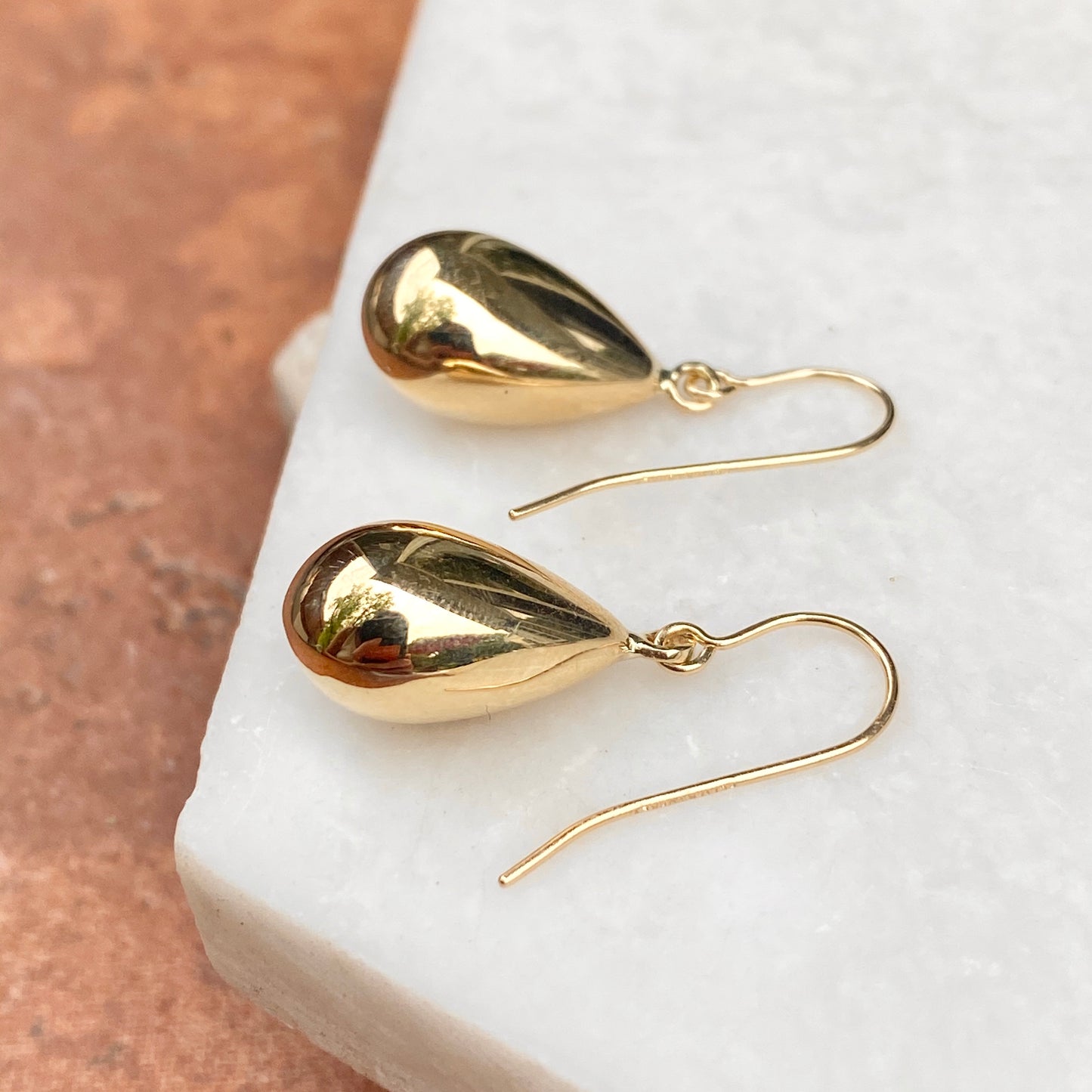 14KT Yellow Gold Polished 3D Teardrop Ear Wire Dangle Earrings