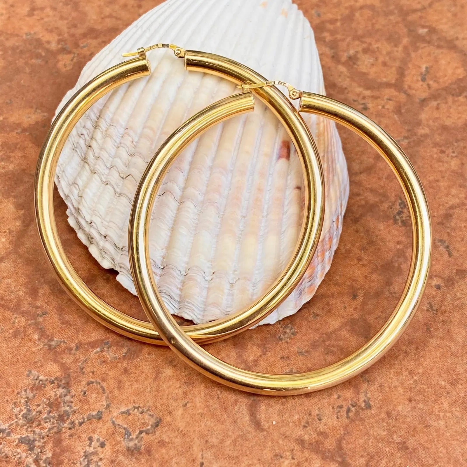 14KT Yellow Gold Large Hollow Tube Hoop Earrings 60mm