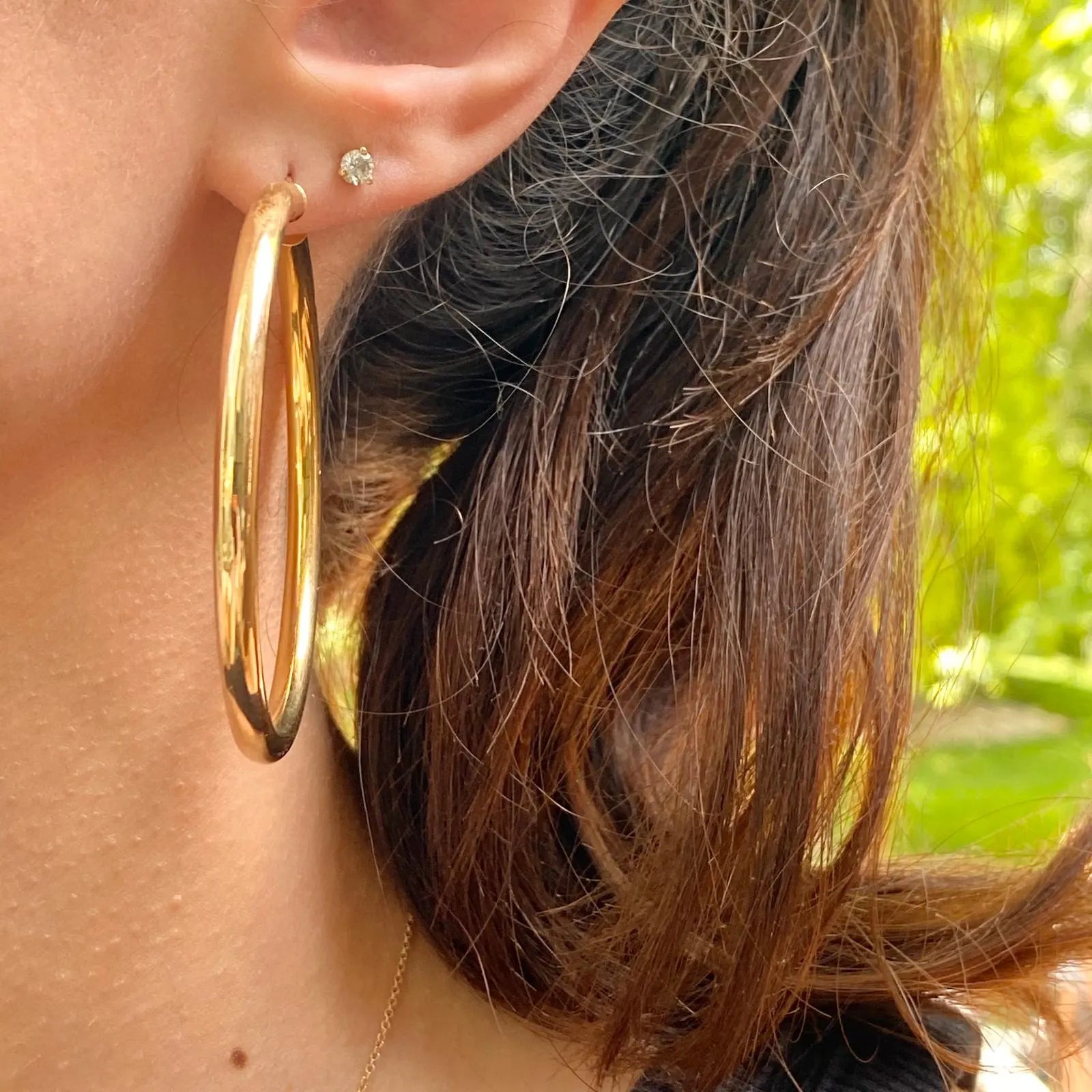 High Polished Finish, Large, Round, 14KT Yellow Gold Hollow Tube Hoop Earrings