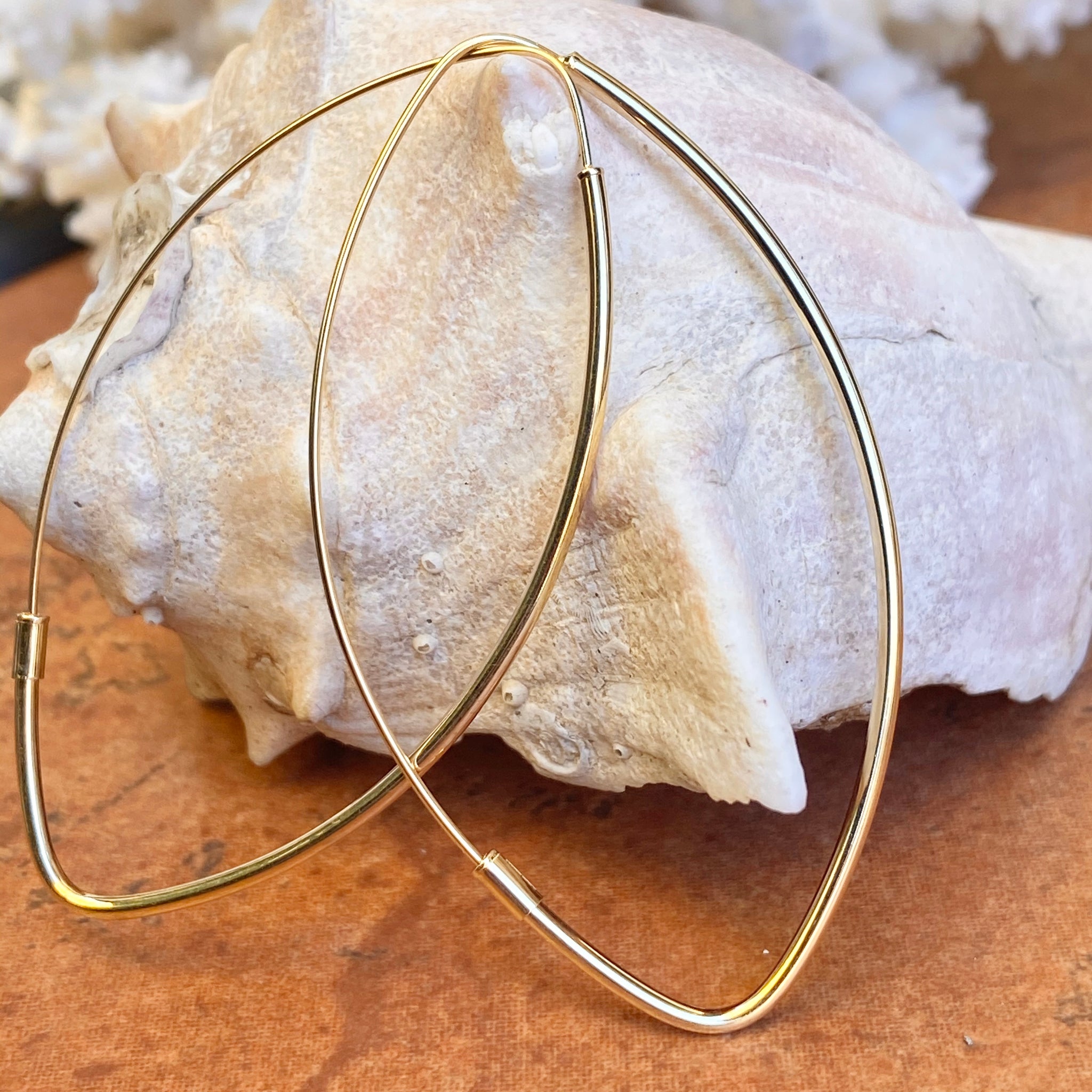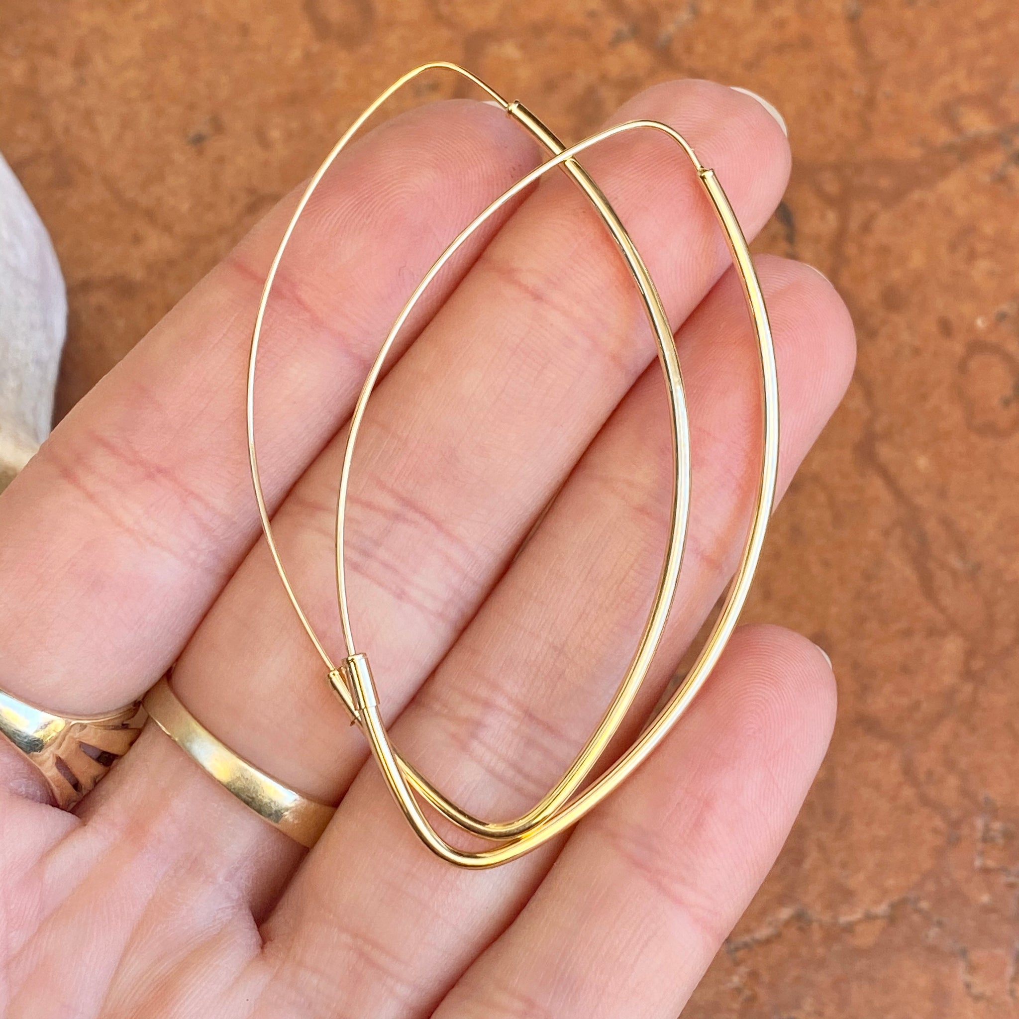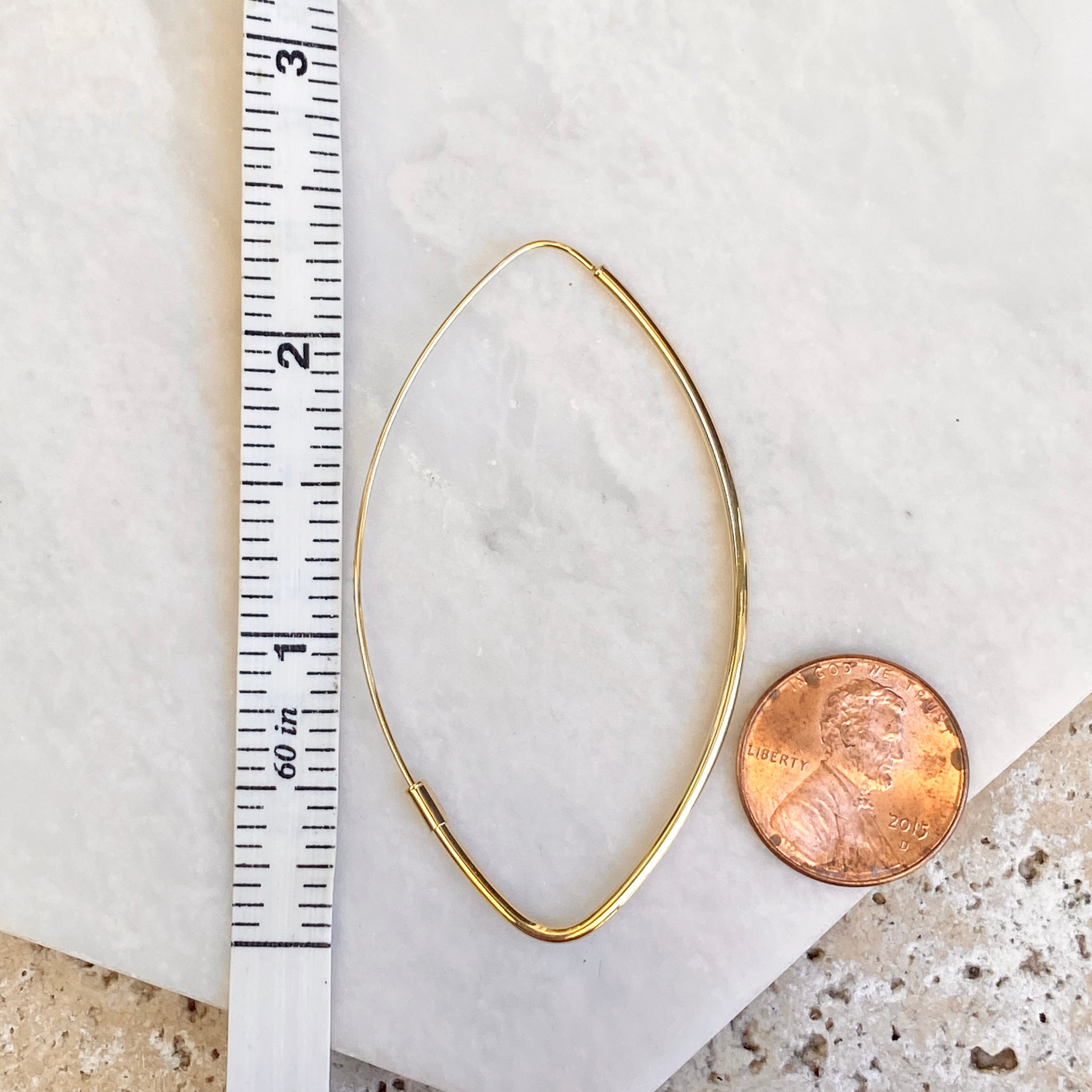 14KT Yellow Gold Polished Marquise Threader Hoop Earrings 59mm