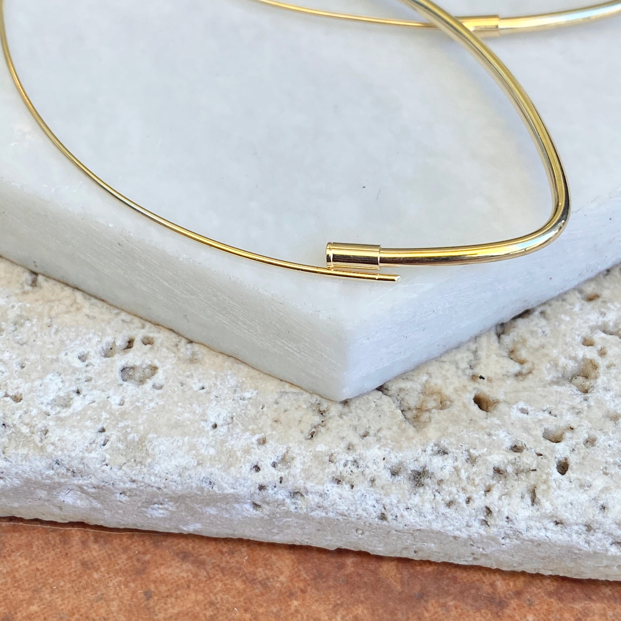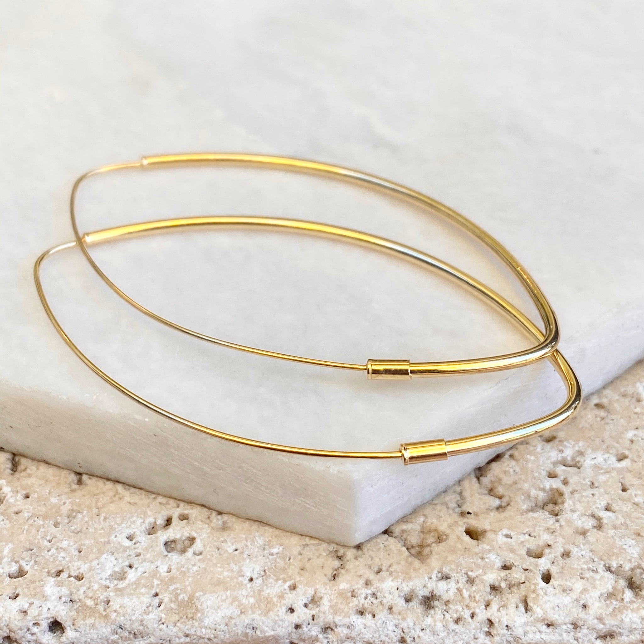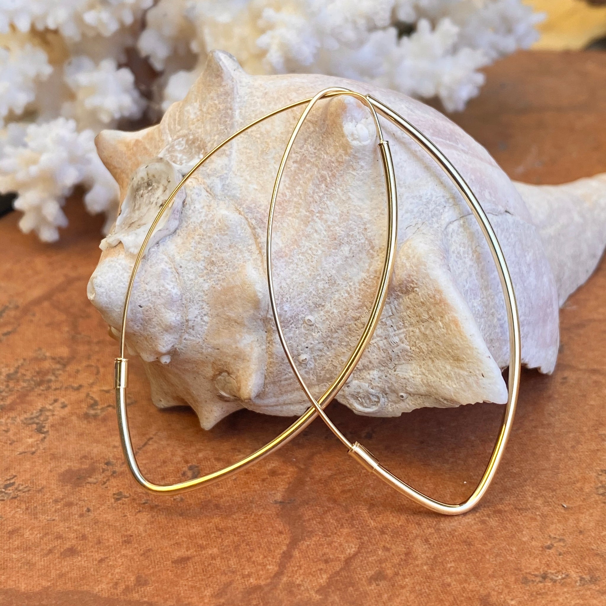 14KT Yellow Gold Polished Marquise Threader Hoop Earrings 59mm