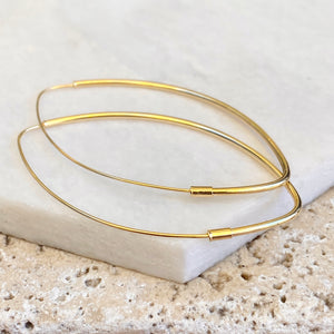 Polished 14KT yellow gold marquise threader hoop earrings. Gently pull the hoop open to open or closed. These are great hoops for DIY-ers for adding on your own charms.