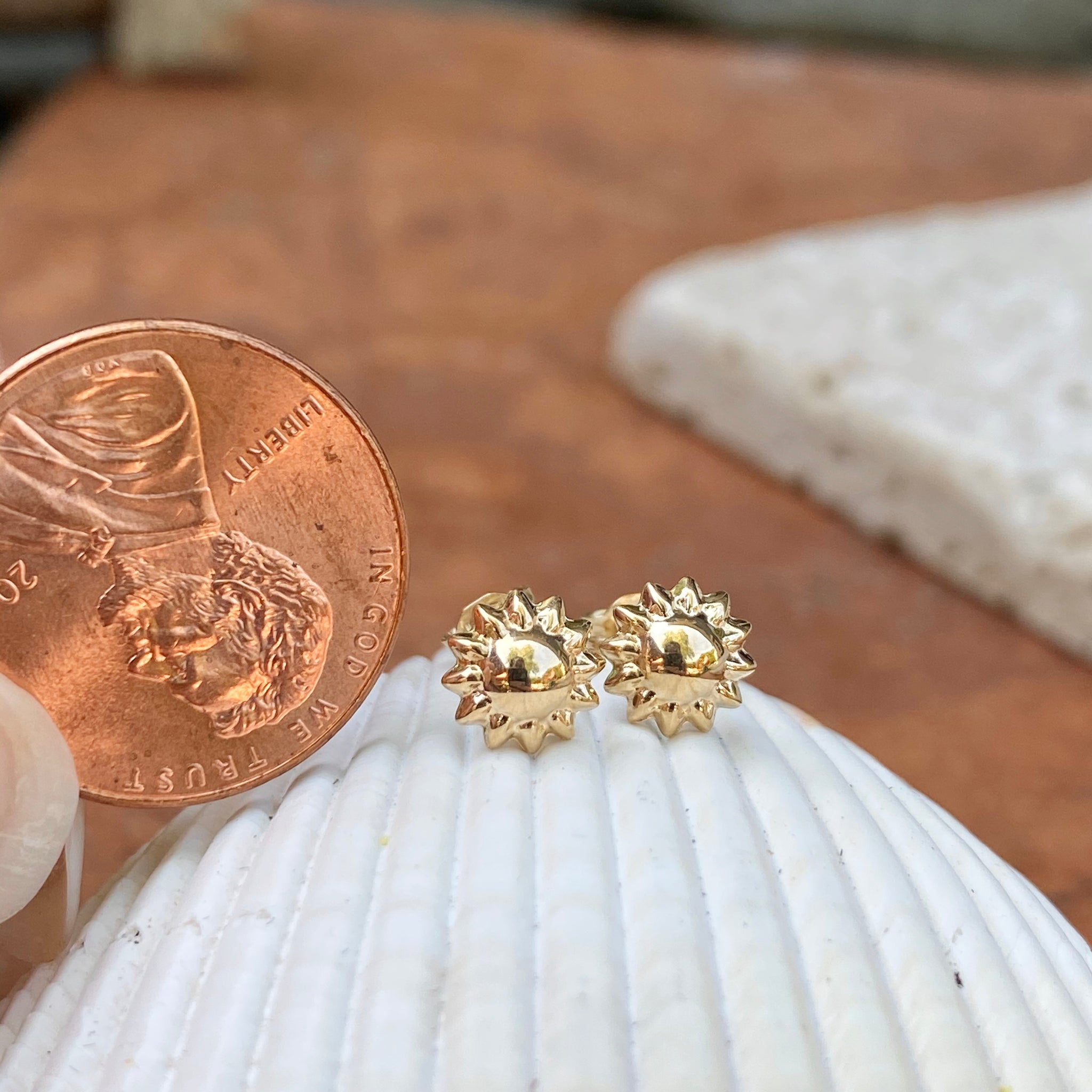 Polished 14KT yellow gold mini sunflower post stud earrings. Itty bitty stud earrings that add a little sparkle to the ears!