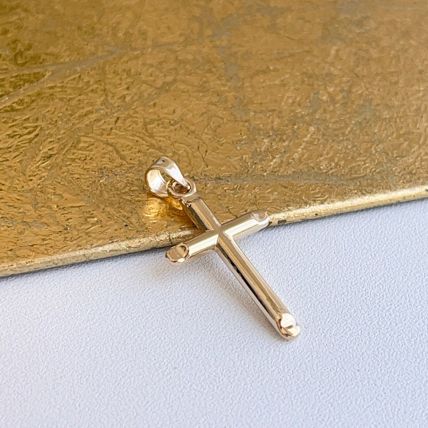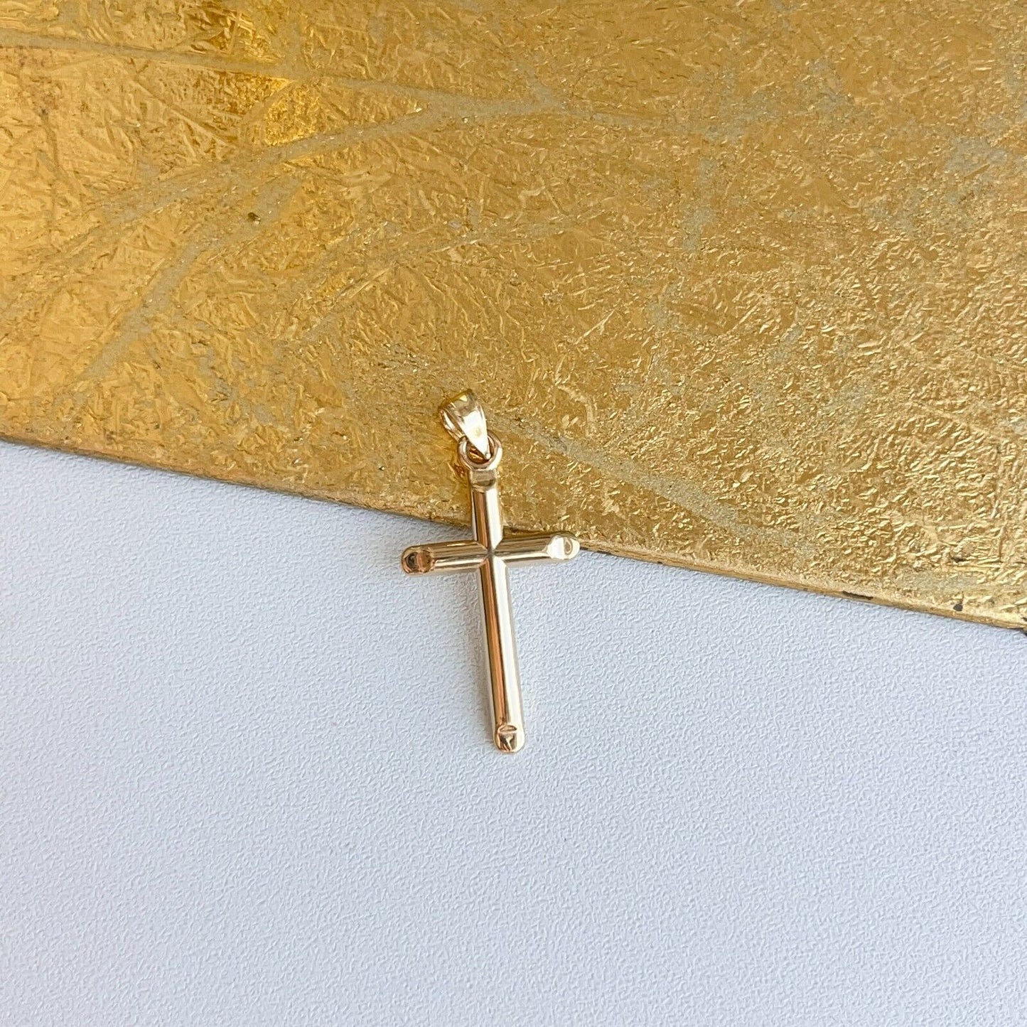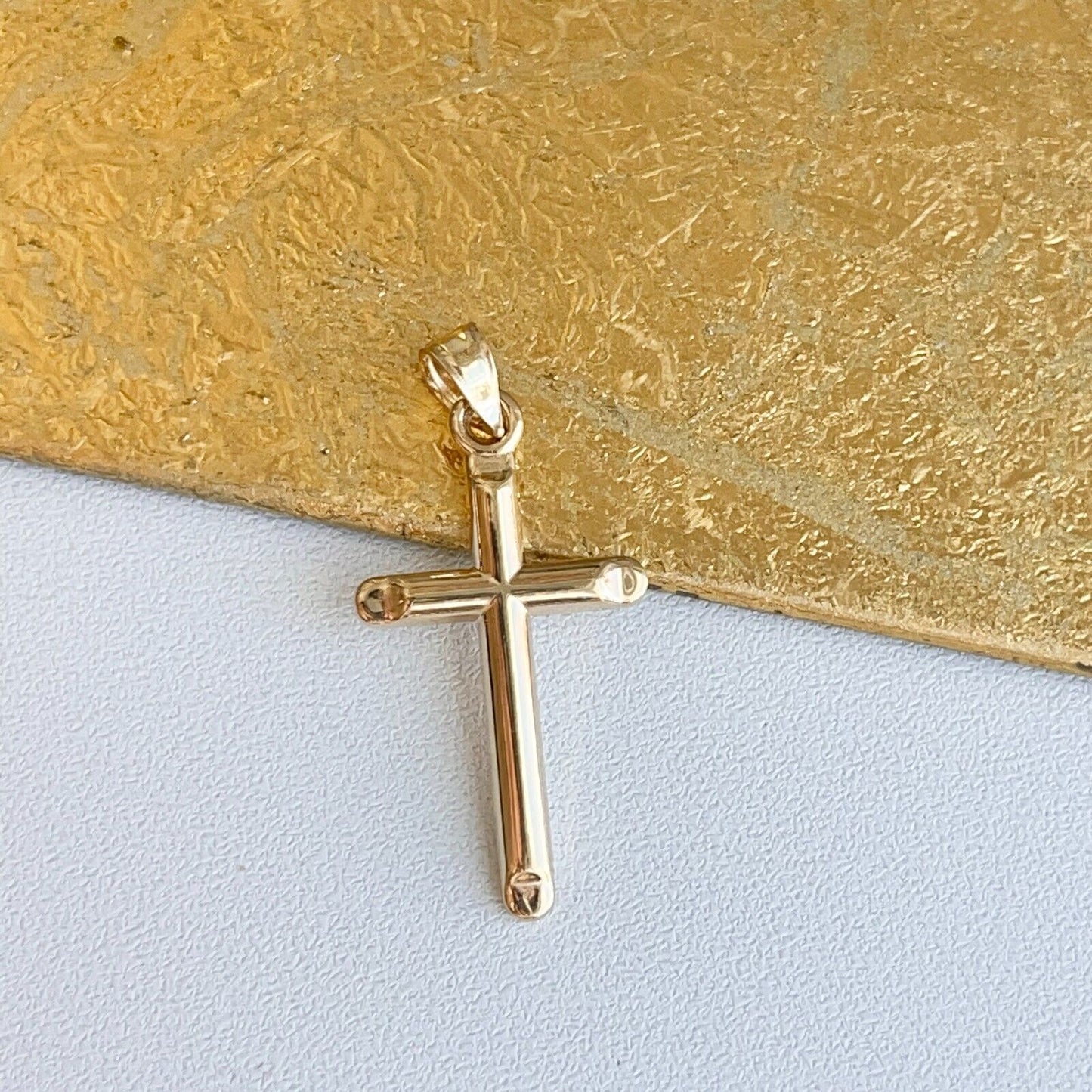 14KT Yellow Gold Polished-Finish Plain Cross Pendant Charm with Pinched Ends