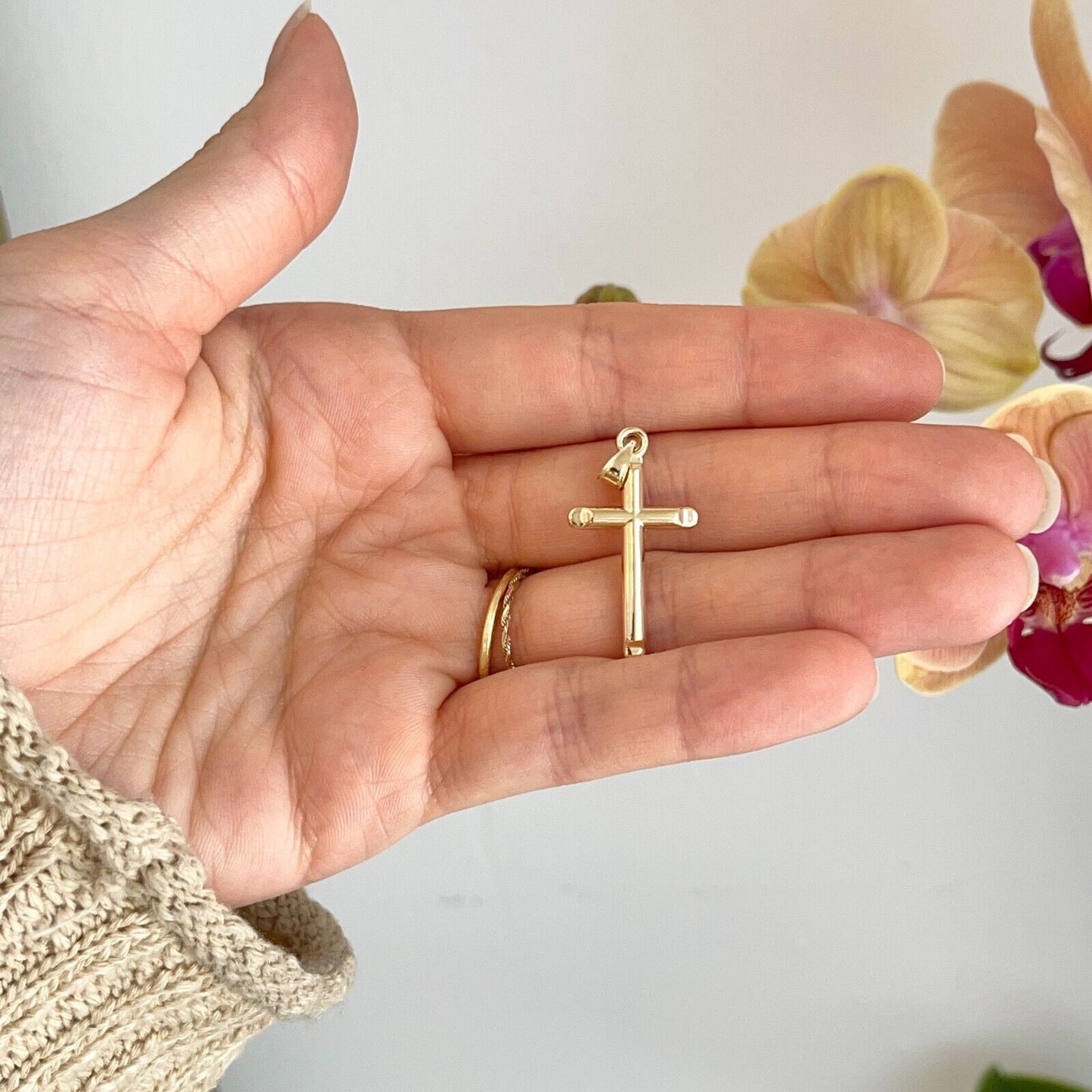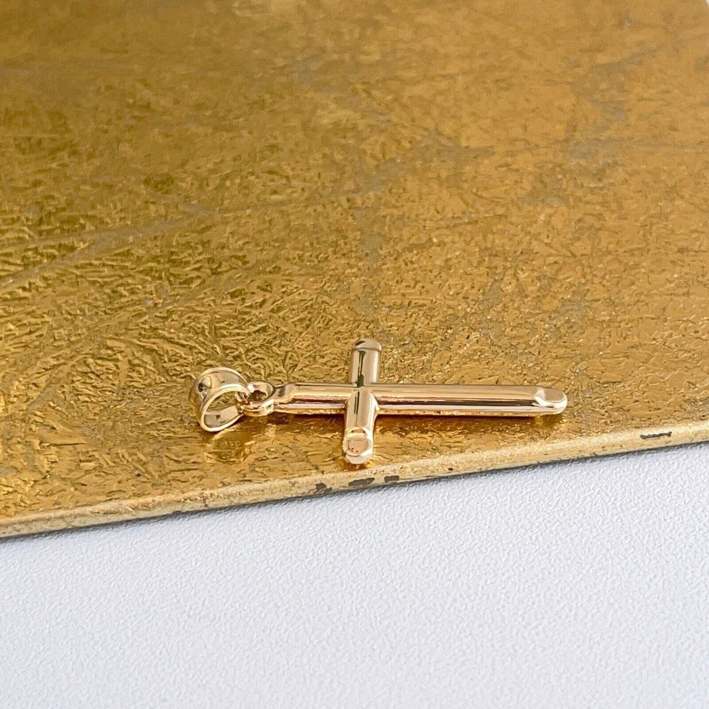 14KT Yellow Gold Polished Plain Cross Pendant Charm