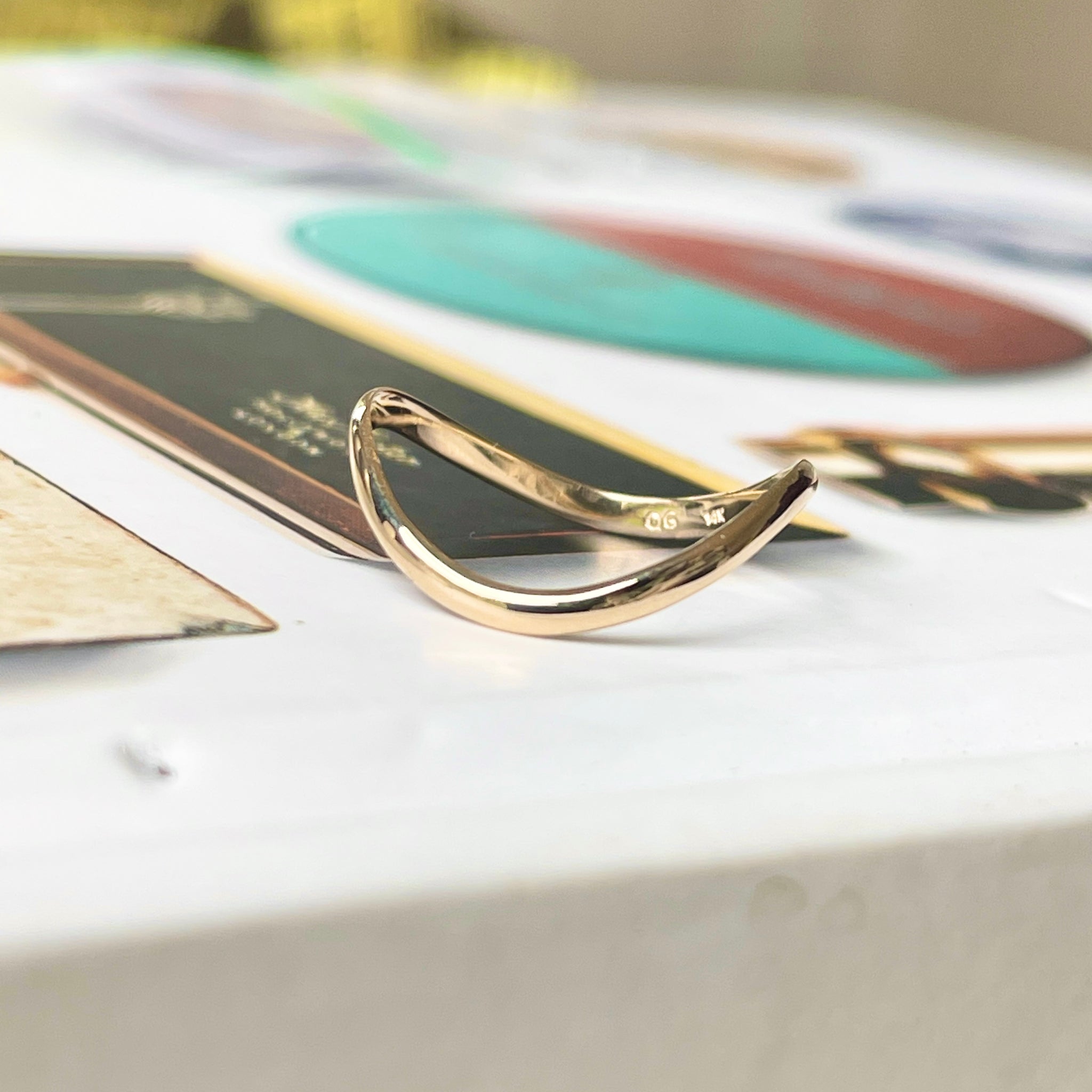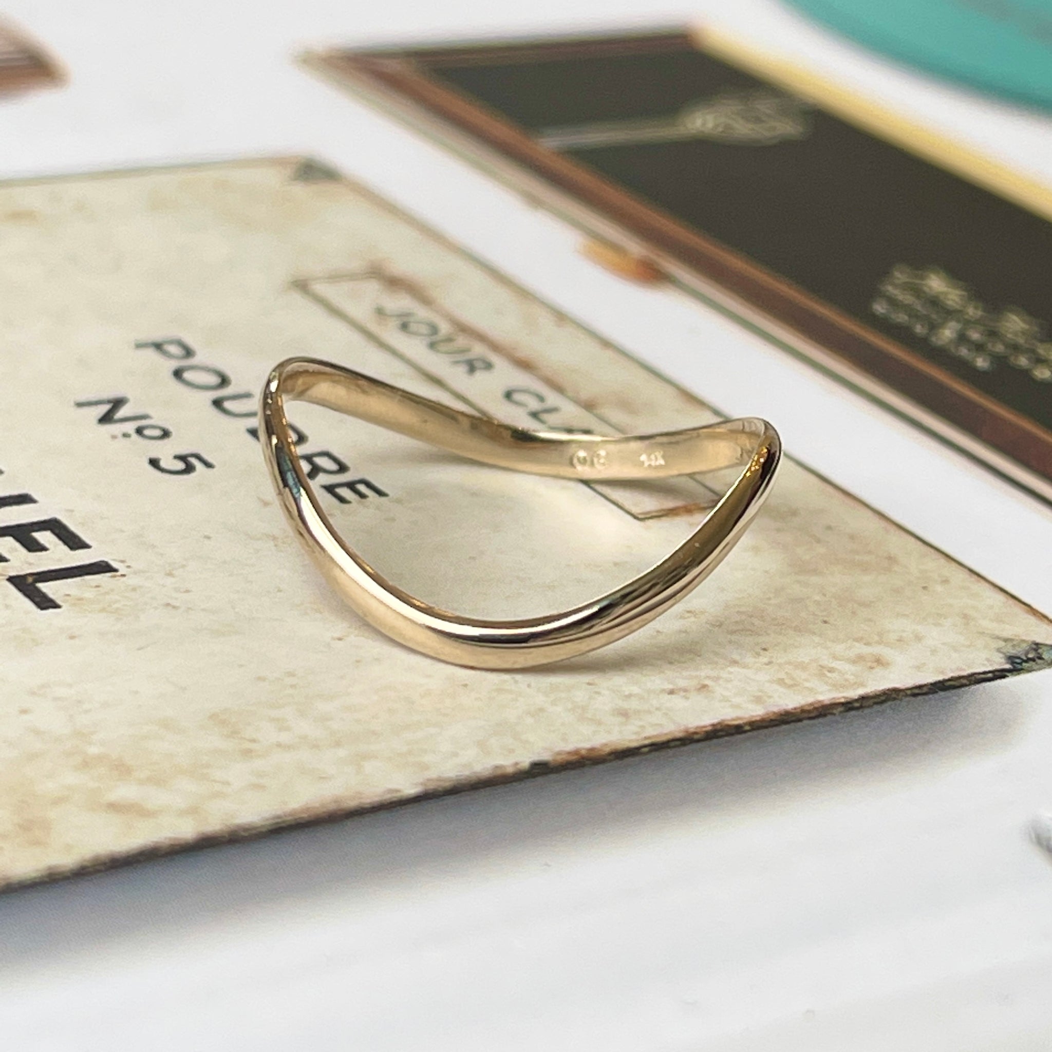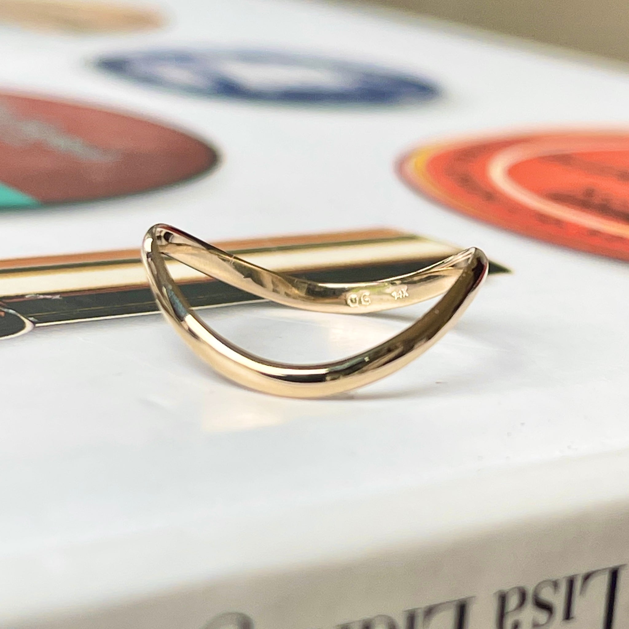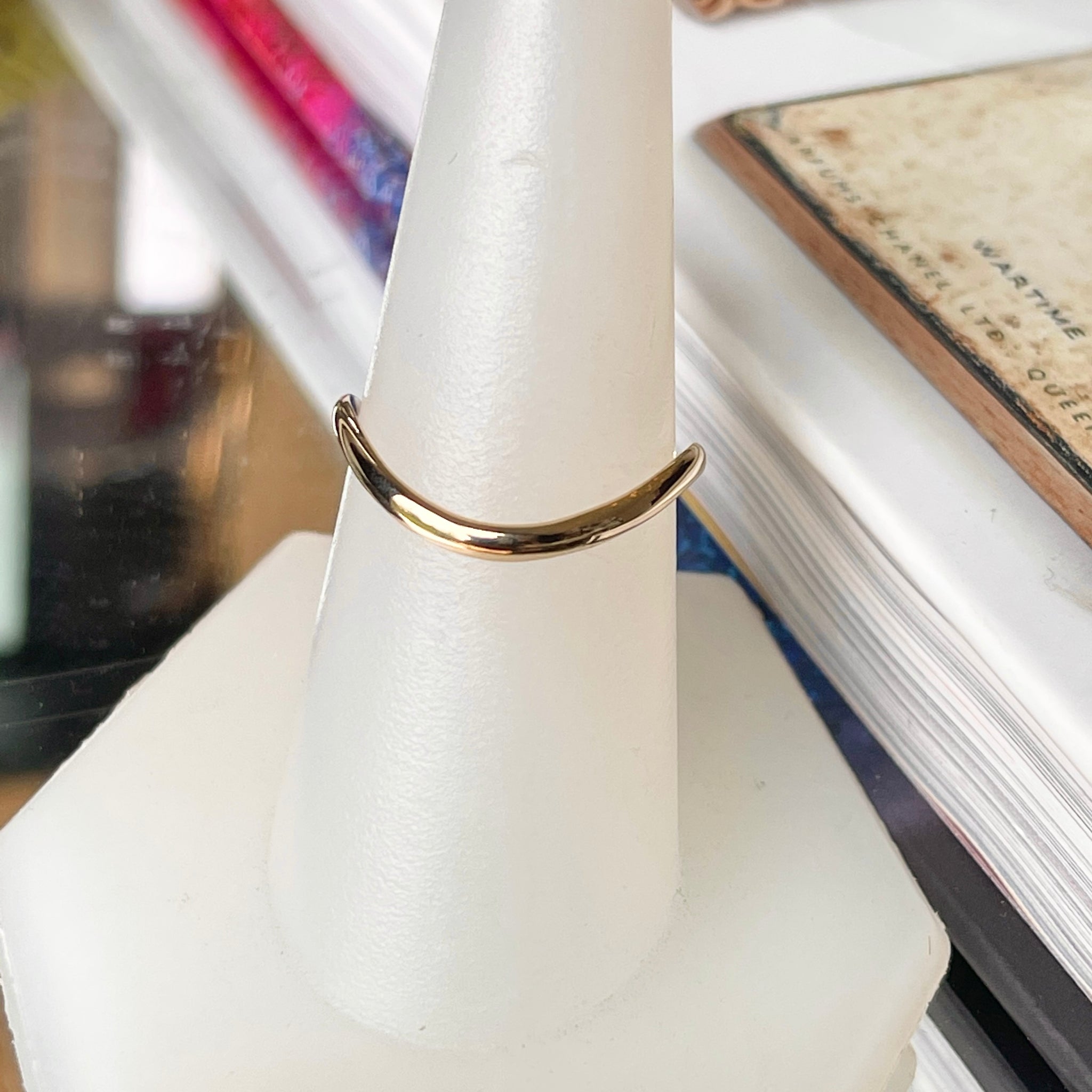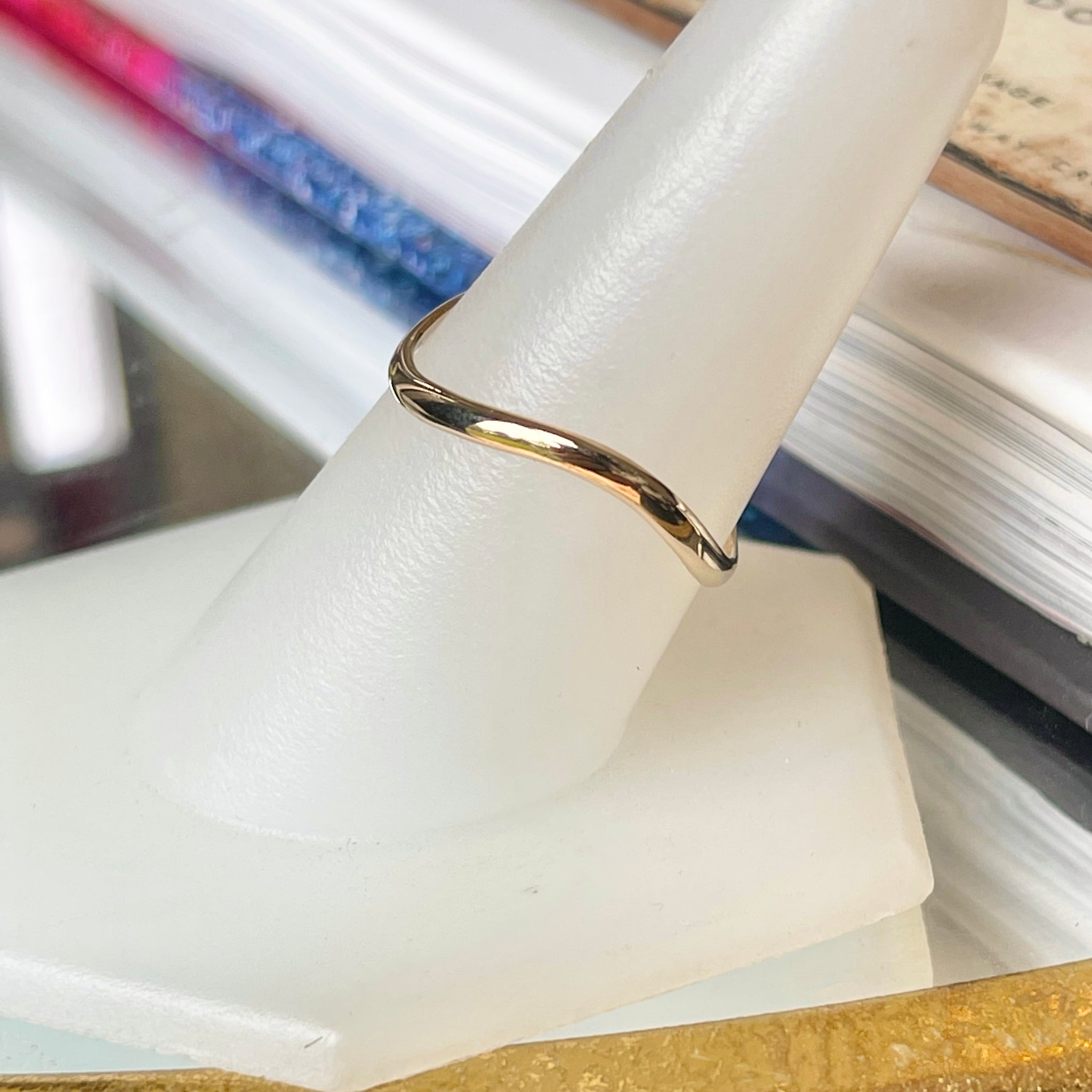 14KT yellow gold polished, thin, wave band thumb ring. Great ring for the thumb and to be stacked with other rings. Also available in 14K rose gold and white gold.