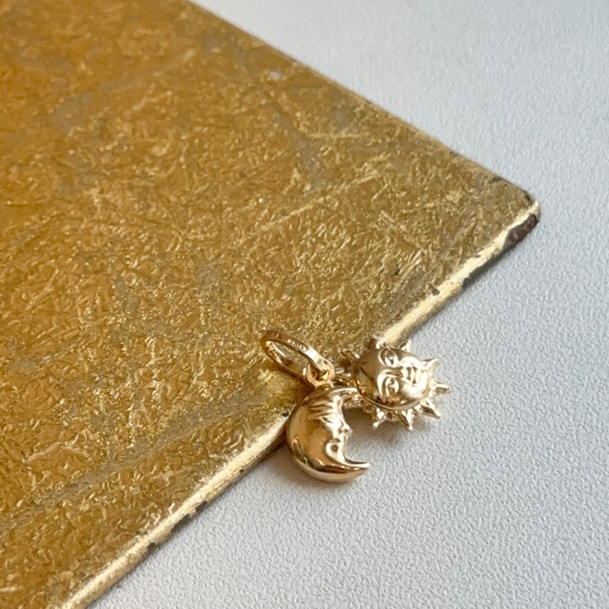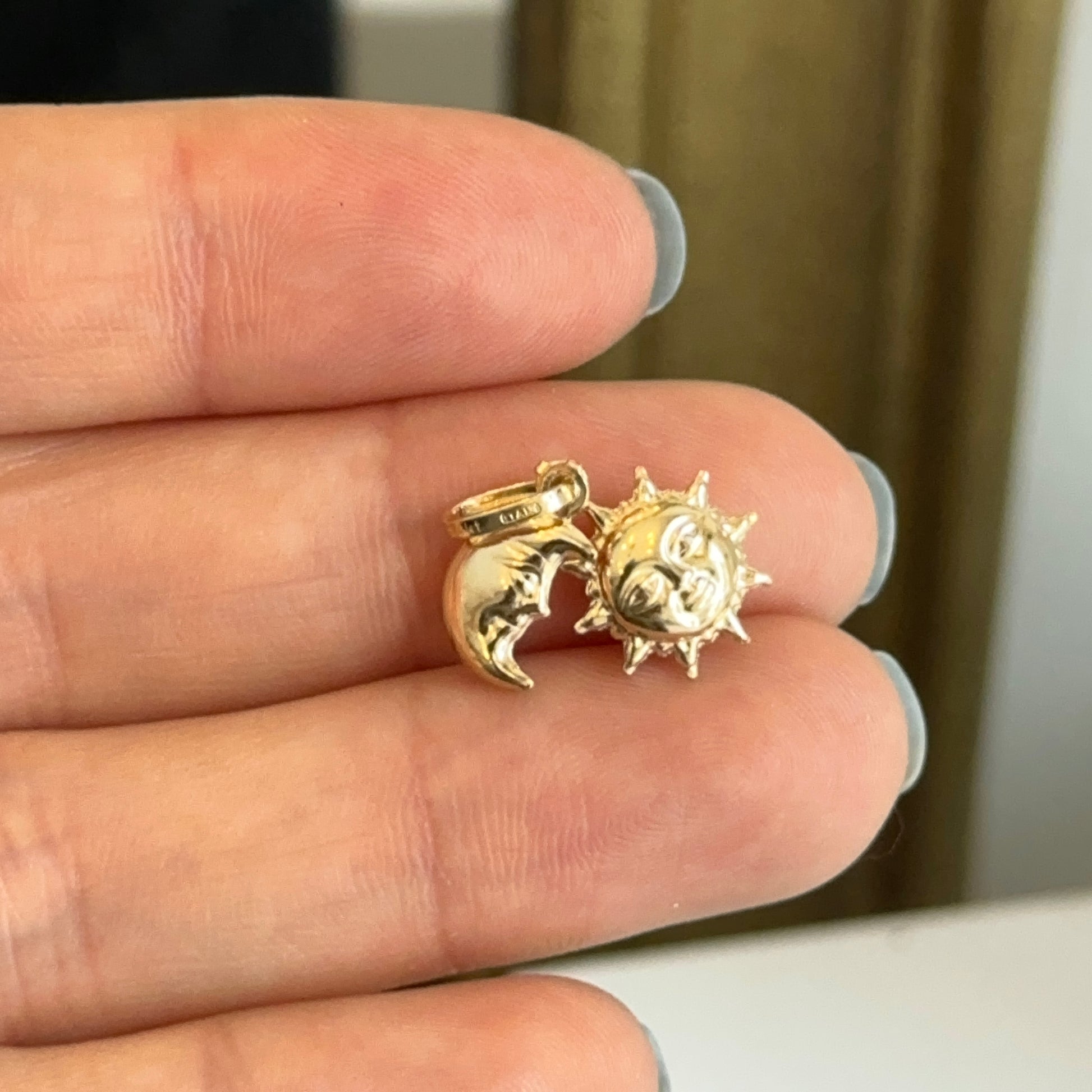 14KT Yellow Gold Puffed Sun + Moon Charms 2 in 1 Pendant Small