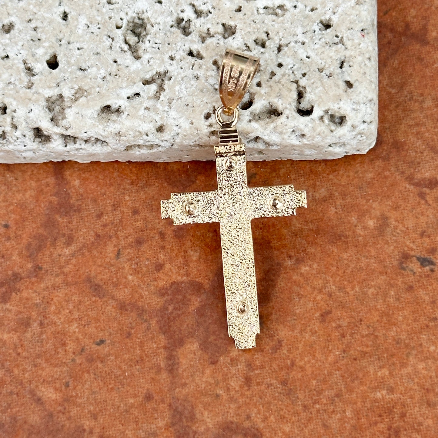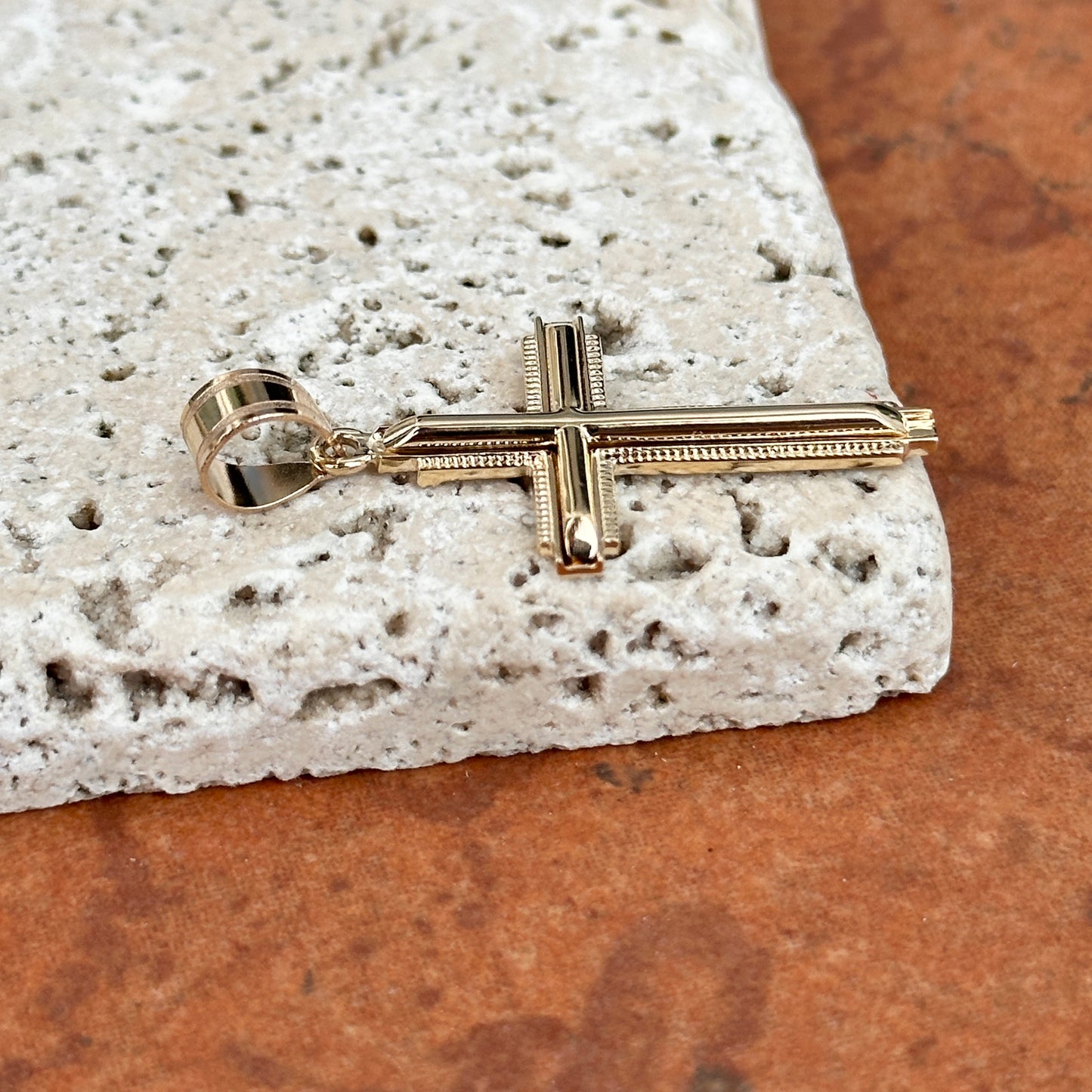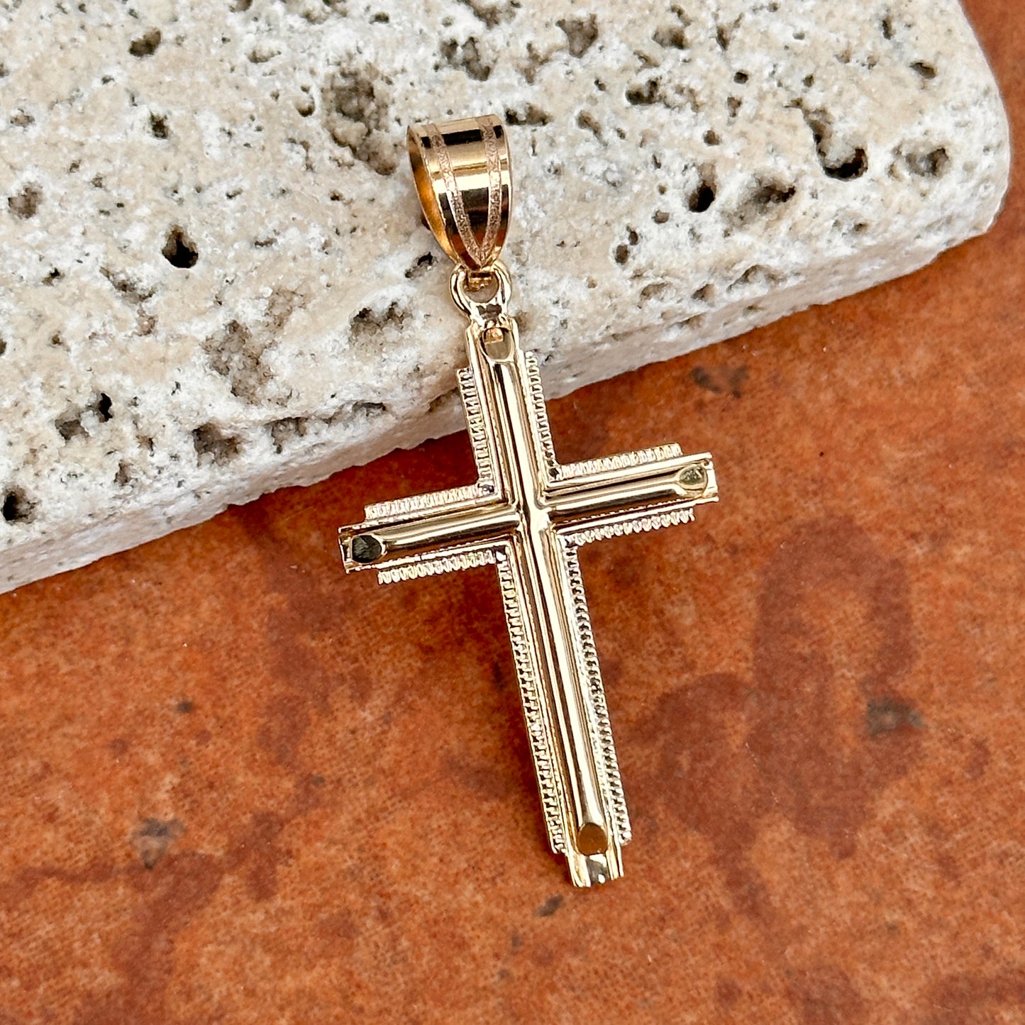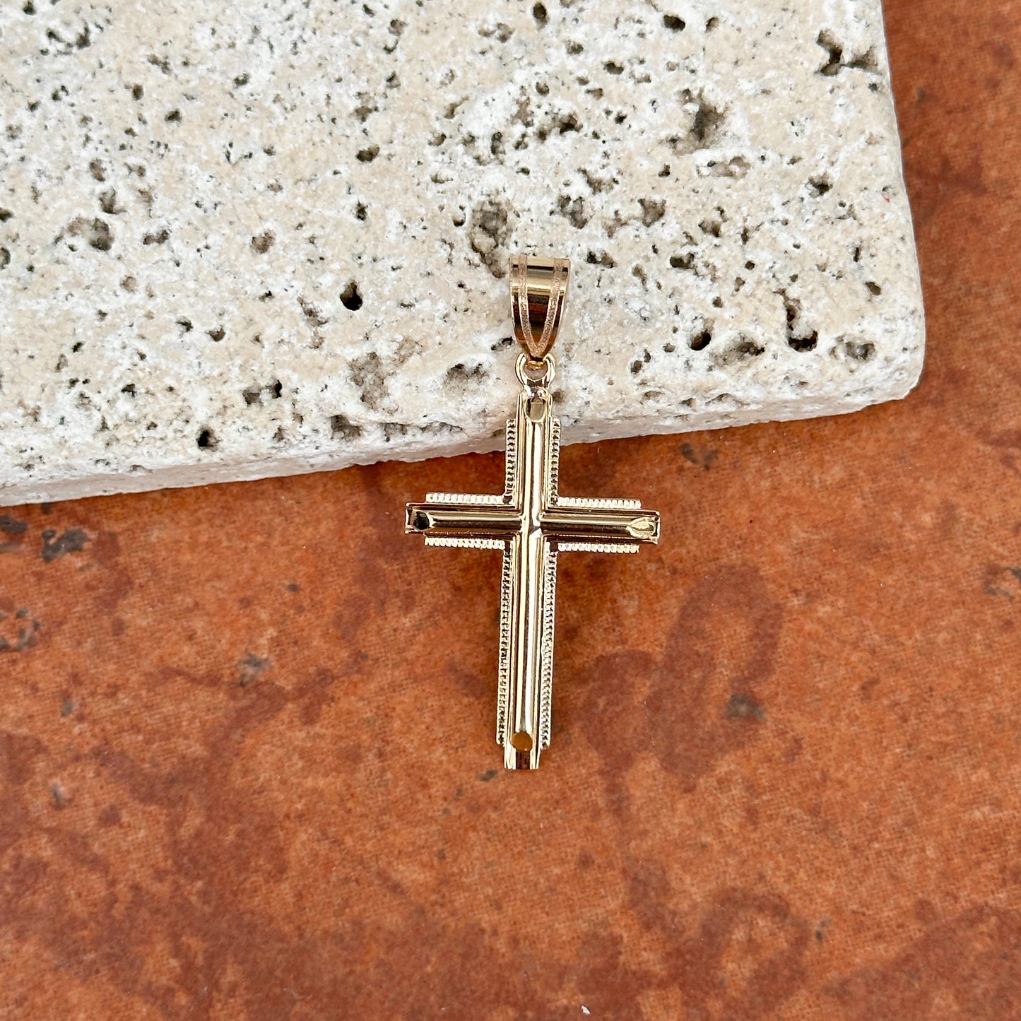14KT Yellow Gold Raised Textured Edge Cross Pendant