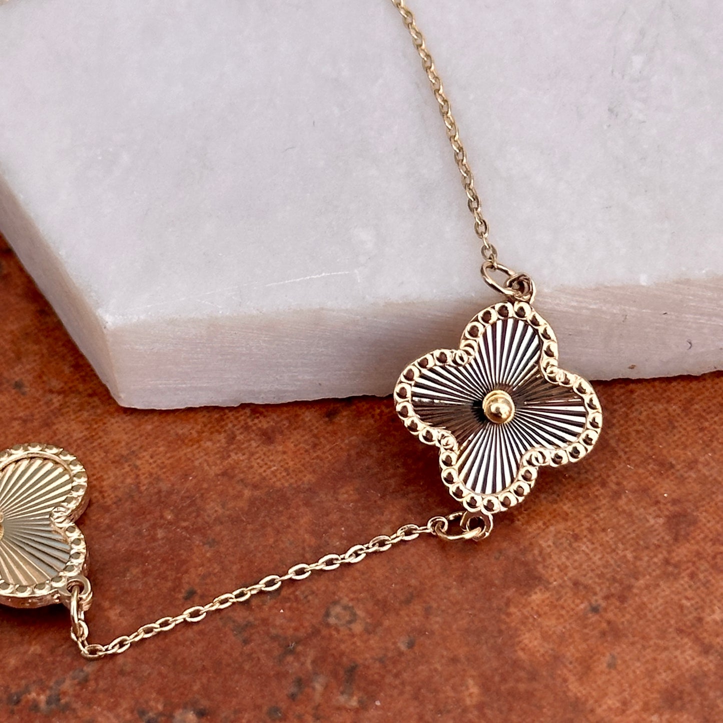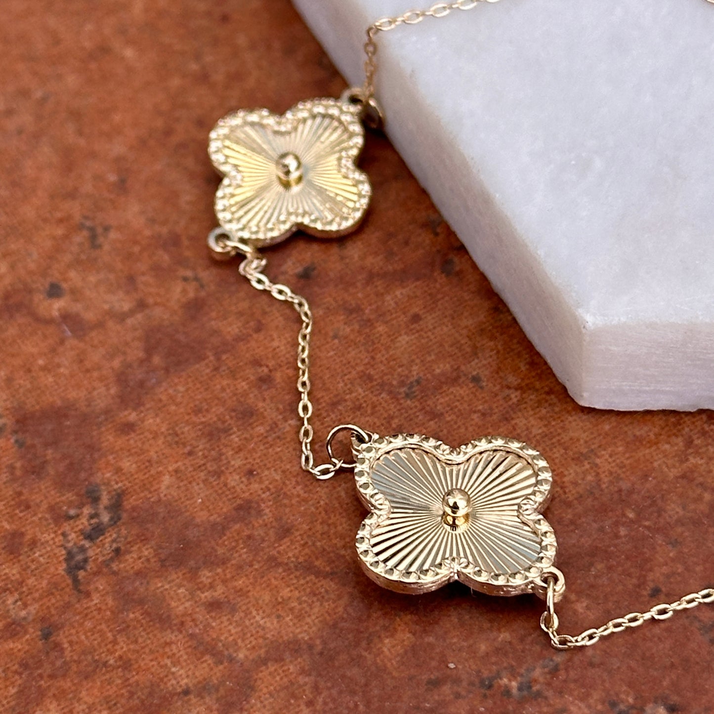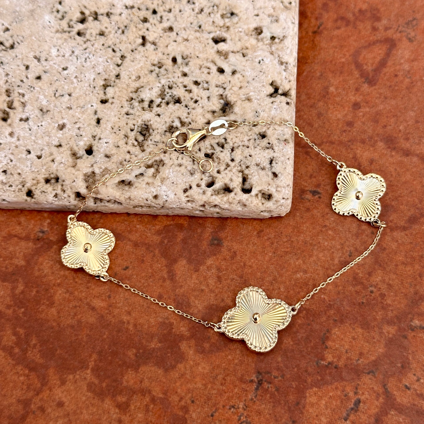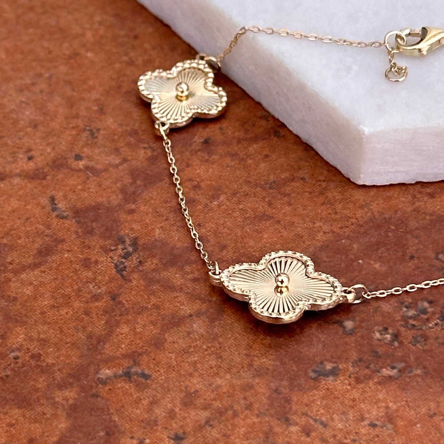 14KT Yellow Gold Ribbed Detail Clover Station Bracelet