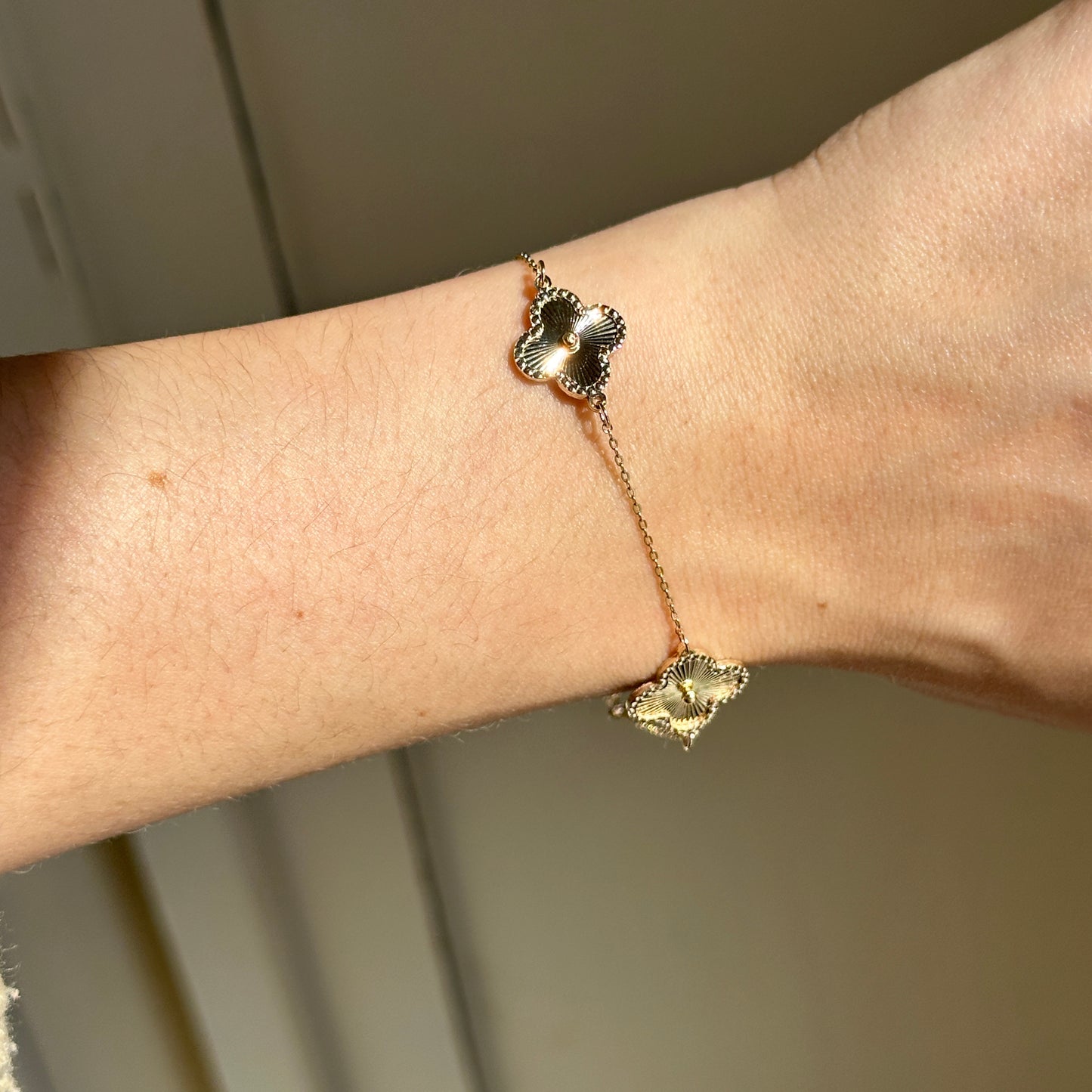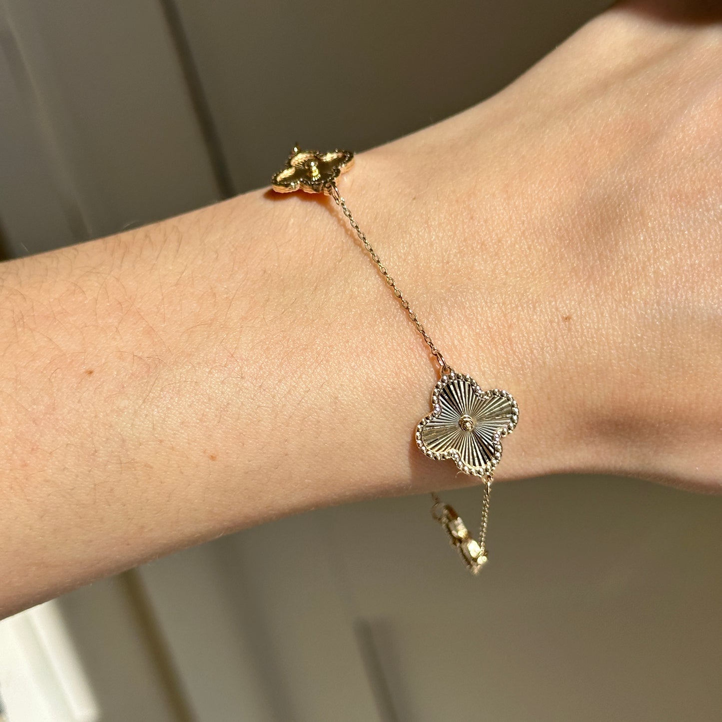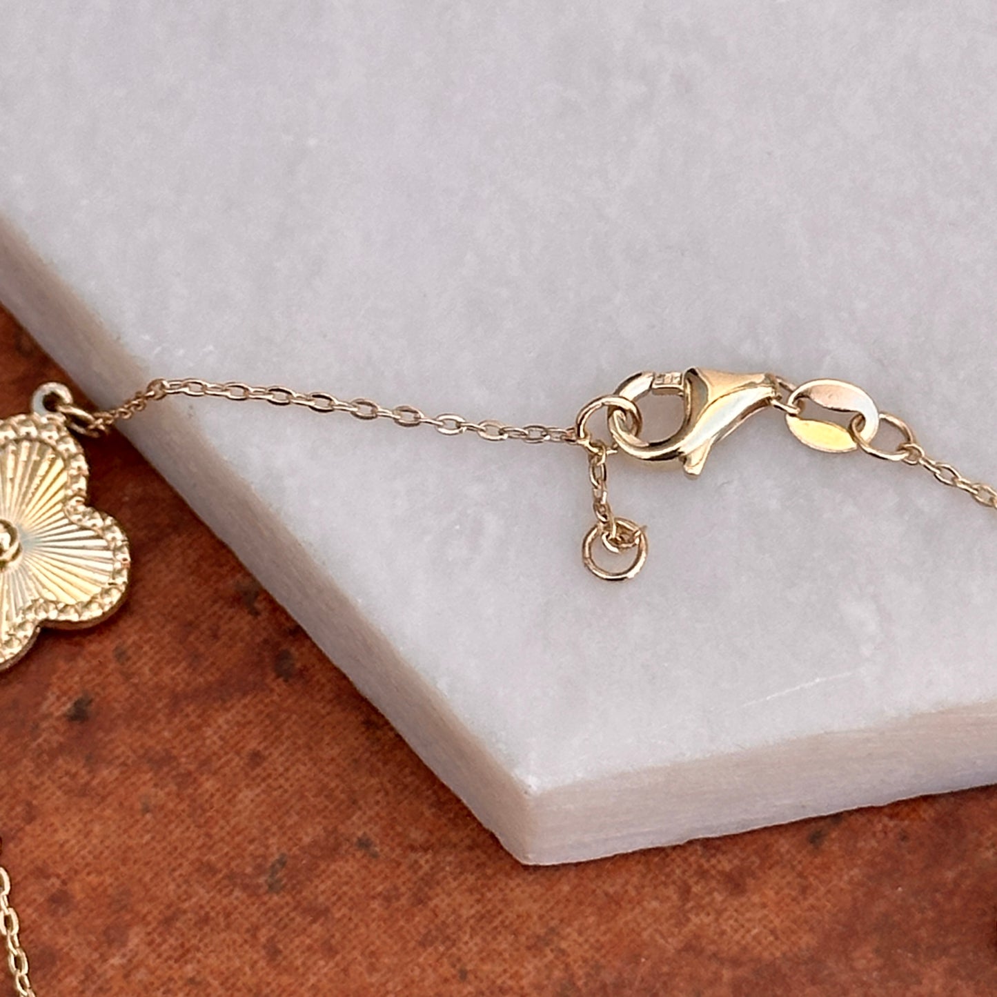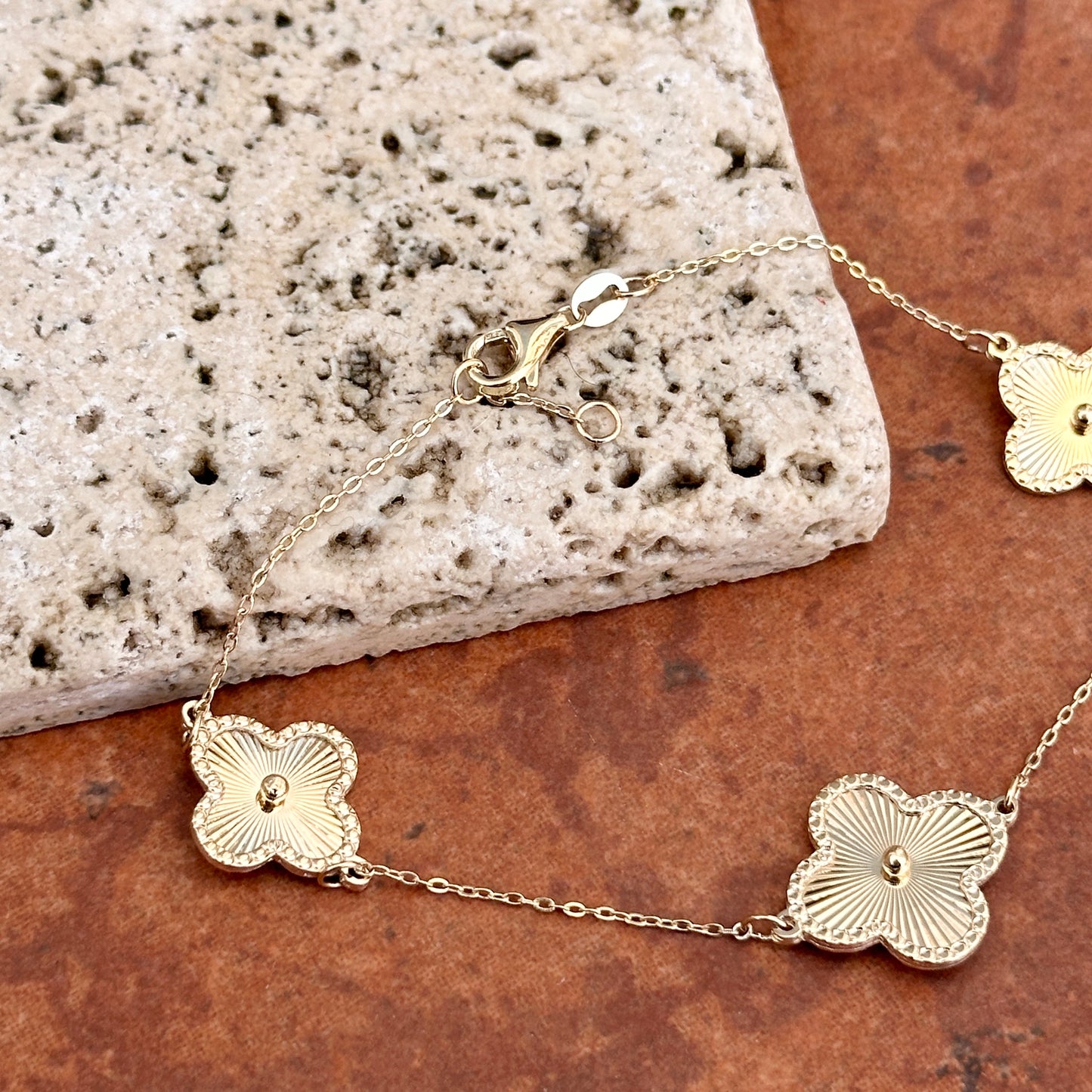 14KT Yellow Gold Ribbed Detail Clover Station Bracelet