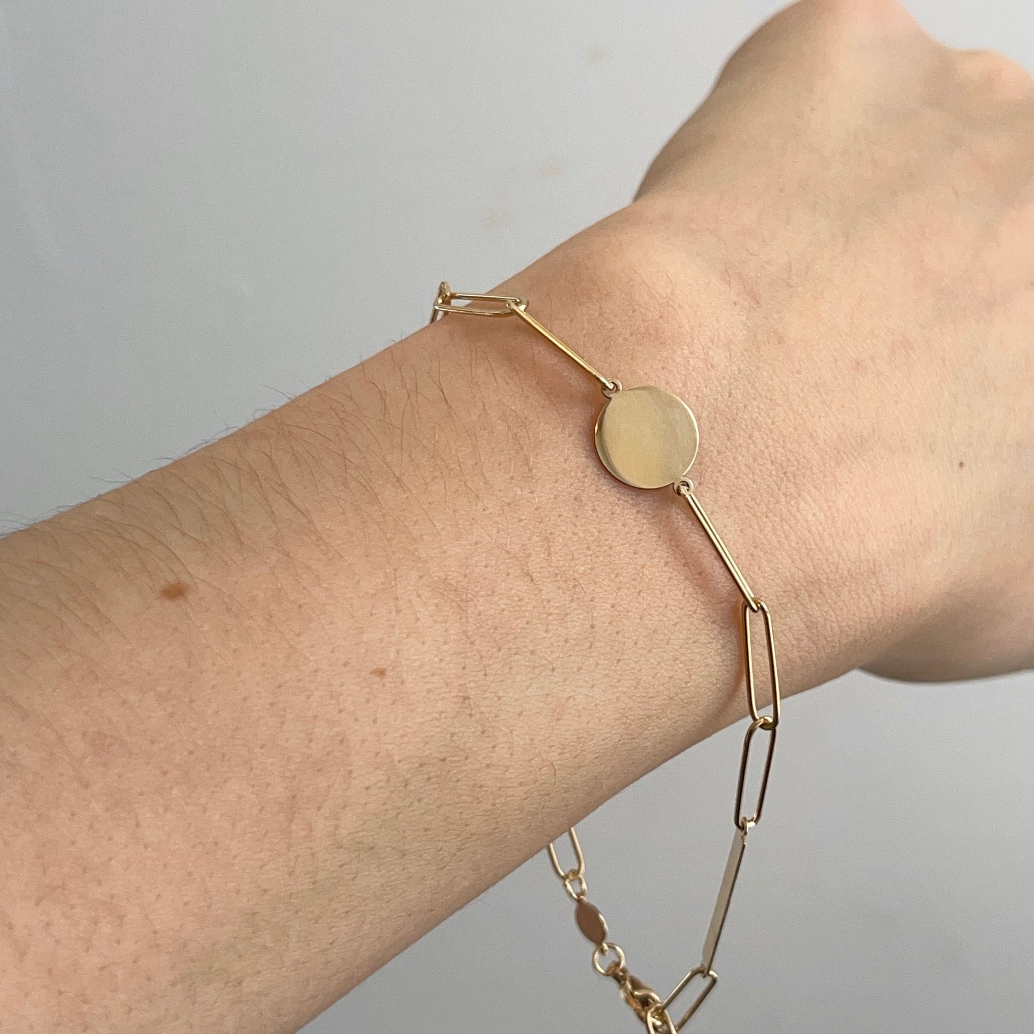 14KT Yellow Gold Round Disc Paper Clip Chain Bracelet