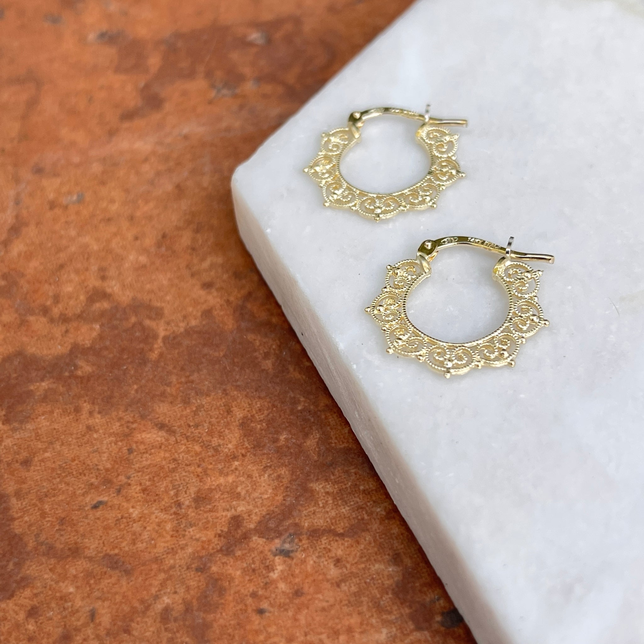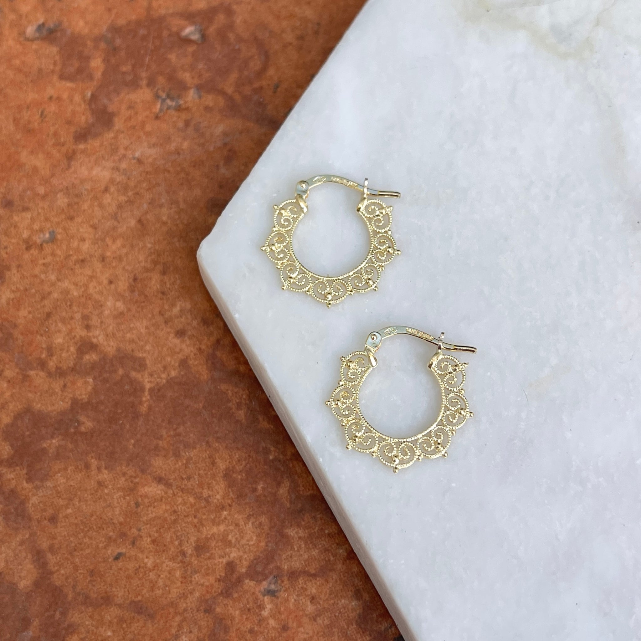 14KT Yellow Gold Round Filigree Hoop Earrings 19mm