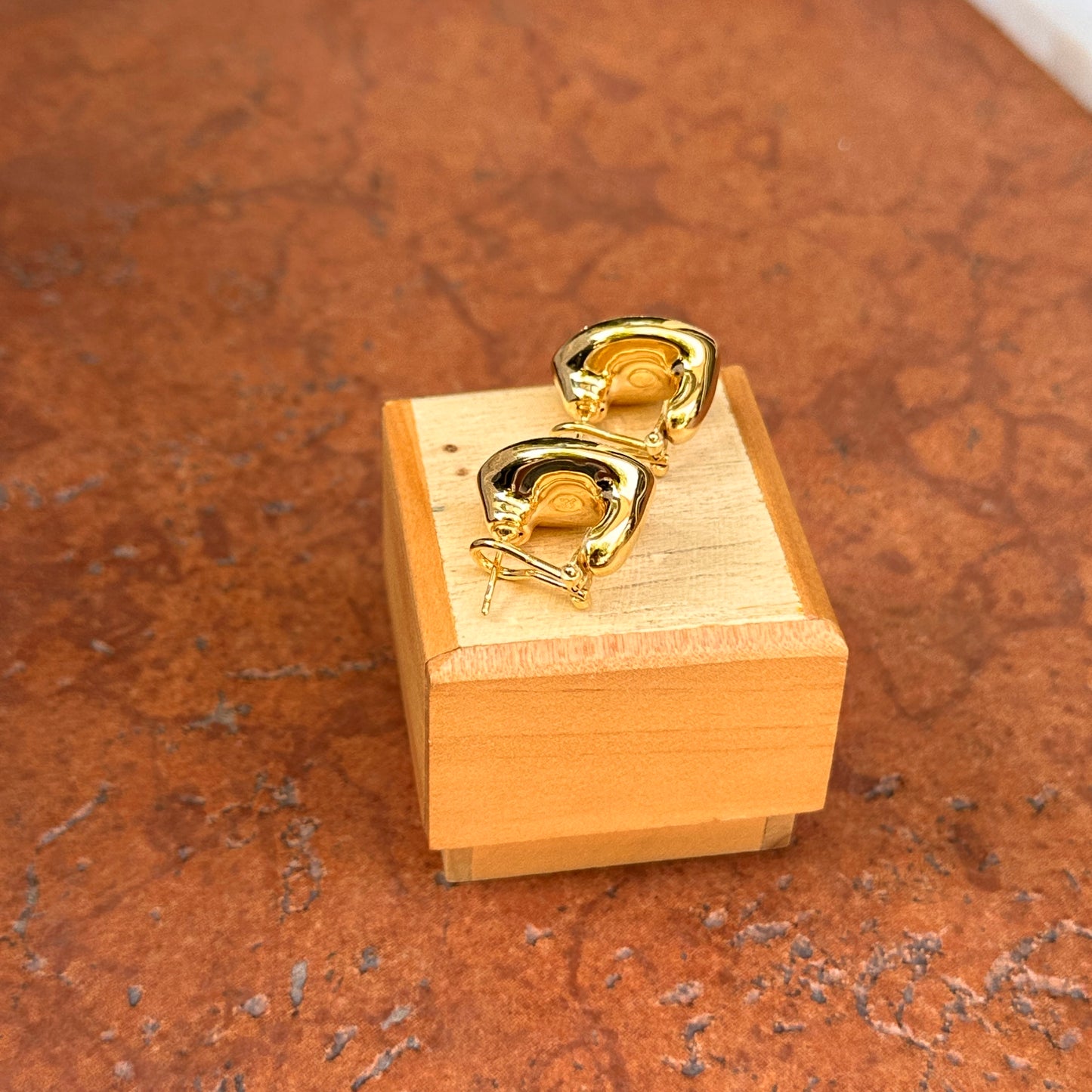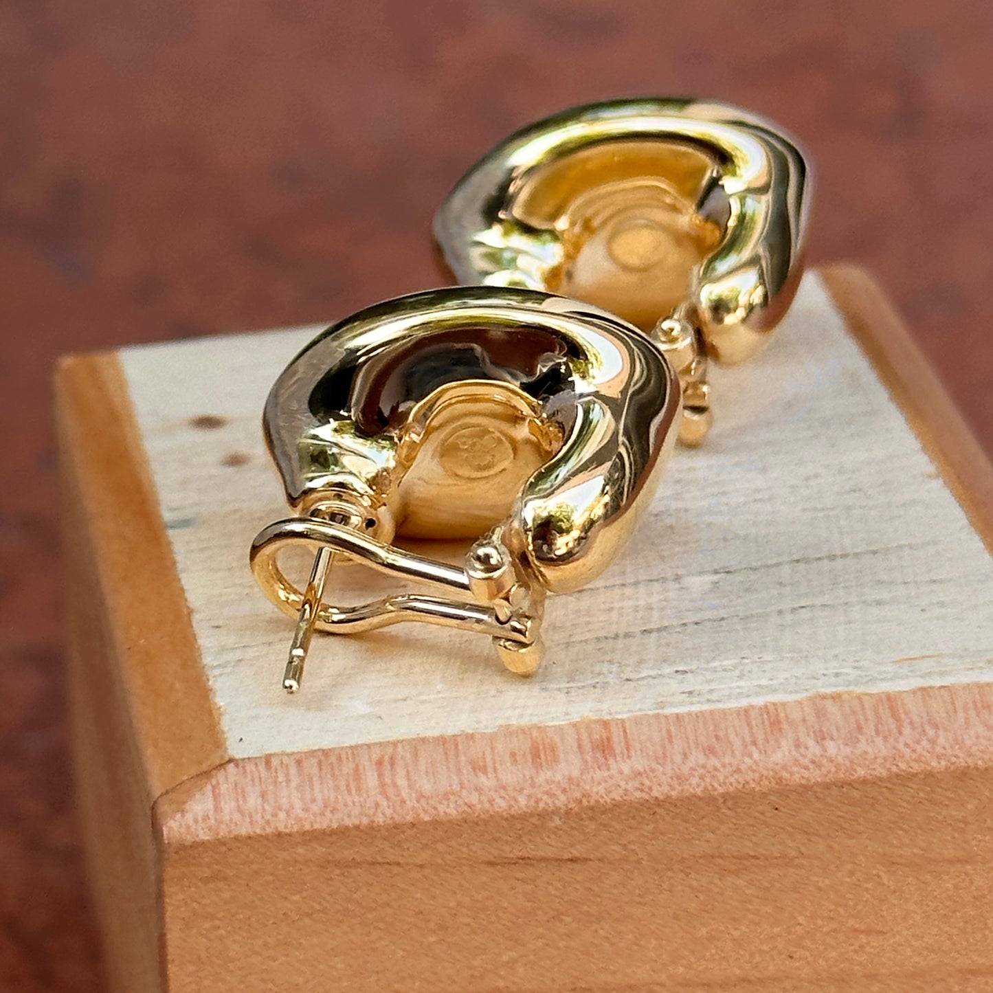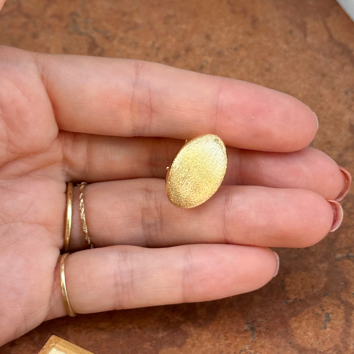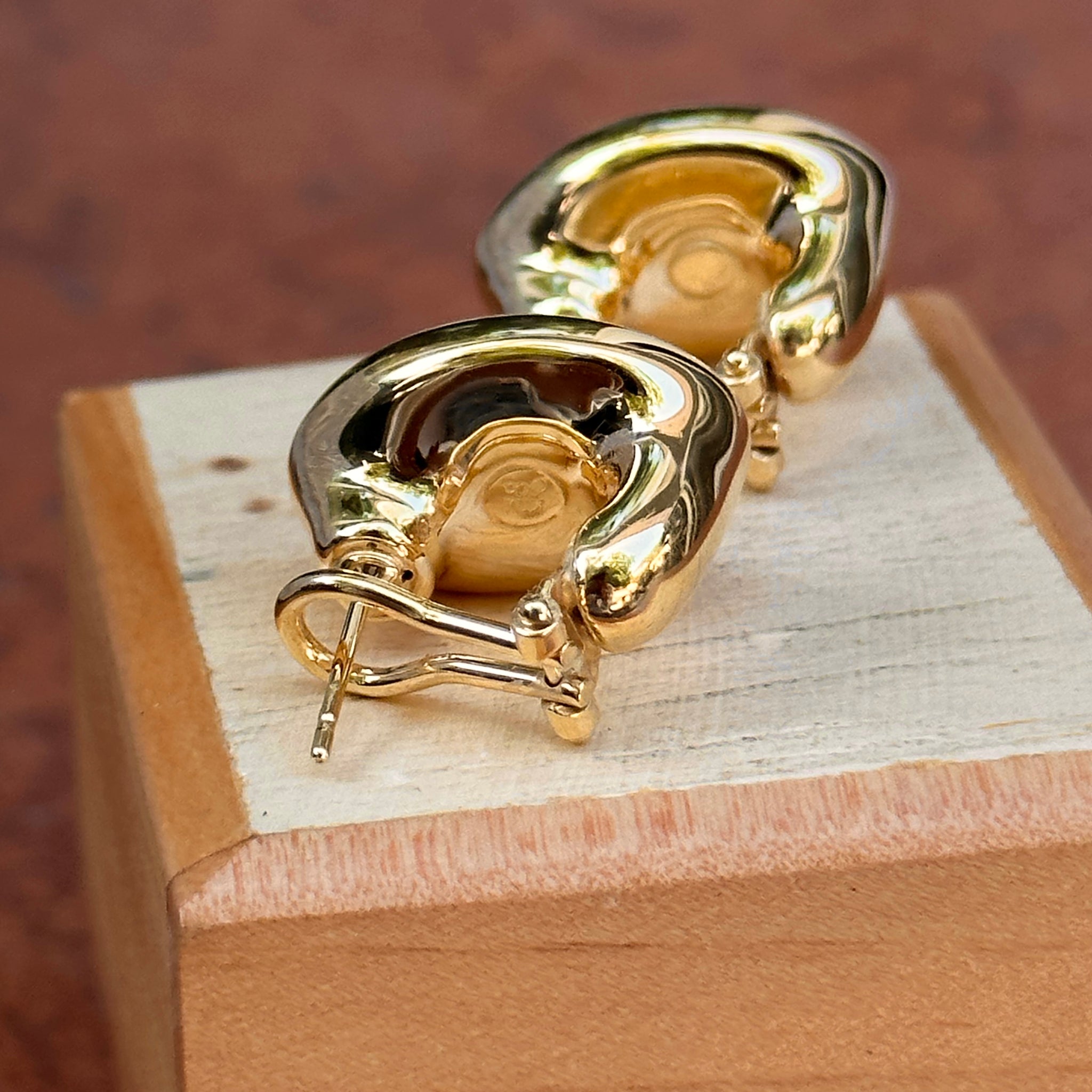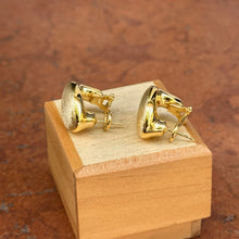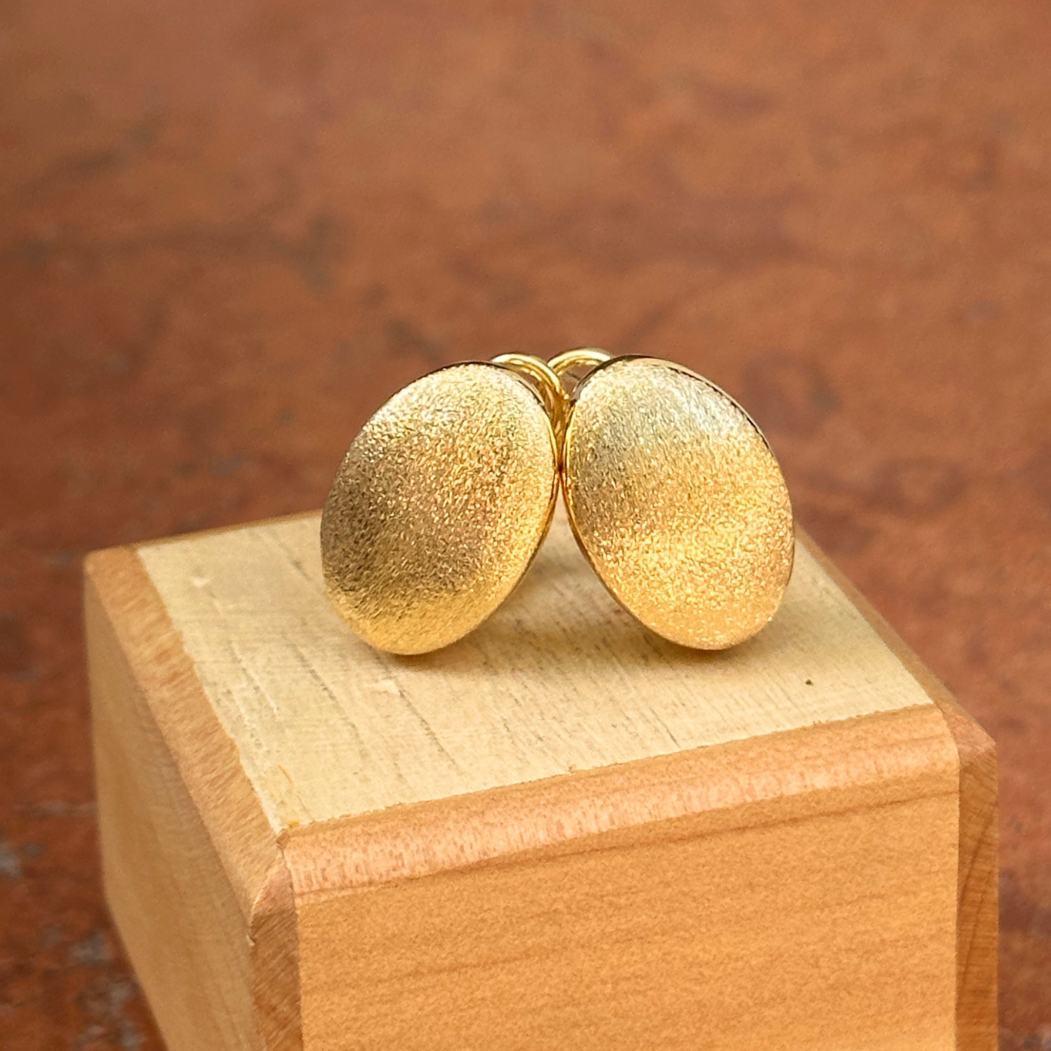 14KT yellow gold oval, satin/ matte-finish, omega back drop earrings. Great for adding on charms or wearing solo!