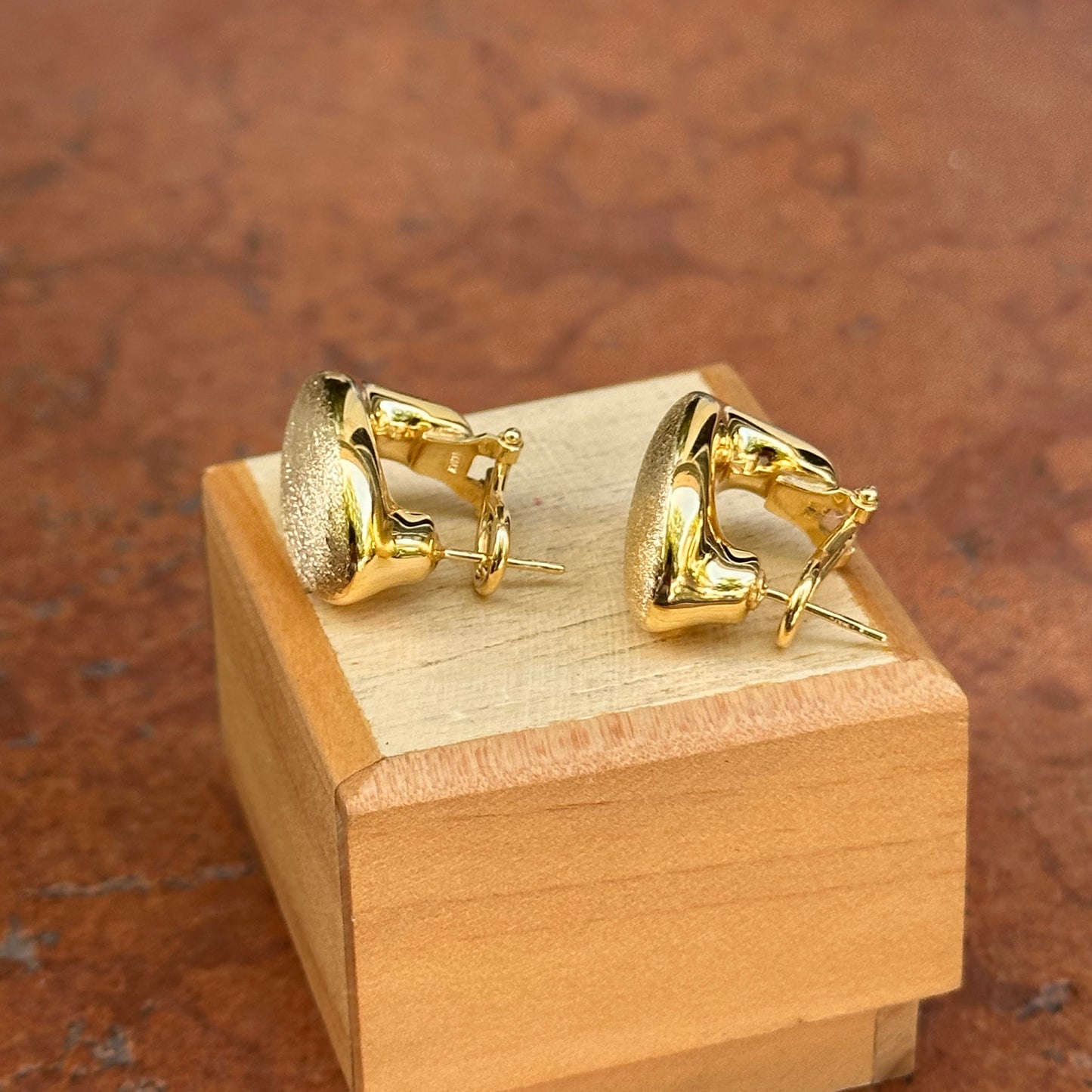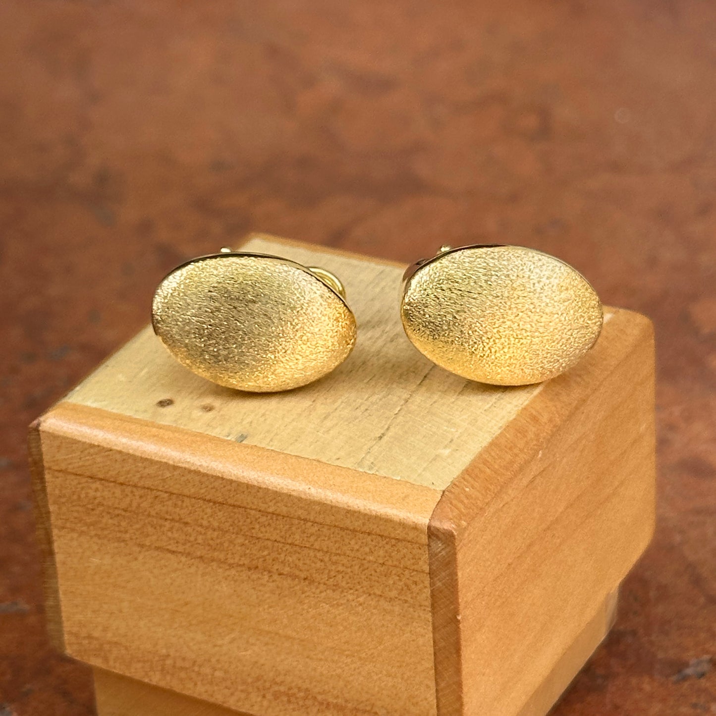 14KT Yellow Gold Satin-Finished Oval Omega Back Earrings
